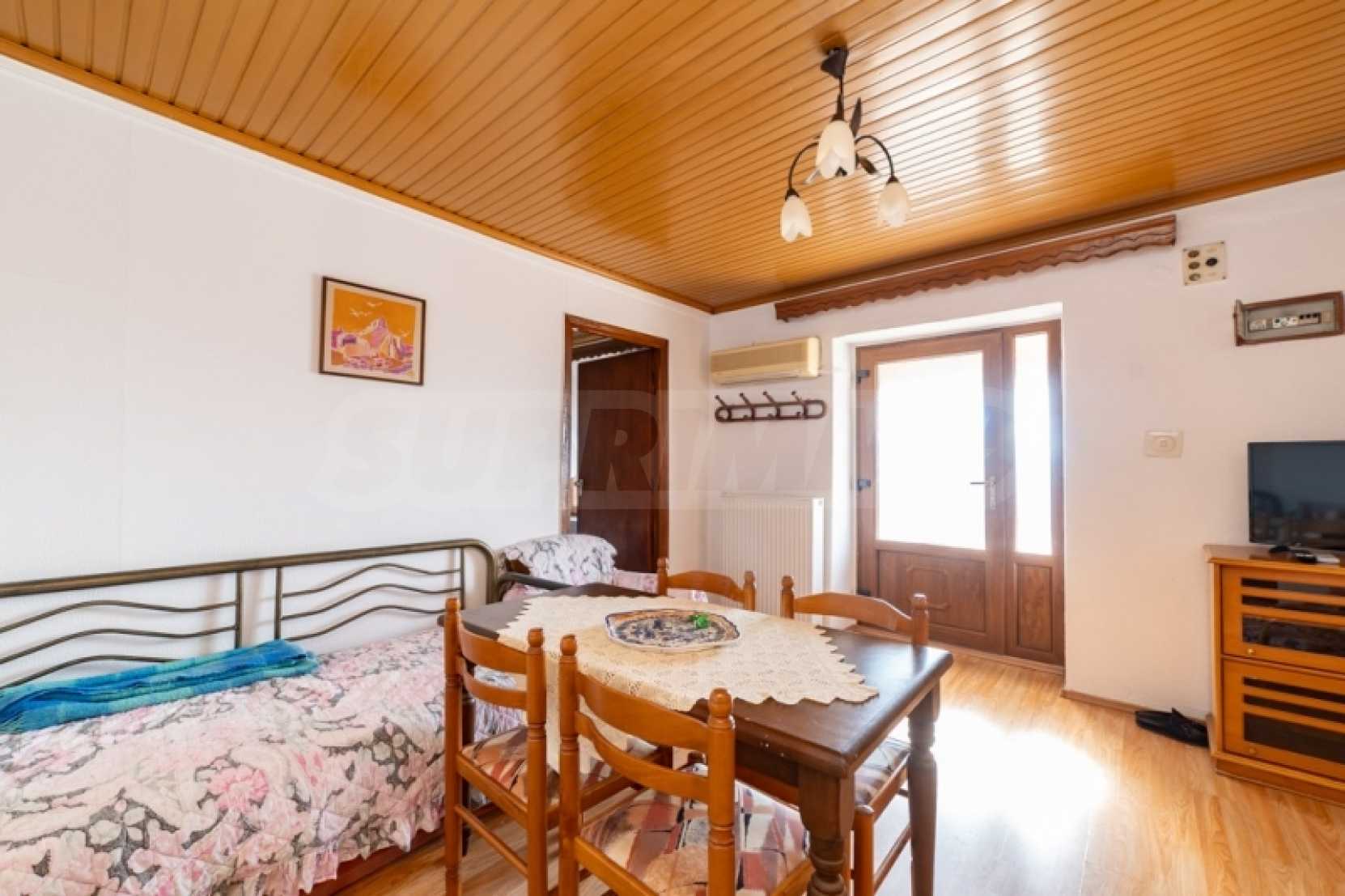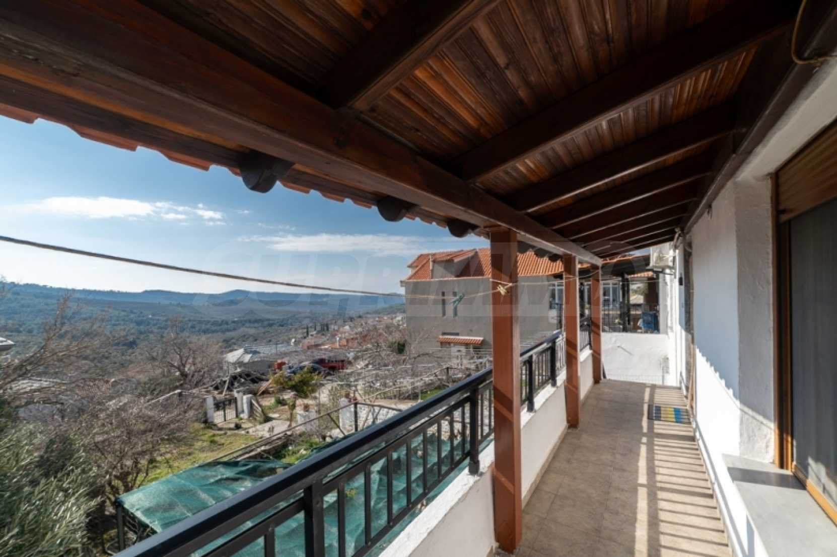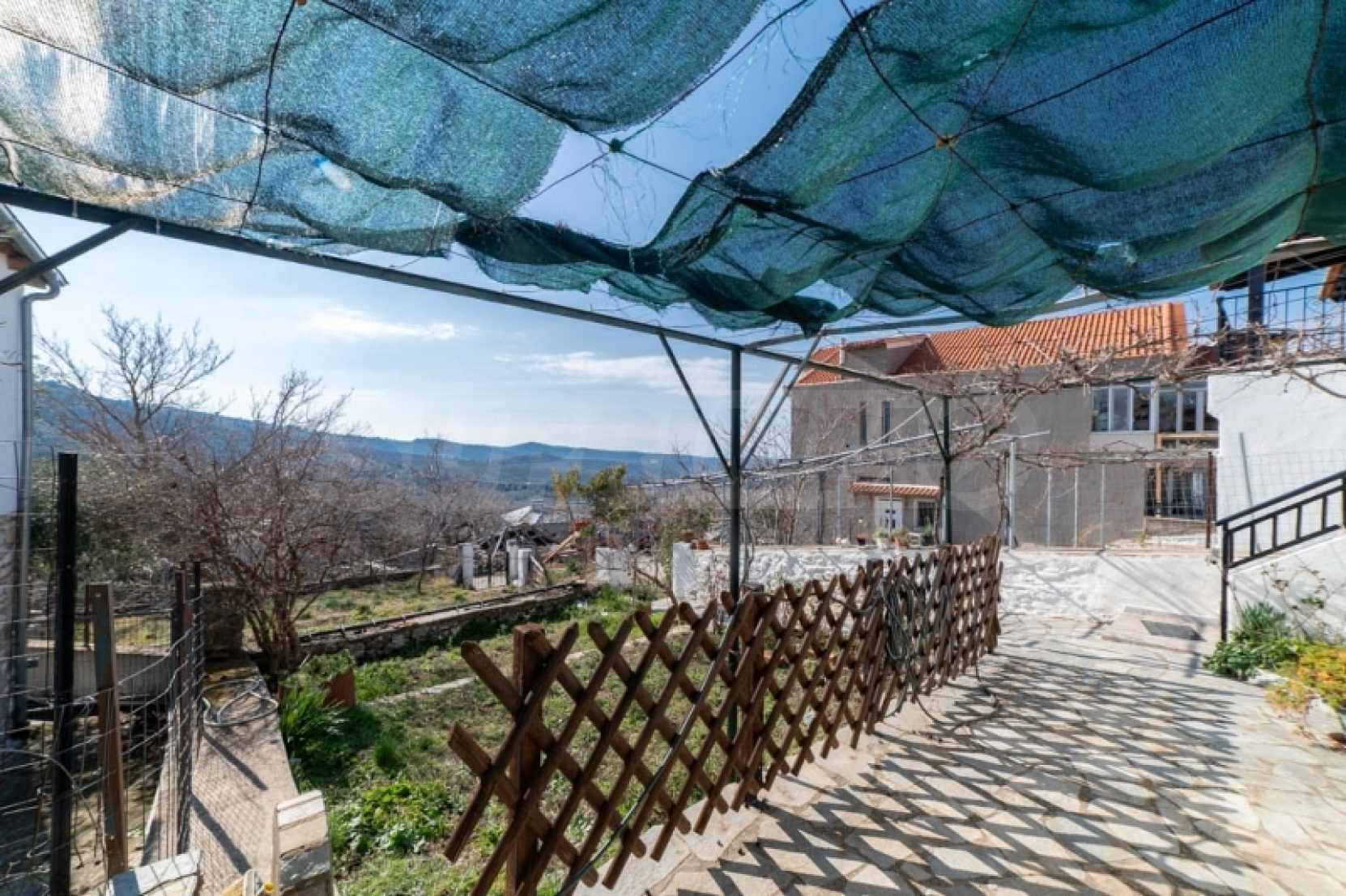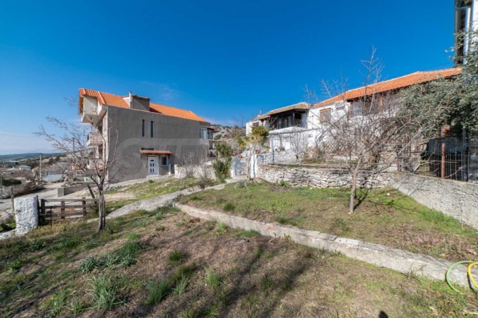 Продава: Самостоятелна къща 130.38 кв.м. върху парцел от 306.54 кв.м. разположен в Теологос, Тасос. Имотът е разположен на две нива. Партерът е с площ от 63.46 кв.м. и се състои от 3 стаи, които се нуждаят от основен ремонт, както и отделно складово помещение за котела. Външно стълбище води до първия етаж, където се намира основната жилищна площ от 66.92 кв.м. Основната жилищна площ на първия етаж включва: 2 спални, 1 баня, кухня, хол. Дограмата е PVC с мрежи против насекоми, а подовата настилка е дюшеме с ламинат, а кухнята и банята са с теракот. Балконът, който служи и като главен вход, има допълнителна външна тоалетна. Имотът предлага достъп от две страни: от двора и от горната страна на къщата. Достъпно е по асфалтов път и се намира на 10 км от морето. Тази самостоятелна къща се намира в тих и живописен район на Теологос, което я прави идеална за тези, които желаят да я реновират според личните си предпочитания. За оглед на имота е необходимо представяне на полицейска лична карта.