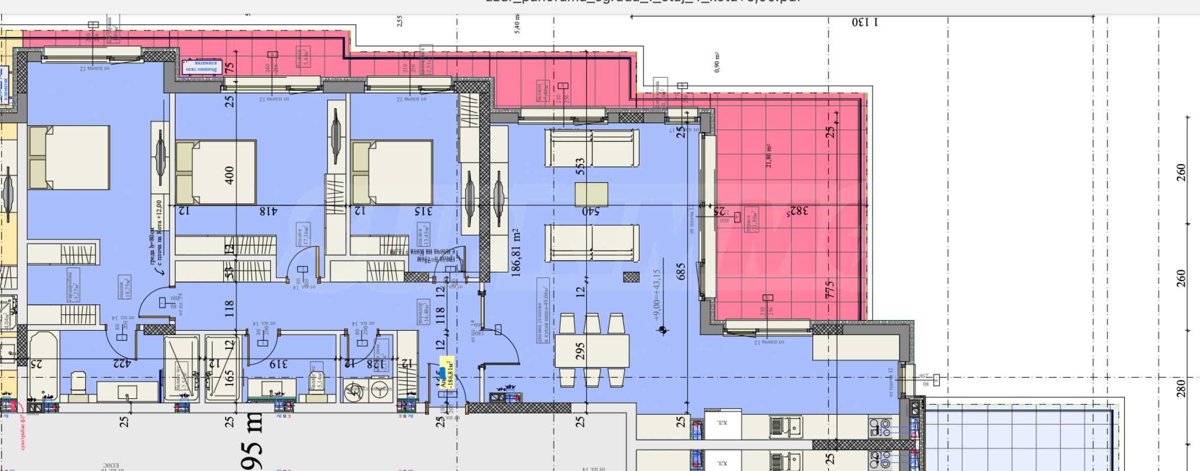- три тераси - едната, от които с площ от 21.80 кв.м, а другите две по 5.40 кв.м всяка.