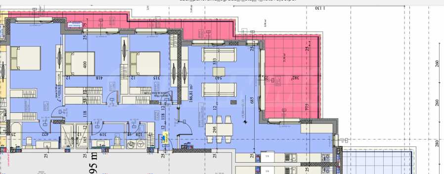 Жилището с обща площ от 234 кв.м е разположено на 4-ти етаж от 6 и има следното разпределение: