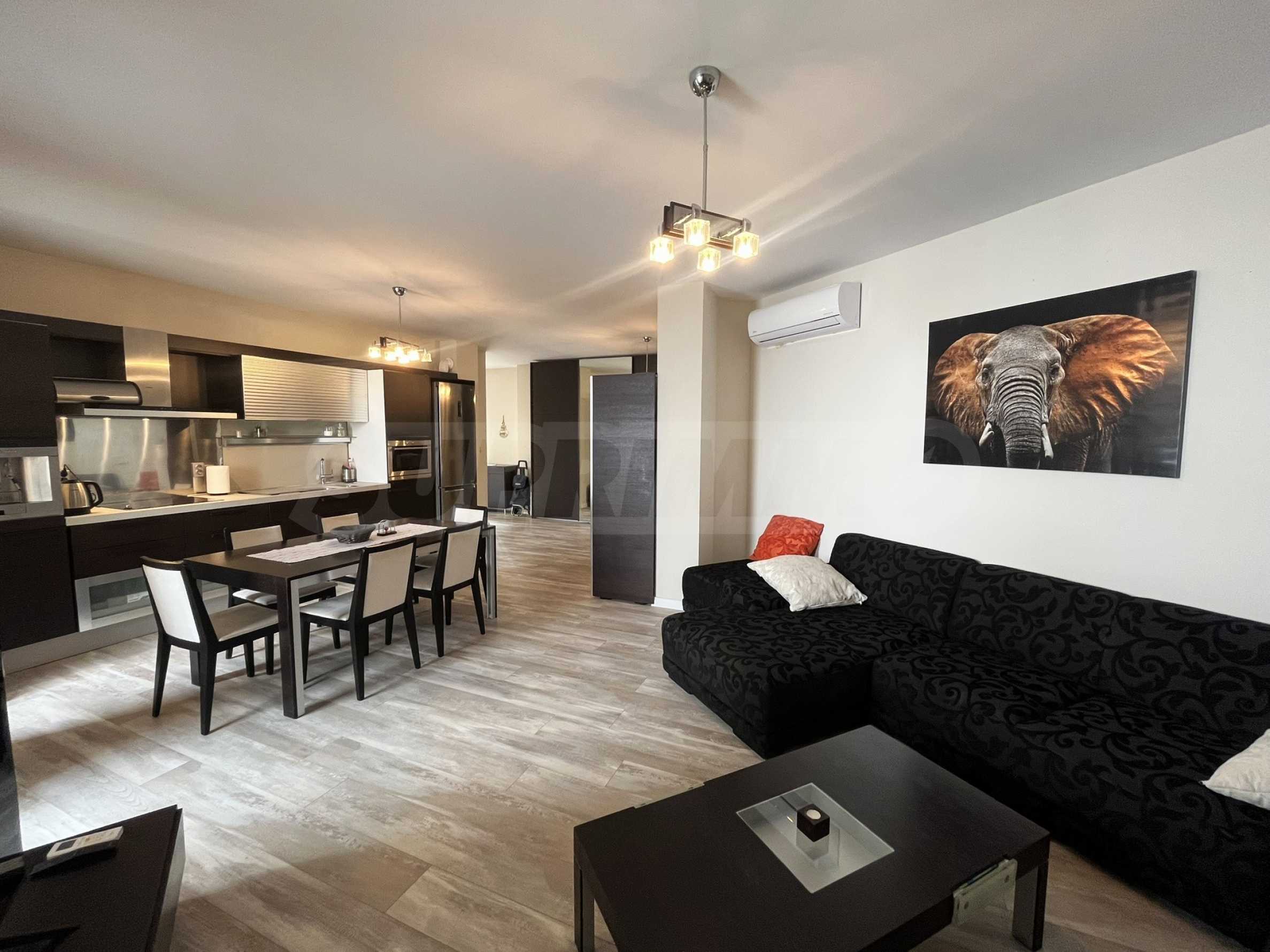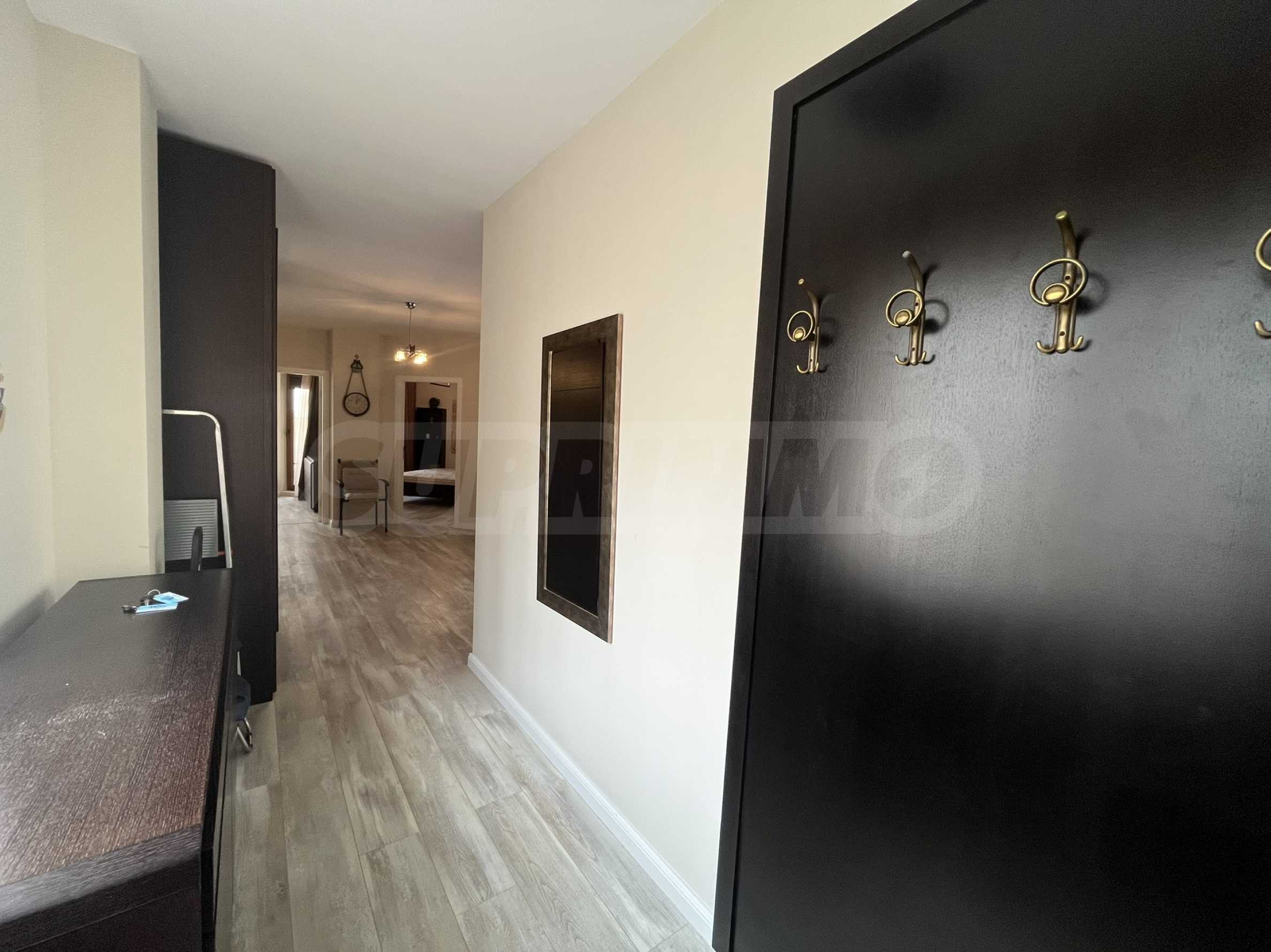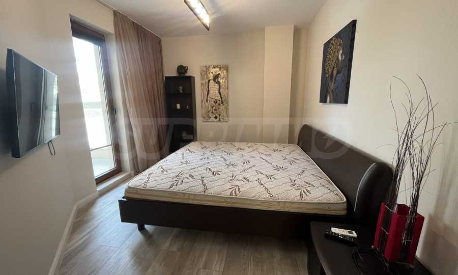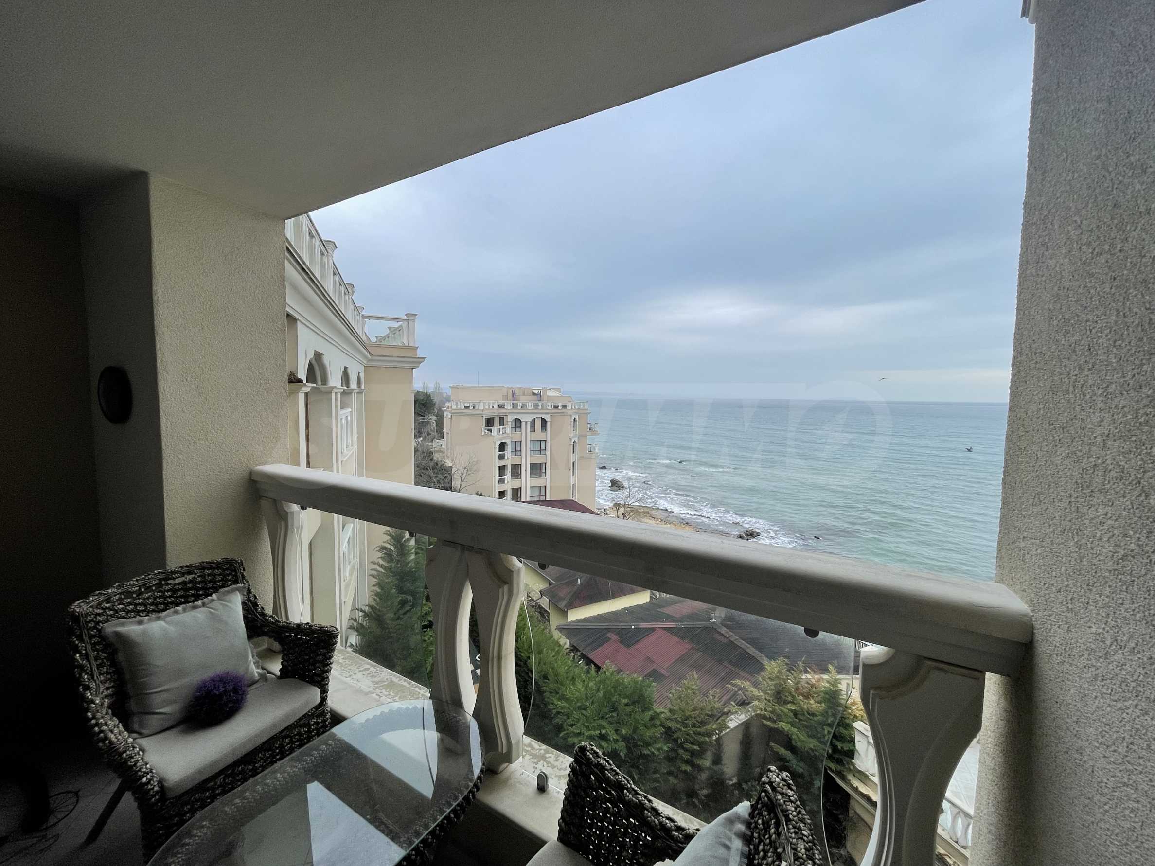 Жилището с обща площ от 110 кв.м е разположено на 7-и етаж от 9 в луксозен комплекс на първа линия от морето и има следното разпределение: