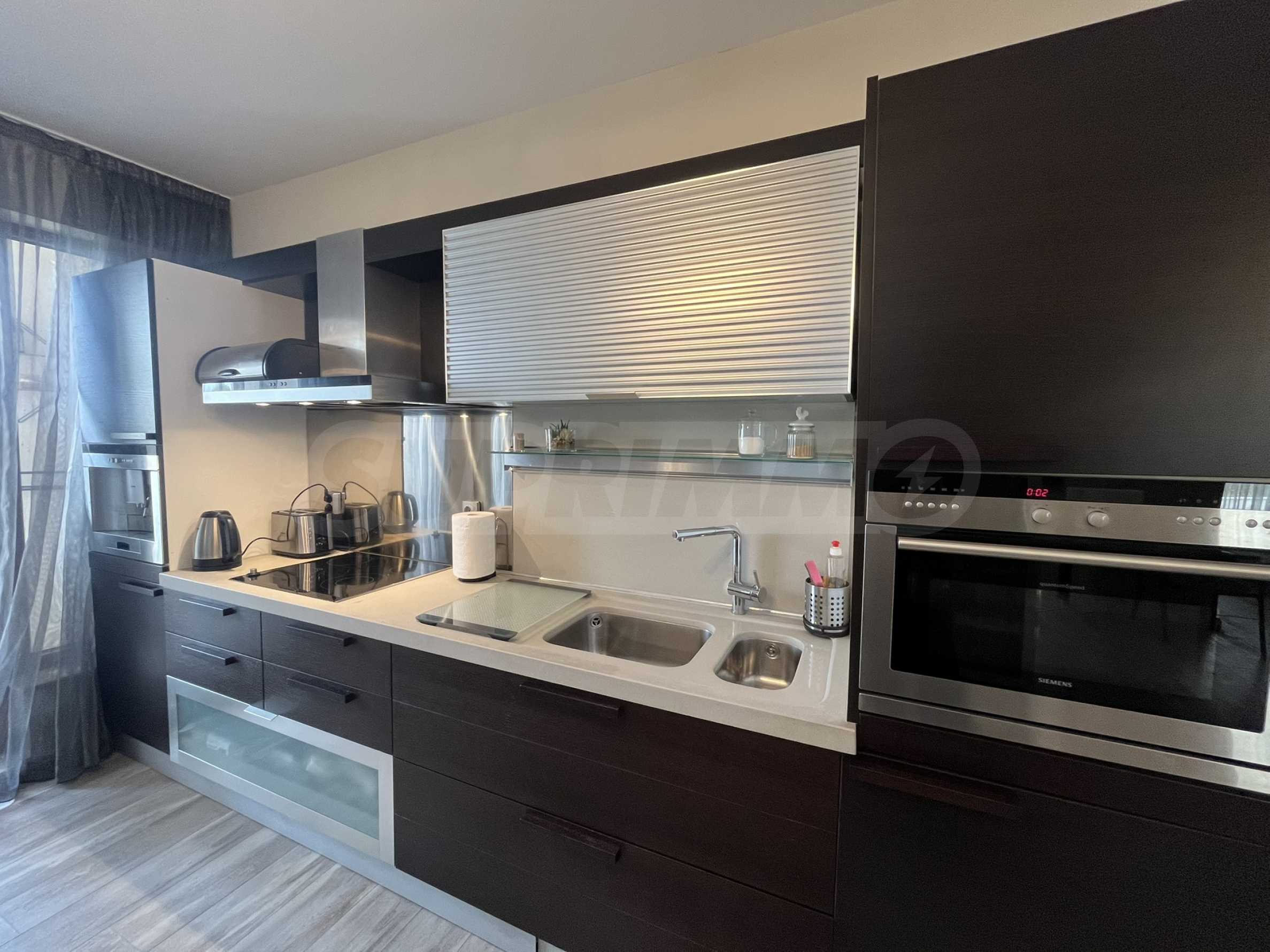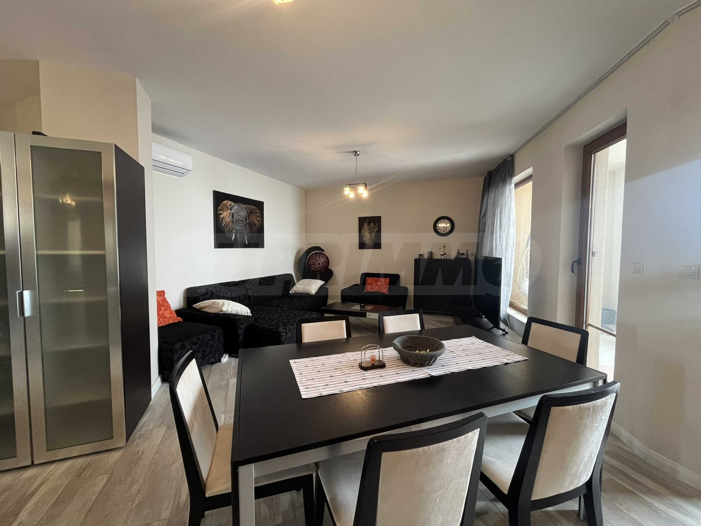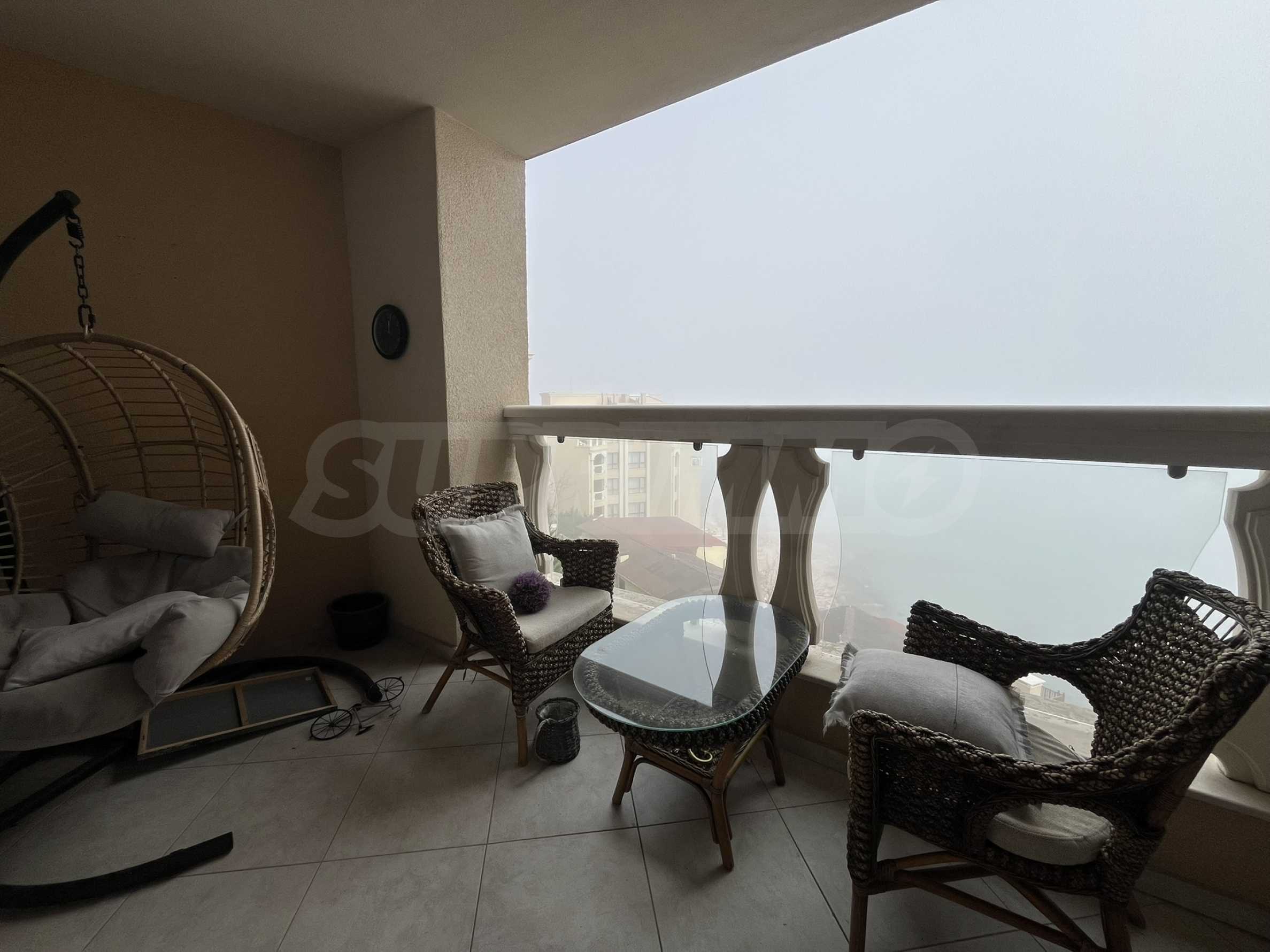 Жилището с обща площ от 110 кв.м е разположено на 7-и етаж от 9 в луксозен комплекс на първа линия от морето и има следното разпределение:
