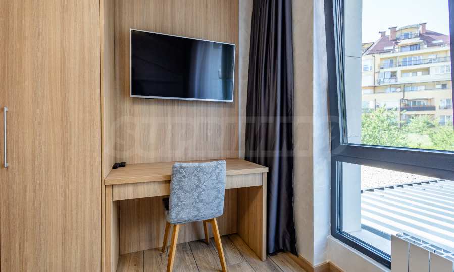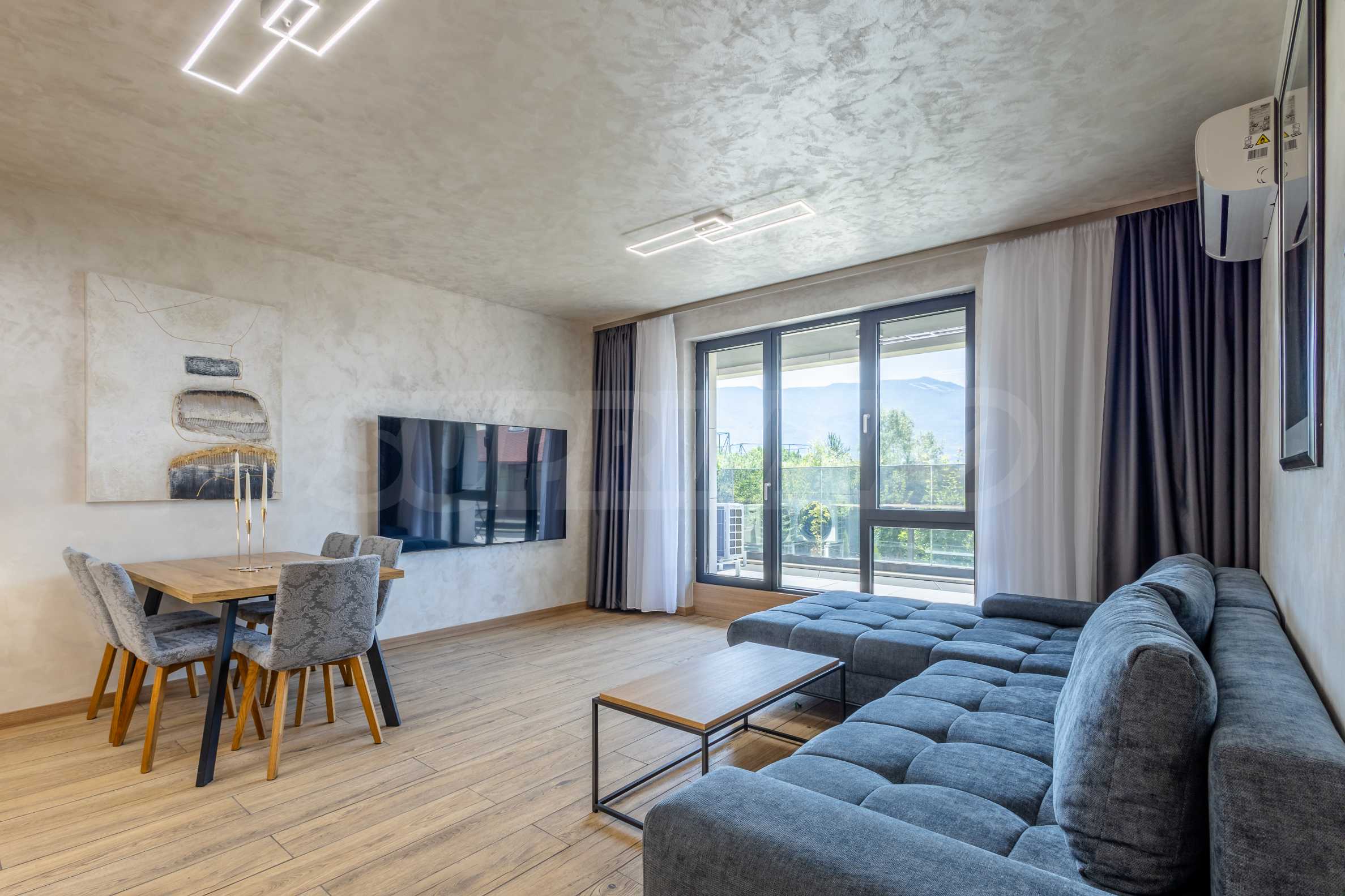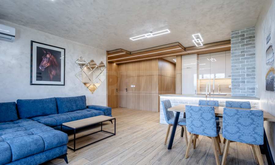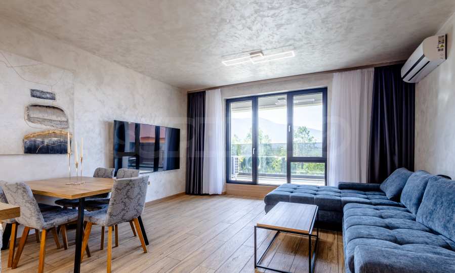 Апартаментът е завършен по дизайнерски проект и предлага: