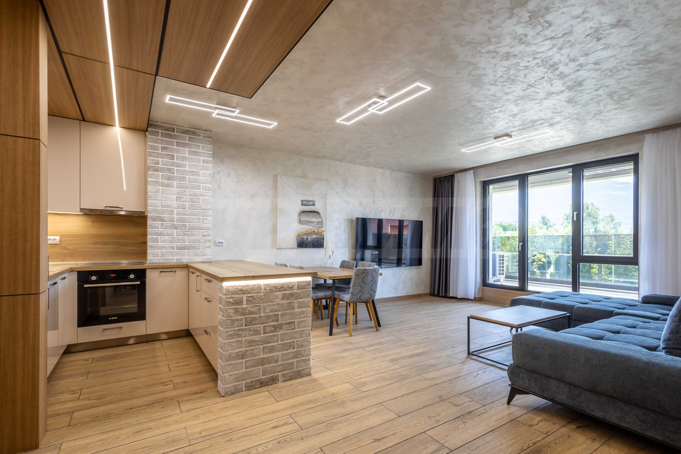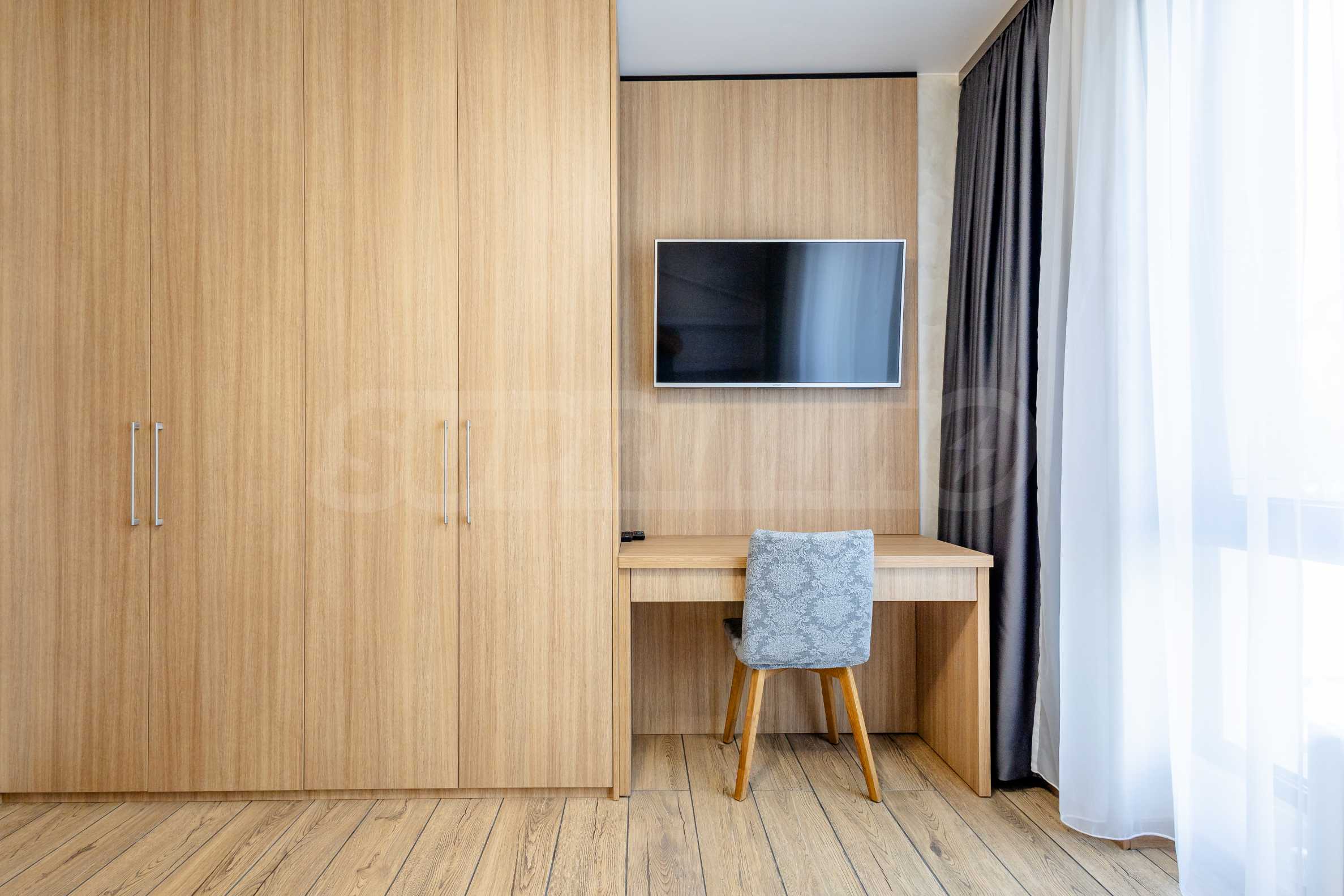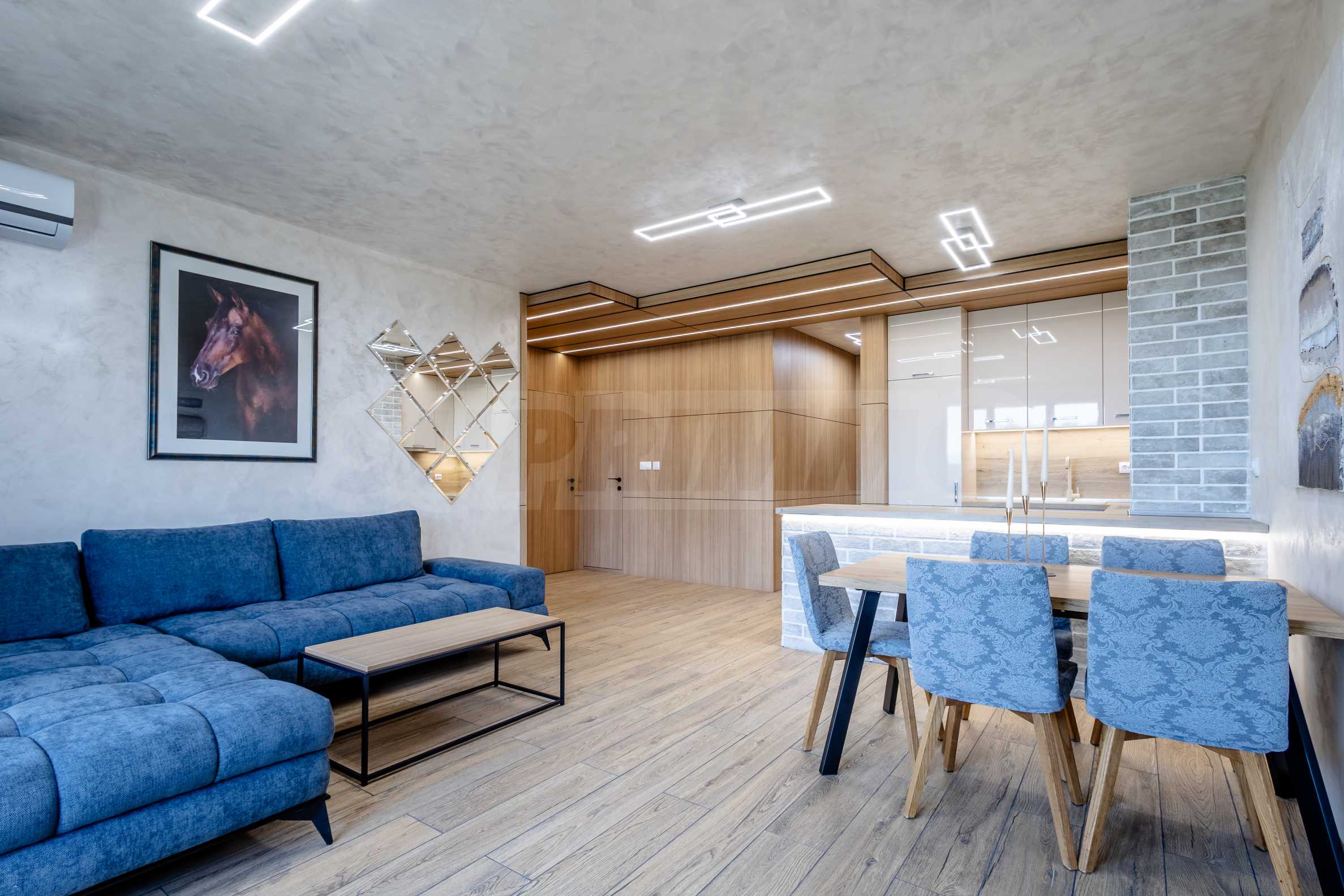Апартаментът е завършен по дизайнерски проект и предлага: