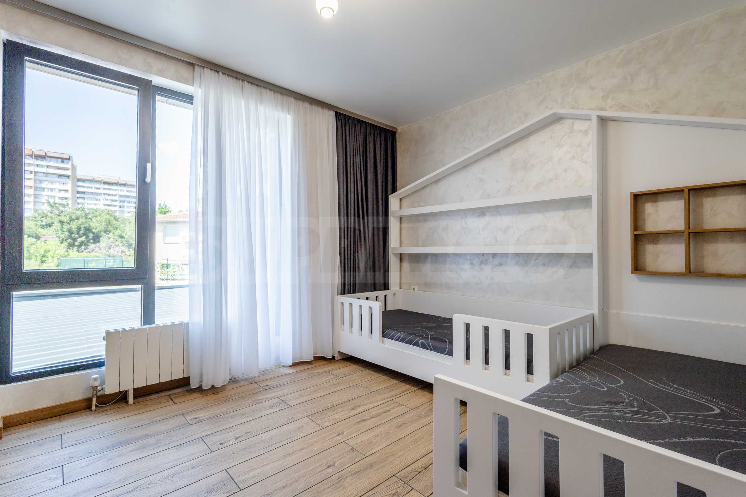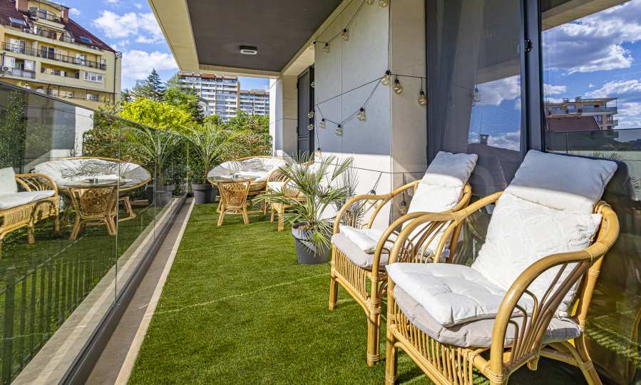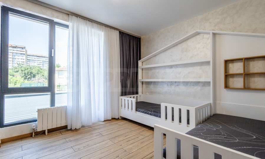 Ексклузивно представяме дизайнерски мебелиран тристаен апартамент за продажба, в луксозна нова сграда в близост до Американския колеж в София.
