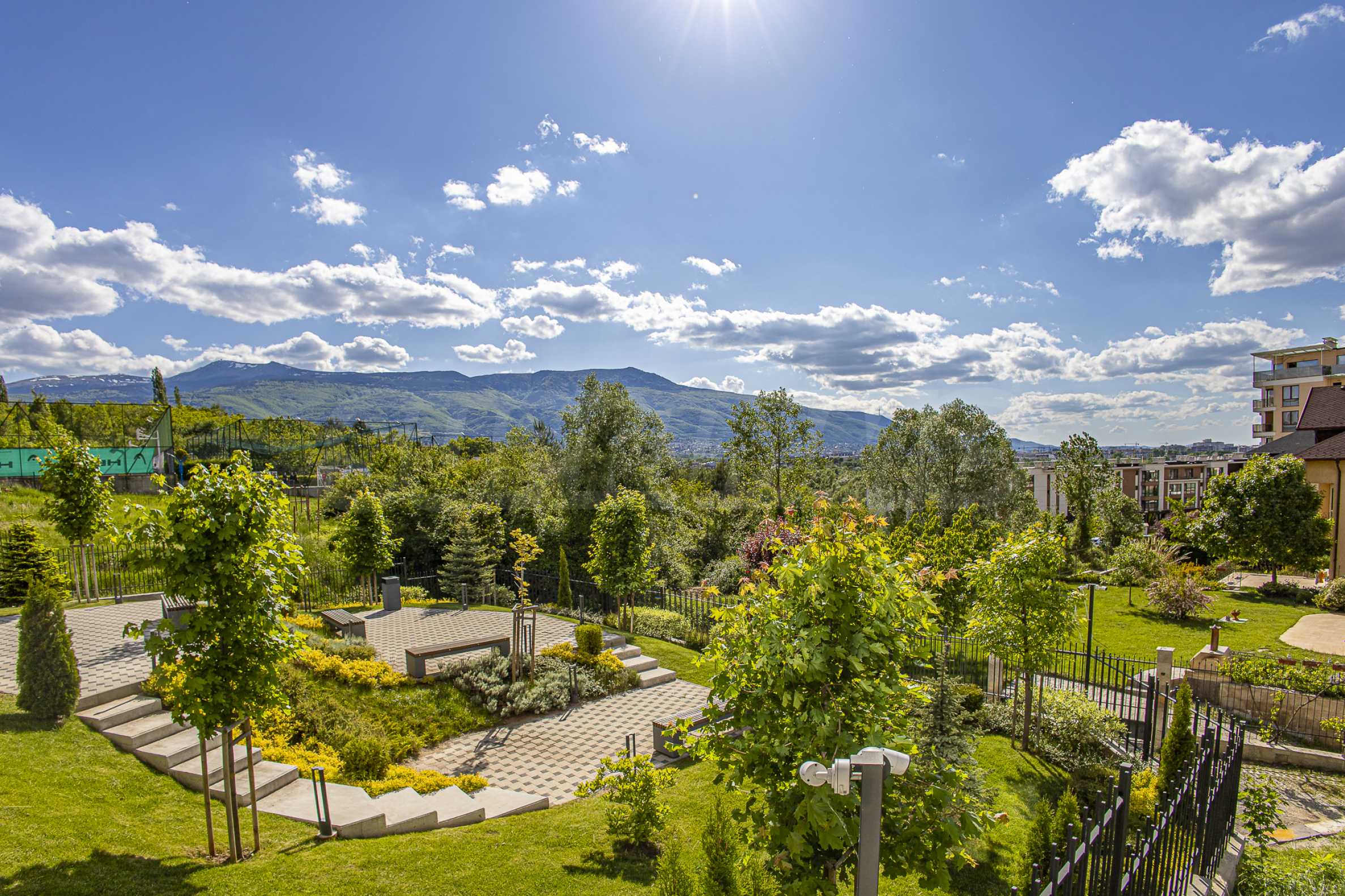 Имотът се намира на 1-ви етаж, с красива гледка към градината и планината.