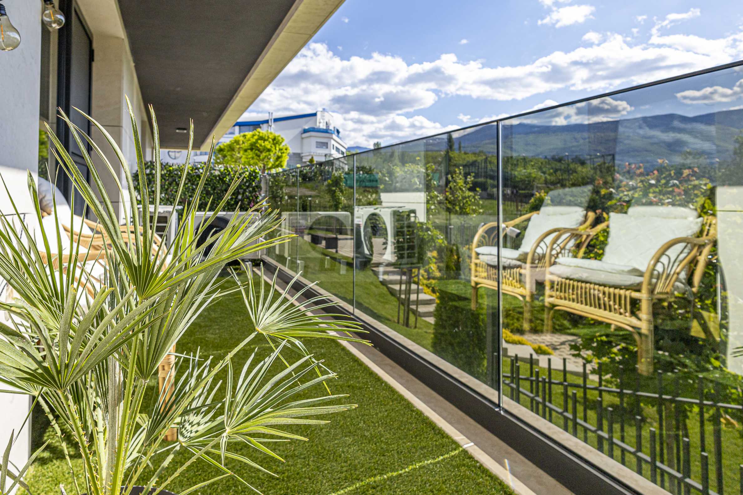 - обширна тераса с панорамна гледка към планината, отлична зона за релакс на открито, с изглед и към поддържания озеленен двор.