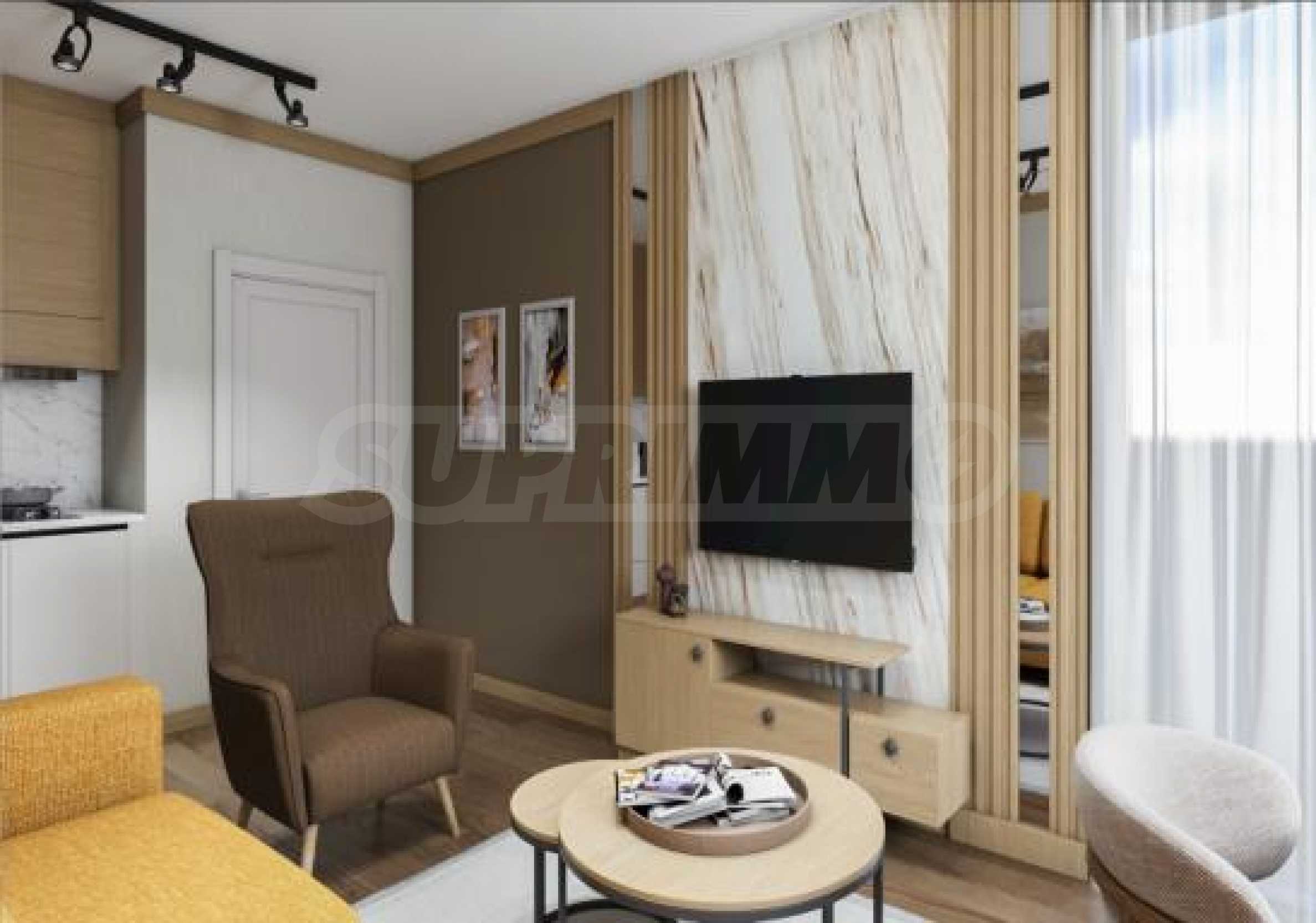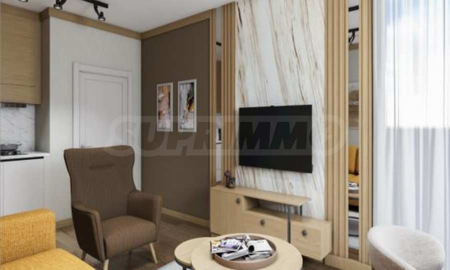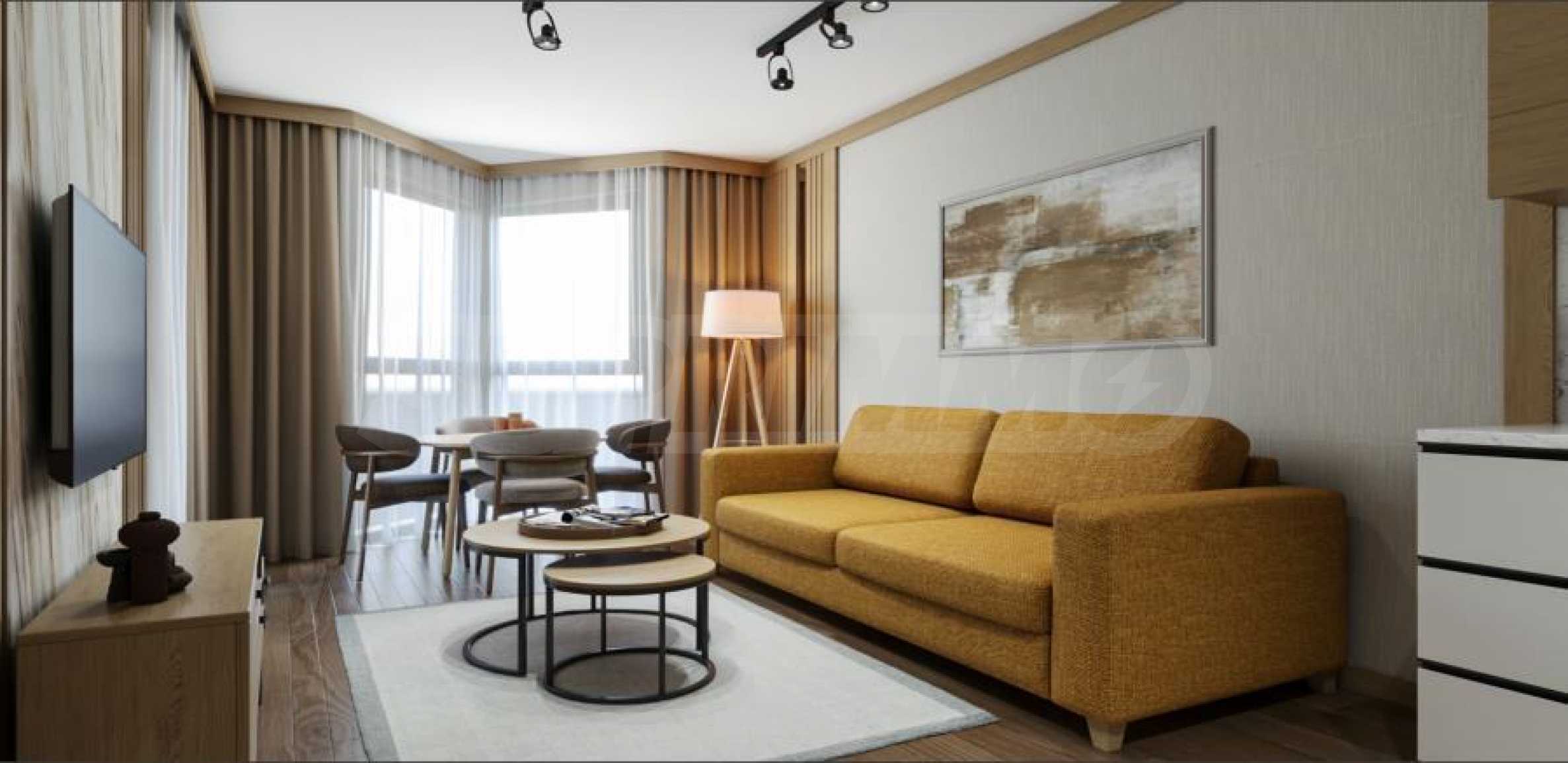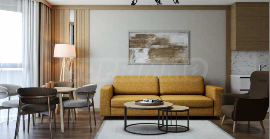 Апартаментите се предлагат в степен на завършеност по БДС (на шпакловка и замазка), с възможност за пълно обзавеждане:
