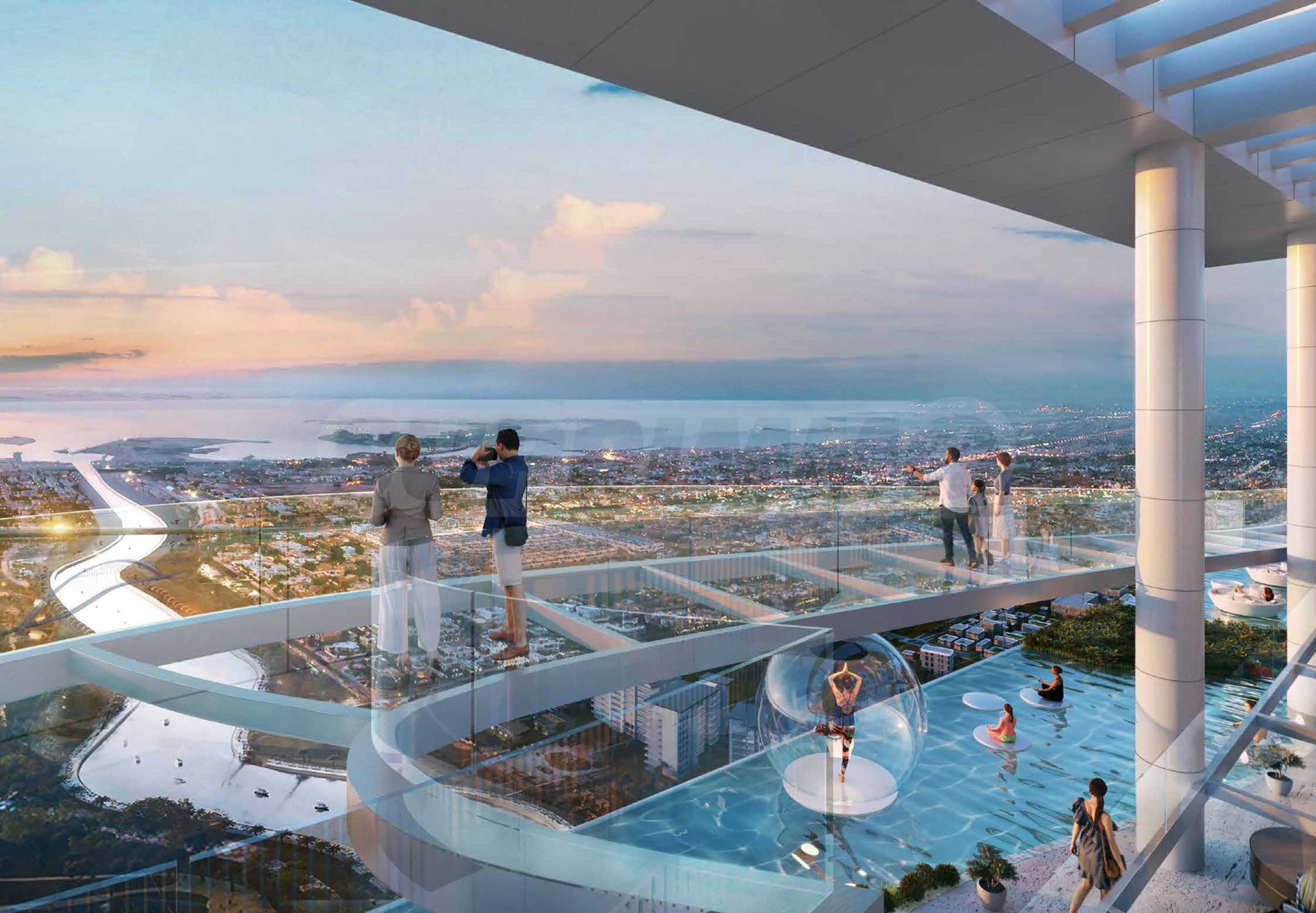 Разположен на първокласна локация в Safa Park и до Sheikh Zayed Road, проектът предлага неповторими панорамни гледки към динамичния градски силует и безкрайното синьо на морето. Тук ще откриете широка гама от апартаменти с от 1 до 5 спални. Всяка резиденция е създадена да бъде не просто жилище, а истински, жив дом – пространство, в което светлината и просторът се сливат посредством на елегантните френски прозорци. Избрани апартаменти ще имат удоволствието да разполагат с частни басейни, позиционирани на терасите – място, където водата и зашеметяващите гледки към града създават усещане за съвършена хармония.