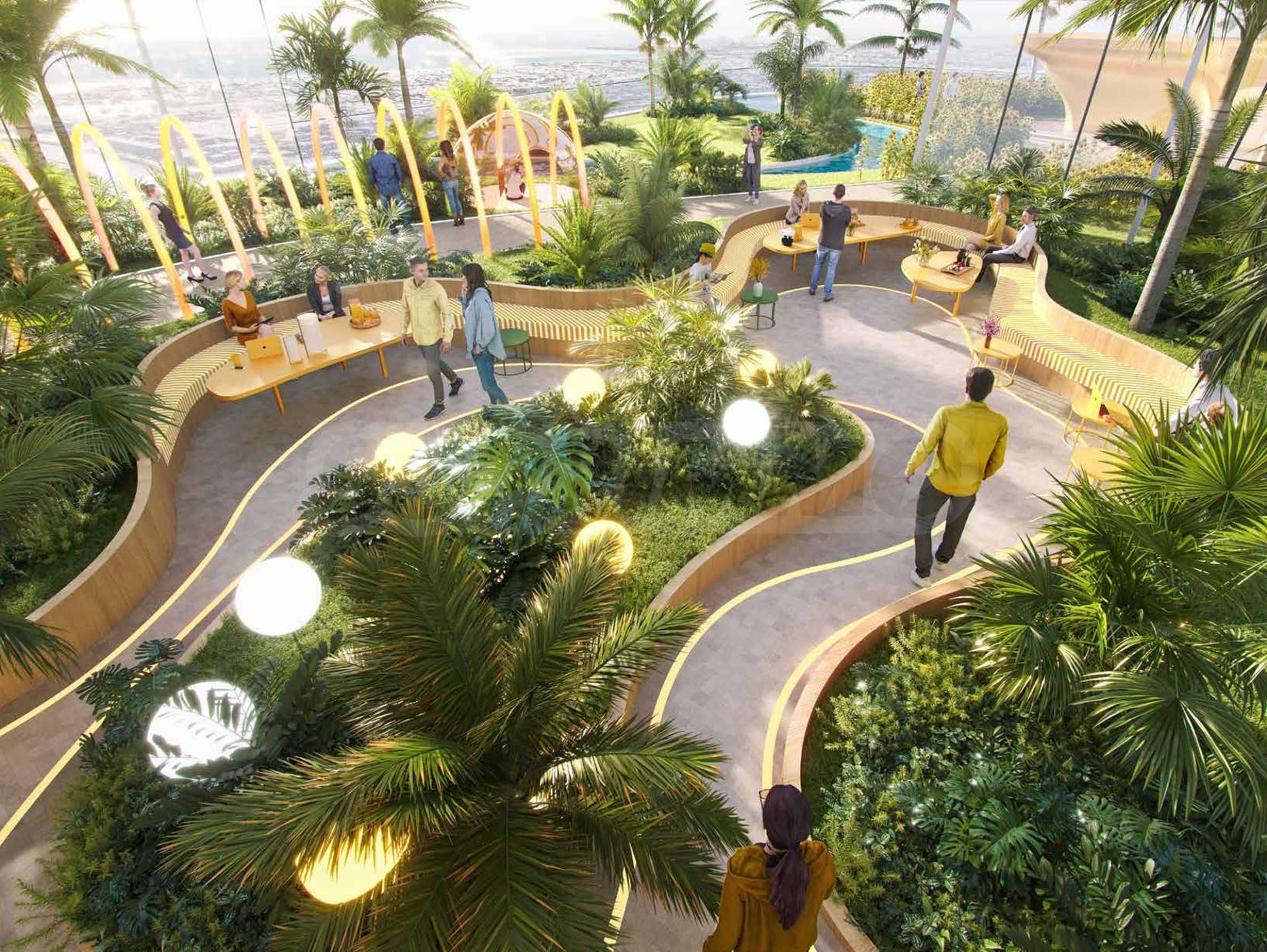 Safa Gate не просто предоставя изключителни жилища, но и предлага селекция от премиум удобства, създадени, за да издигнат качеството на живот на своите жители на ново ниво. На покрива на проекта ще откриете впечатляващ инфинити басейн, създаващ усещане за безтегловност над града. Наред с това, на разположение са стилен rooftop бар и богато озеленена градина – идеални за отмора и социални срещи.
