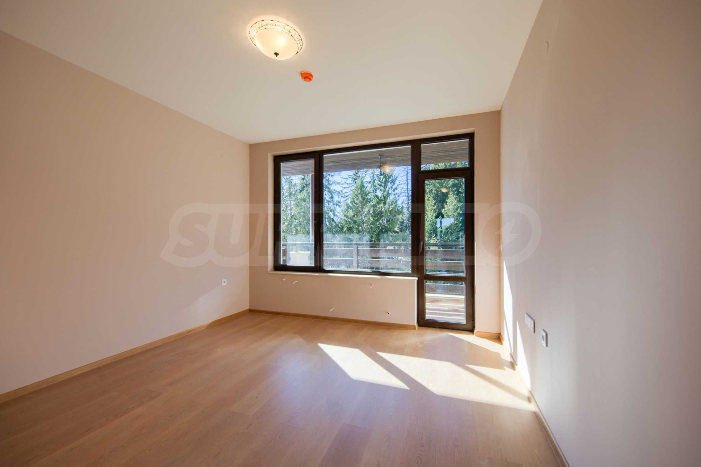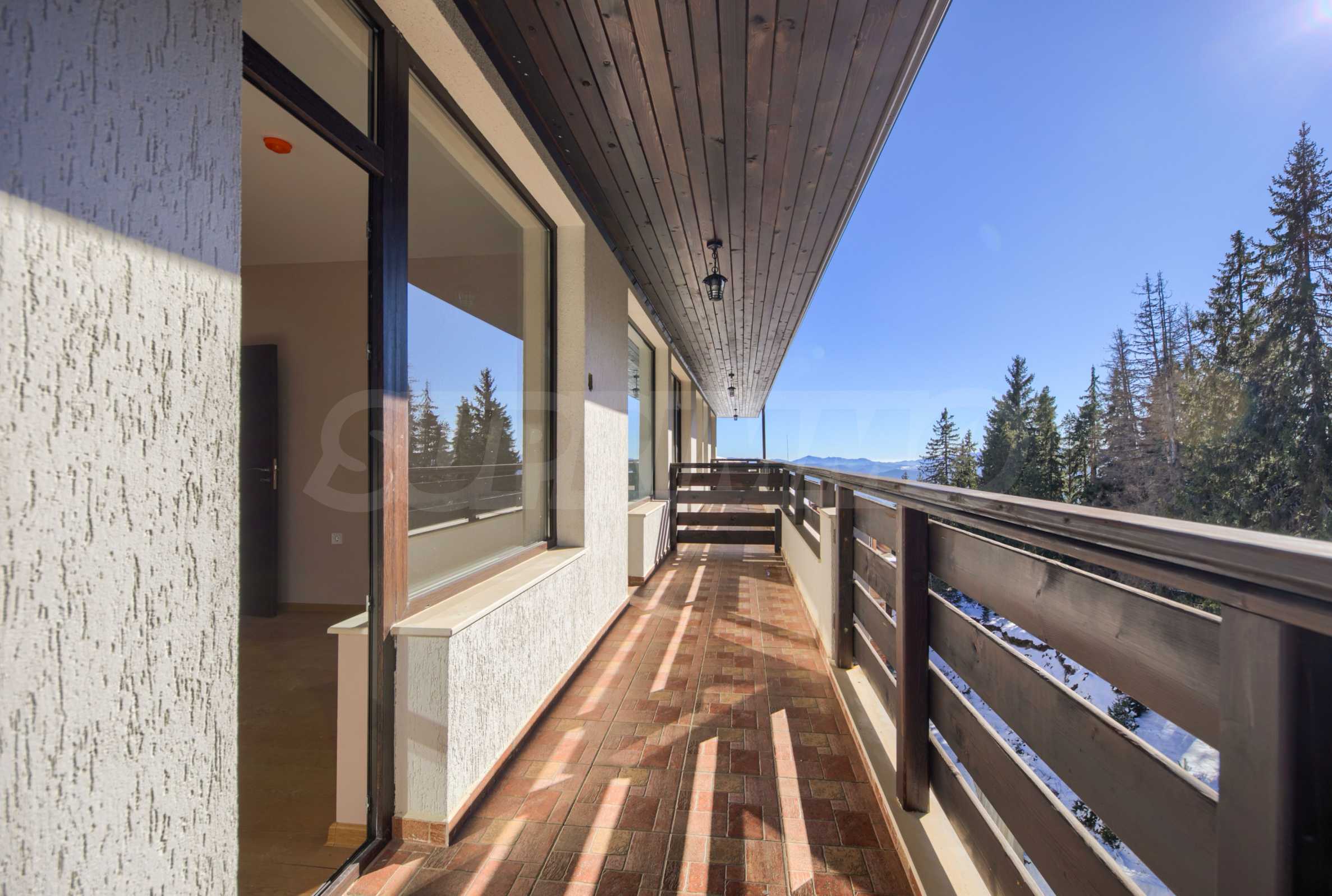 - Територията е с изобилие от зеленина и места за отдих за собствениците и техните гости. СПА центърът в хотелската част ще предложи релаксиращи преживявания, които укрепват организма и незабравима почивка в планината.