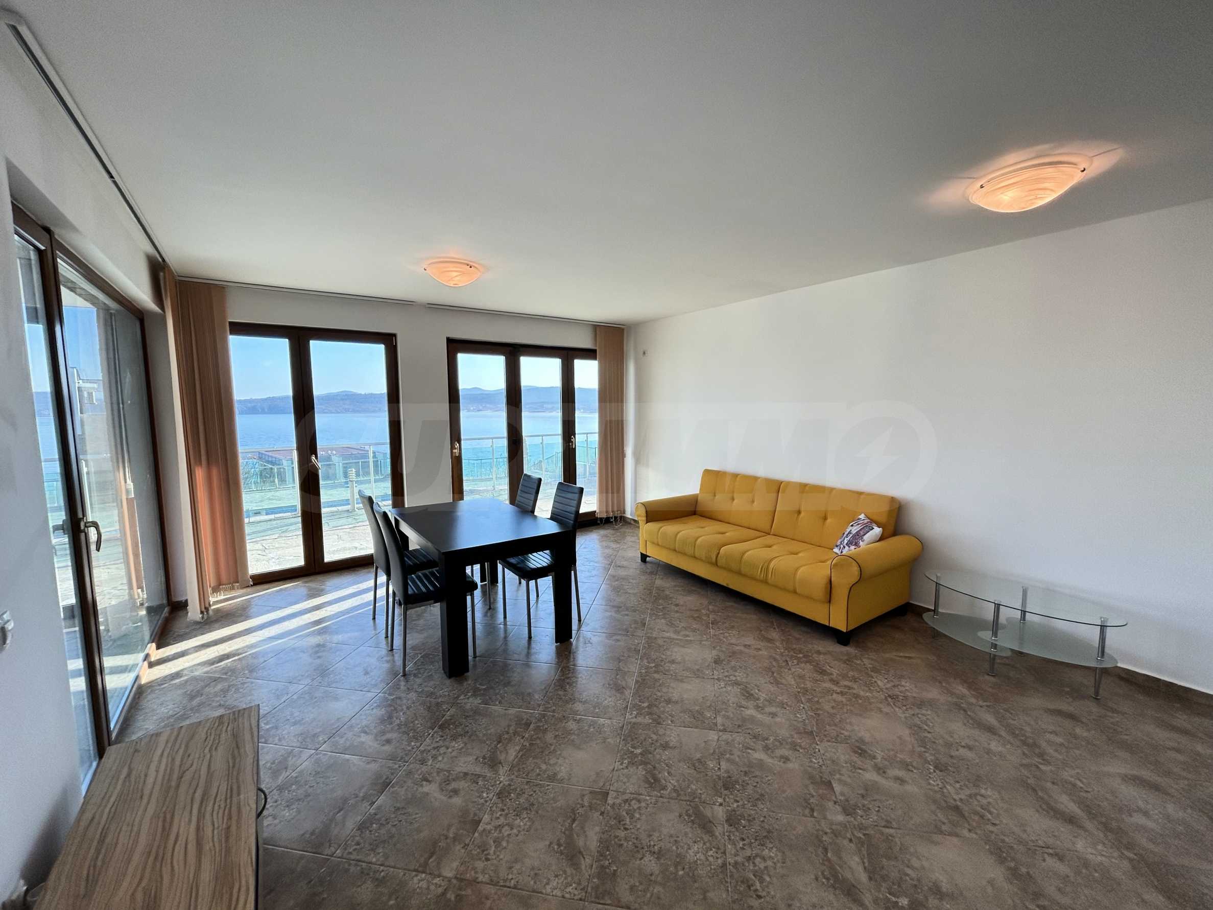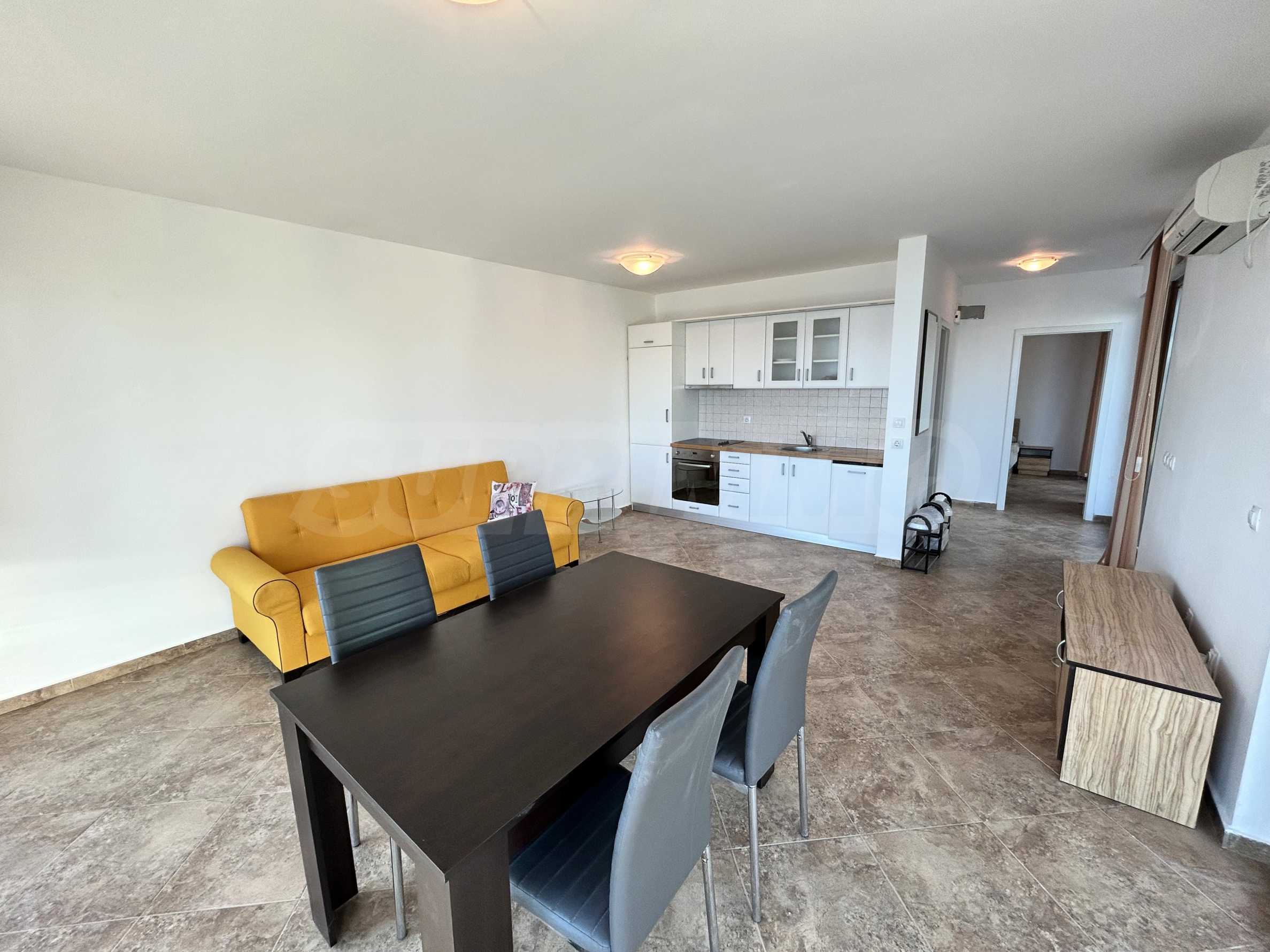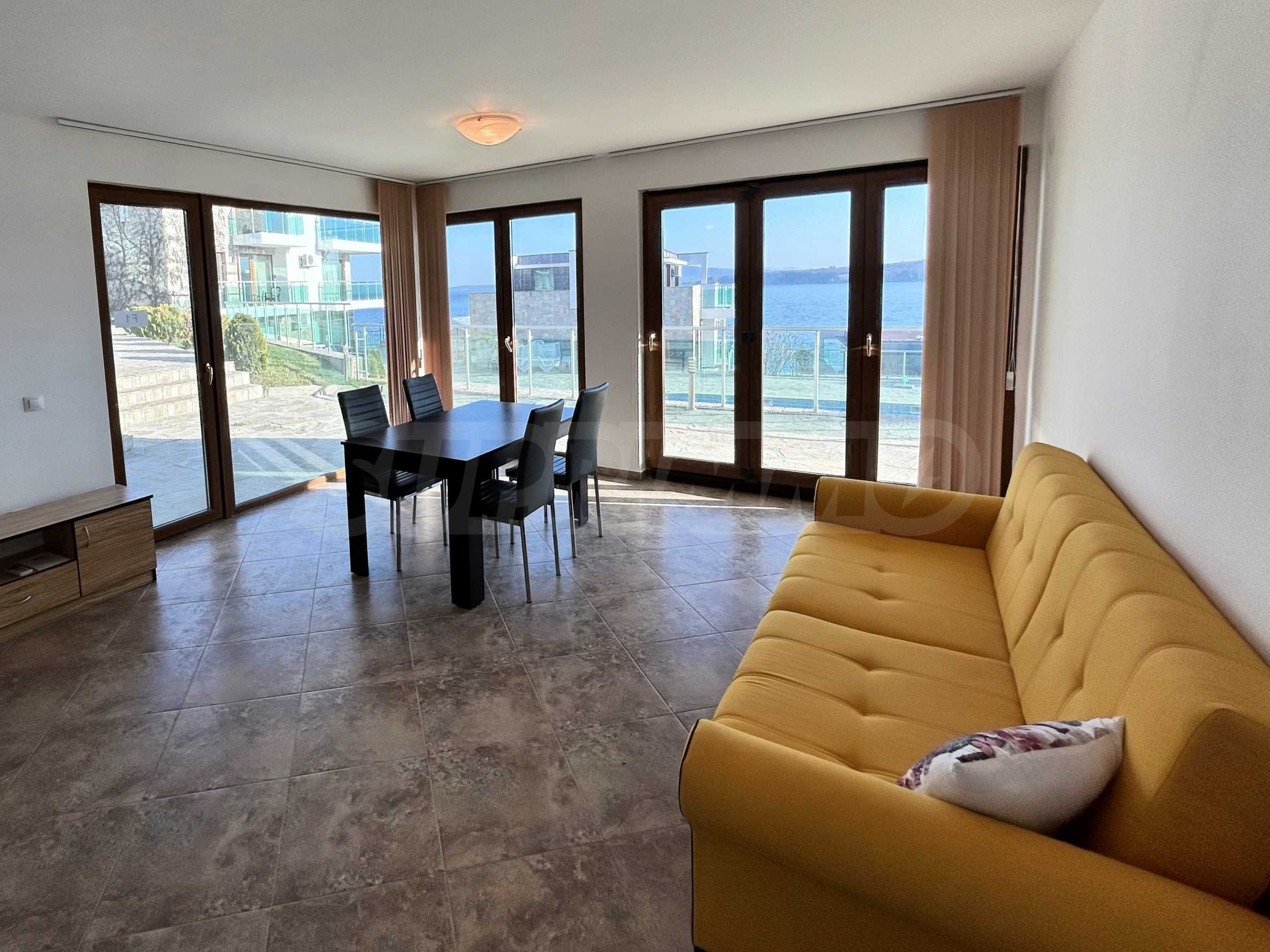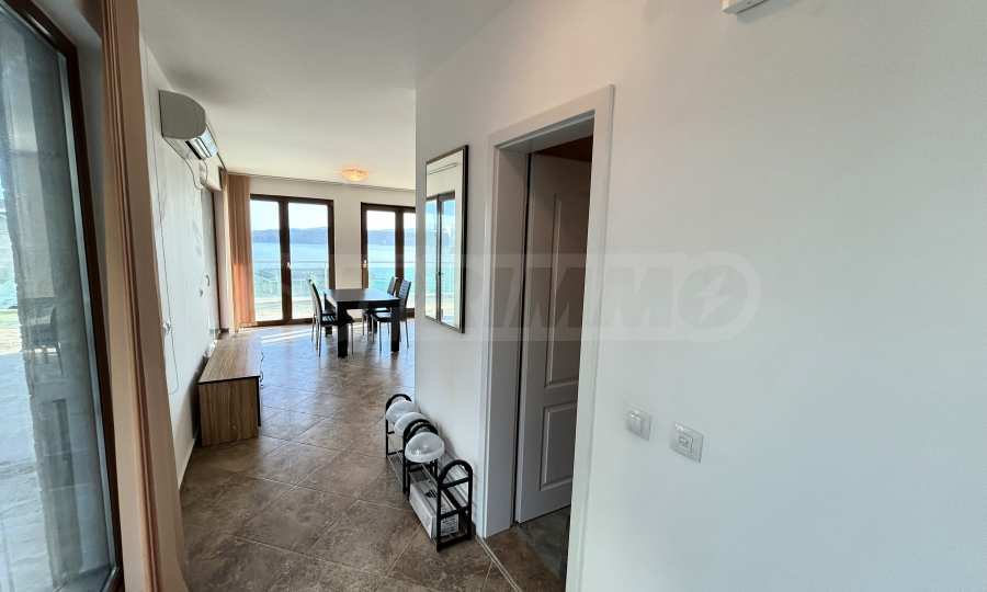 Представяме светъл и просторен двустаен апартамент с изключителна гледка към морето и басейна, разположен в луксозен затворен комплекс на първа линия в Созопол.
