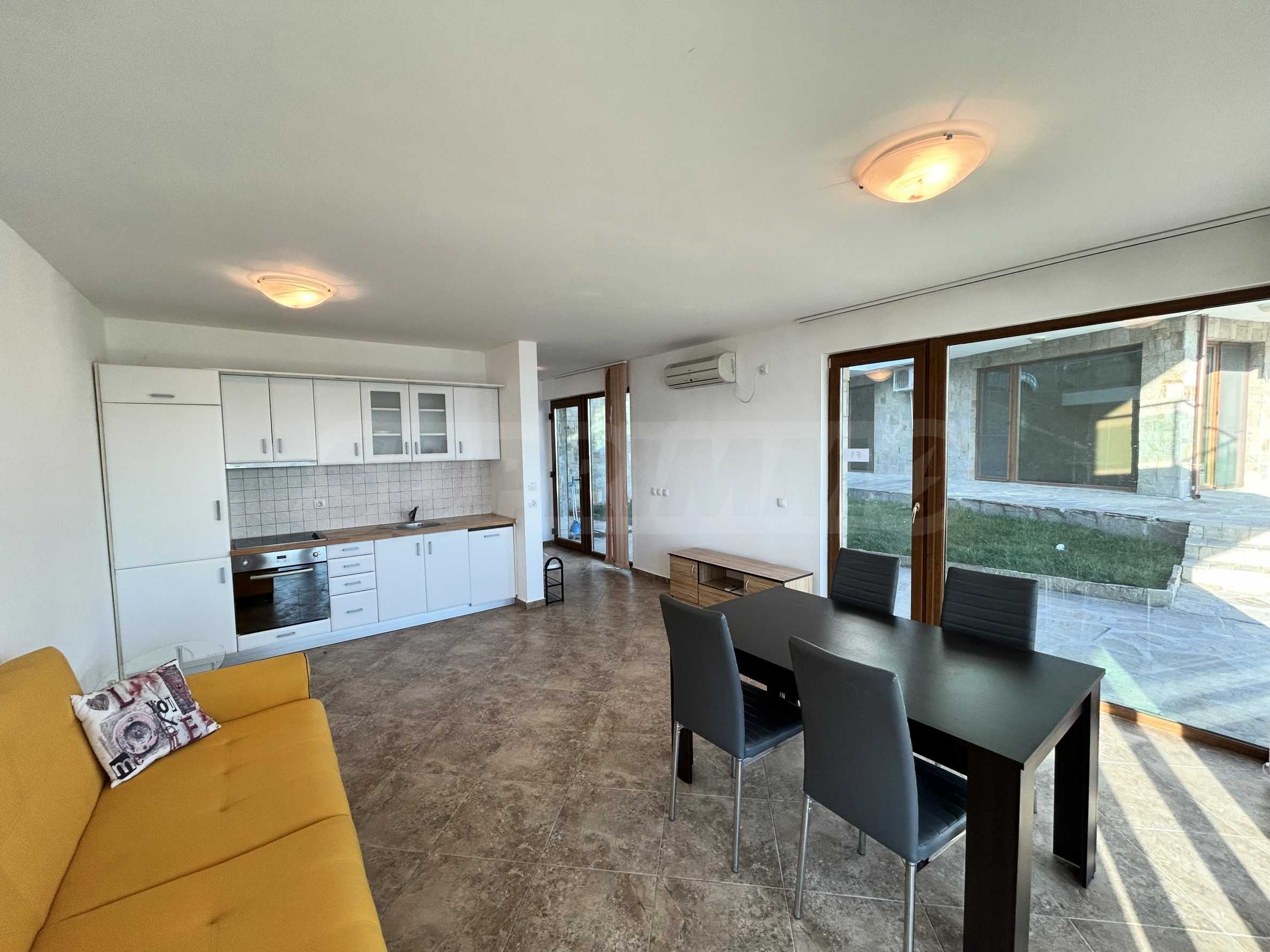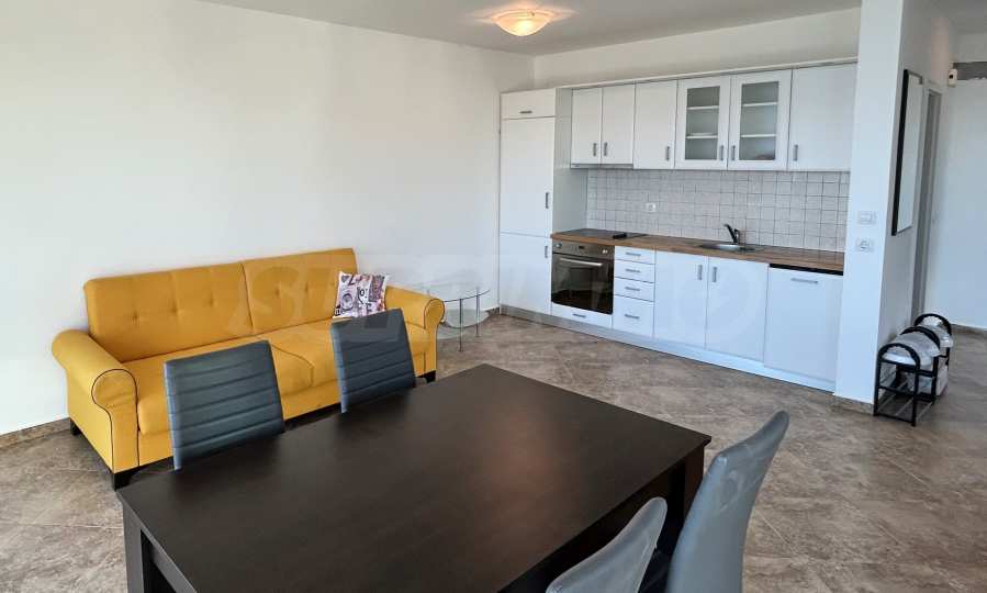 - светлата всекидневна е с удобна зона с диван, трапезарен комплект;
