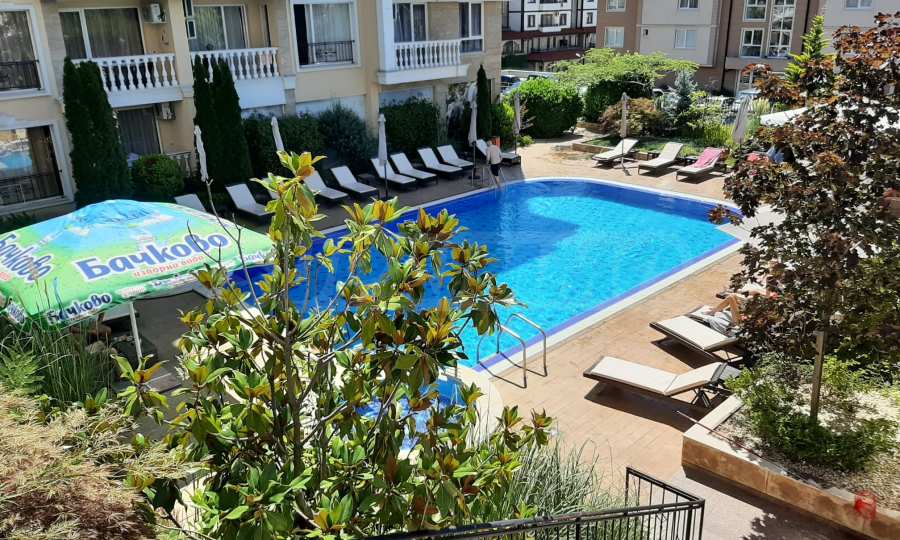 Апартаментът се намира в нов, елегантен комплекс с басейн и СПА-зона, разположен само на 200 м от плажа на Свети Влас. Местоположението предлага лесен и бърз достъп до централната част на курорта, както и към престижното яхтено пристанище "Марина Диневи".