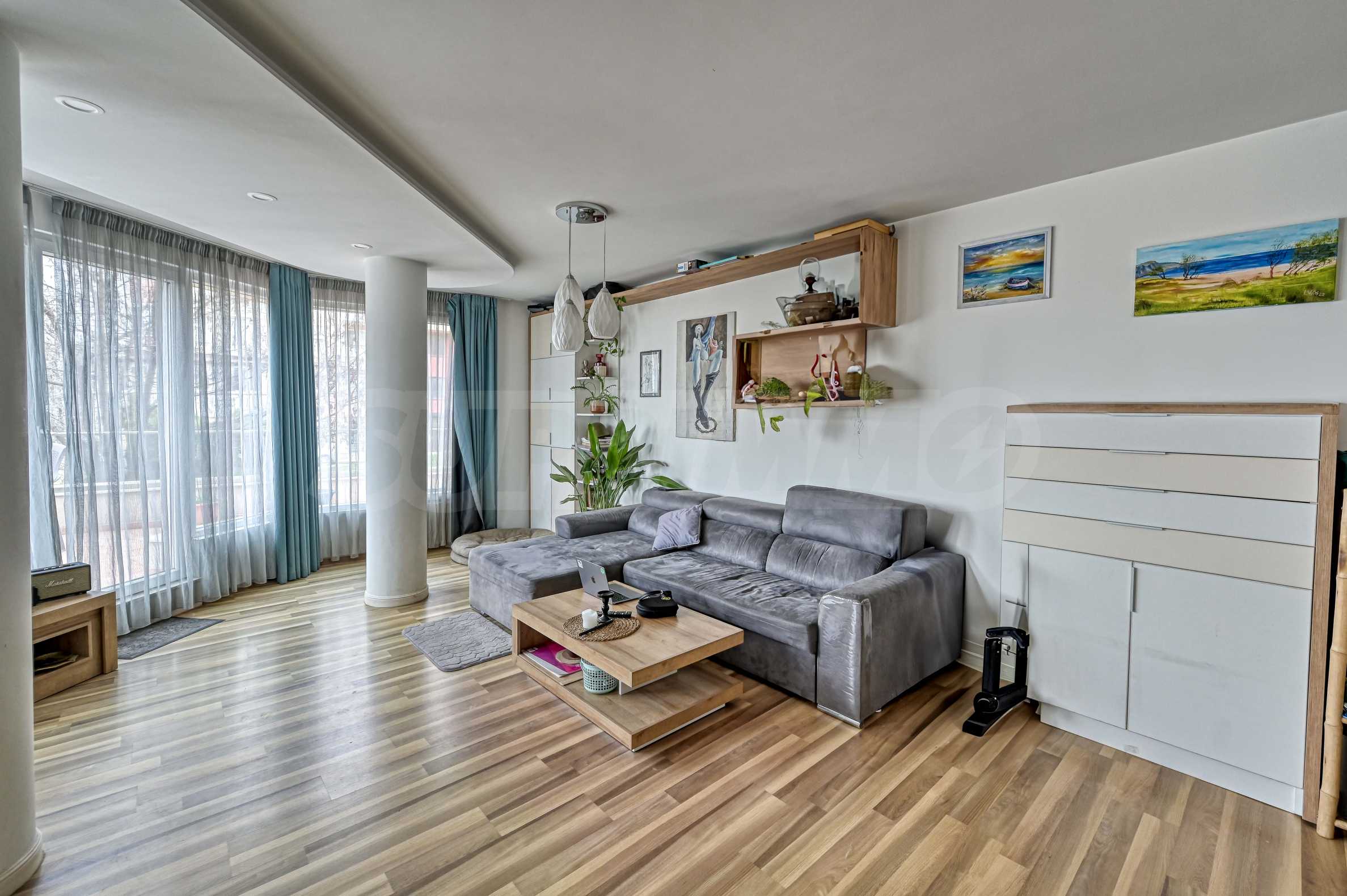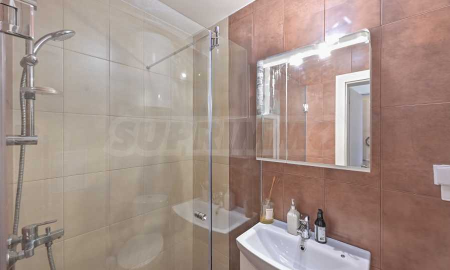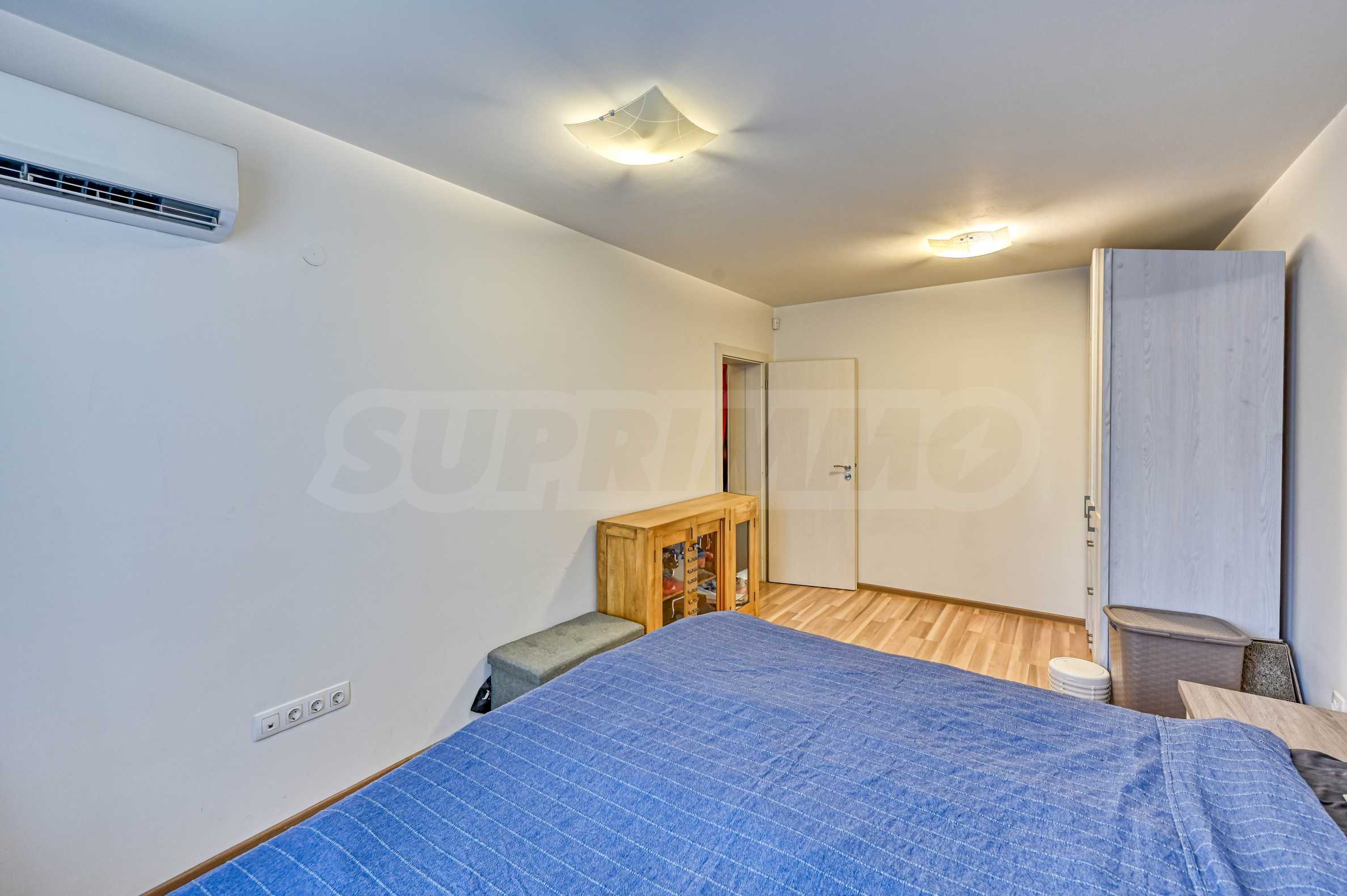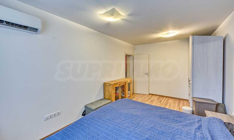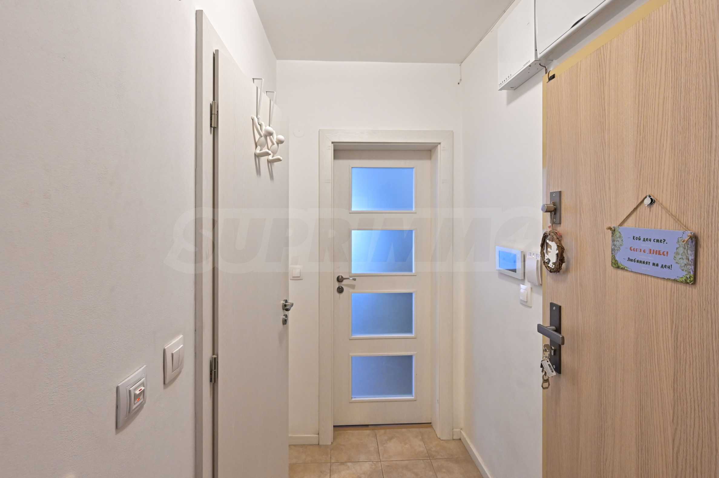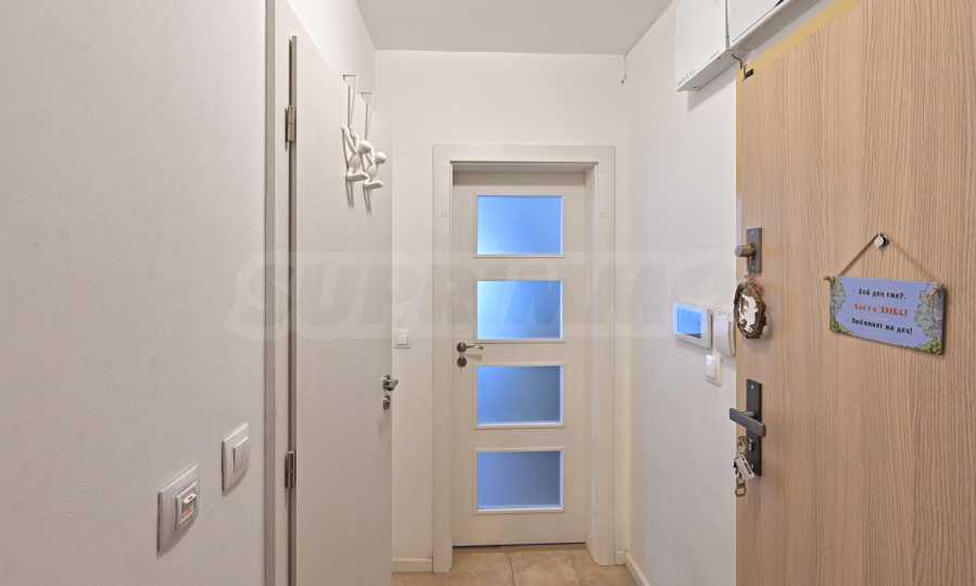 Апартамента е изпълнен по индивидуален проект с обзавеждане и оборудване. Предлага атрактивен дизайн от светли тонове, с отлично зонирано пространство и модерно устройство.