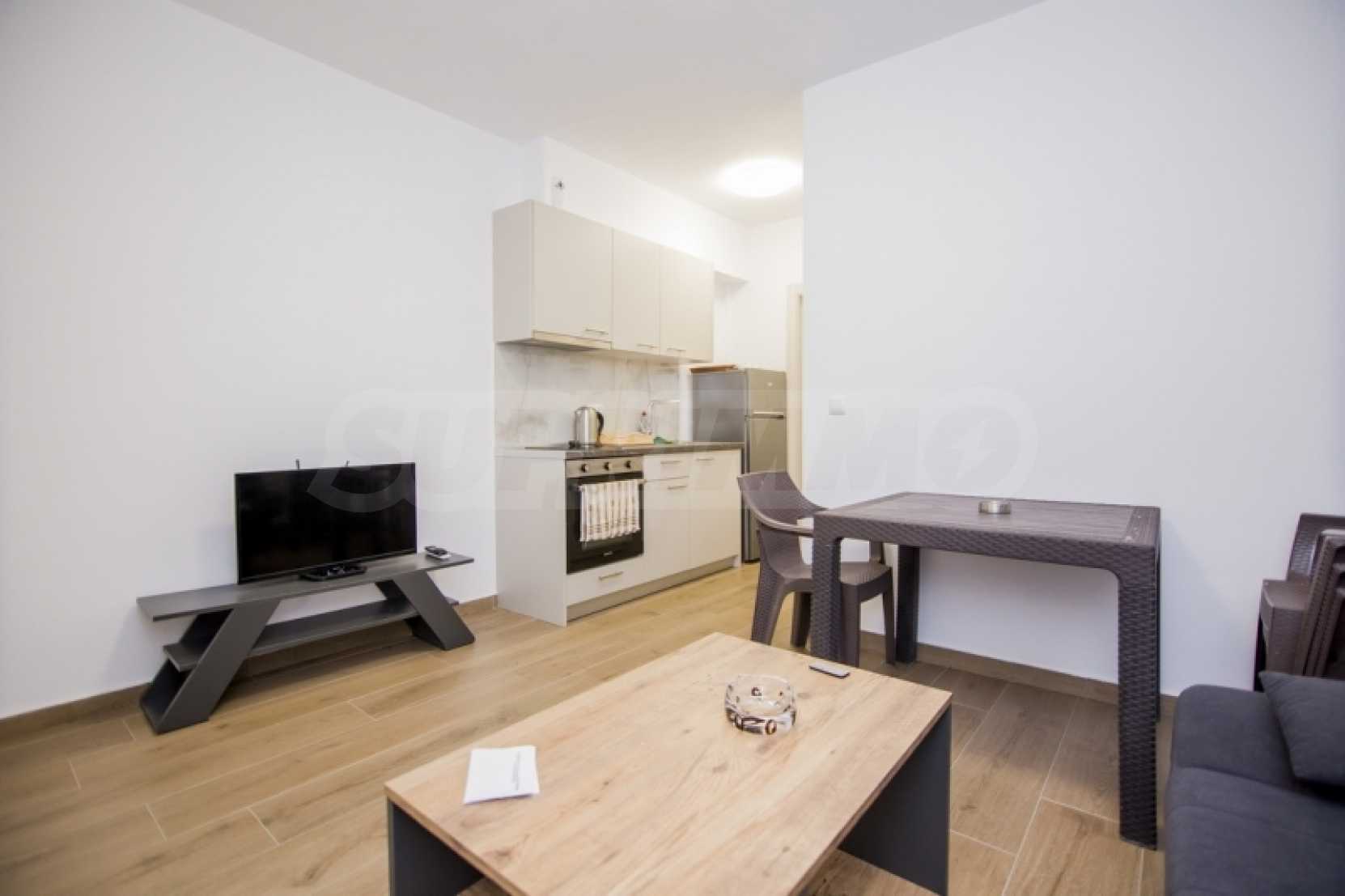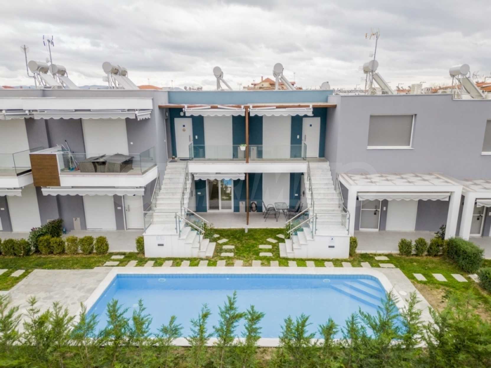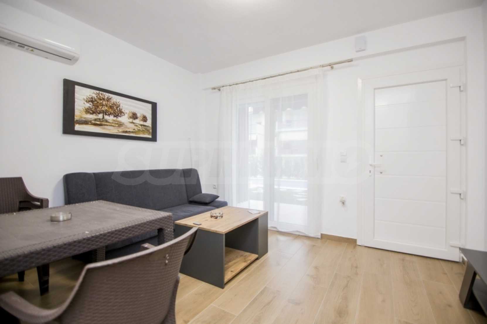 Партерен апартамент от 34,5 кв.м в комплекс "Перла" в Ofrynio Beach на Кавала. Състои се от хол с кухня, спалня и баня. Апартаментът е с директен достъп до централния басейн на комплекса, синтетична дограма с комарници, соларен бойлер и блиндирана врата. Имотът е напълно обзаведен и оборудван с всички електроуреди. Намира се само на 250 метра от главната пешеходна улица и на 350 метра от известния плаж на района. Идеален избор за ваканционен дом на морето, но и отлично инвестиционно предложение. Година на строителство: 2022 г. За оглед на имота е необходимо представяне на лична карта.