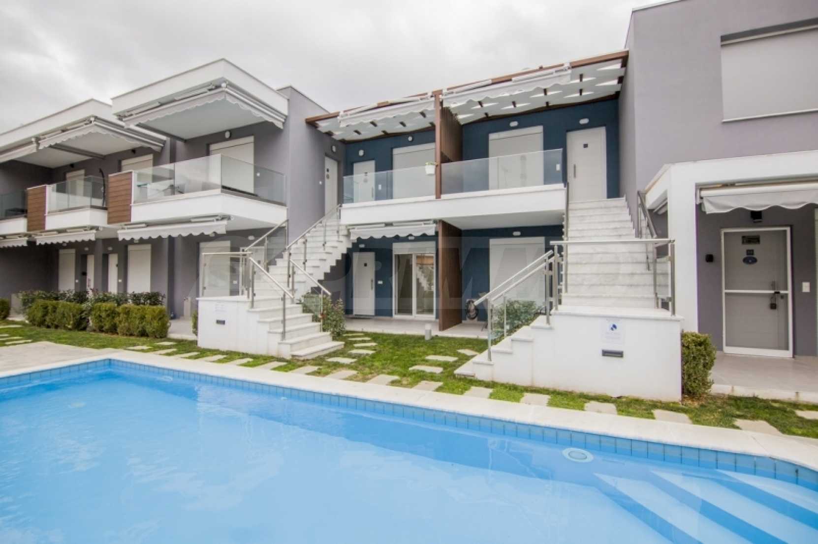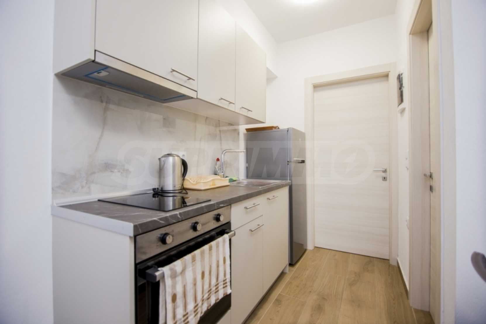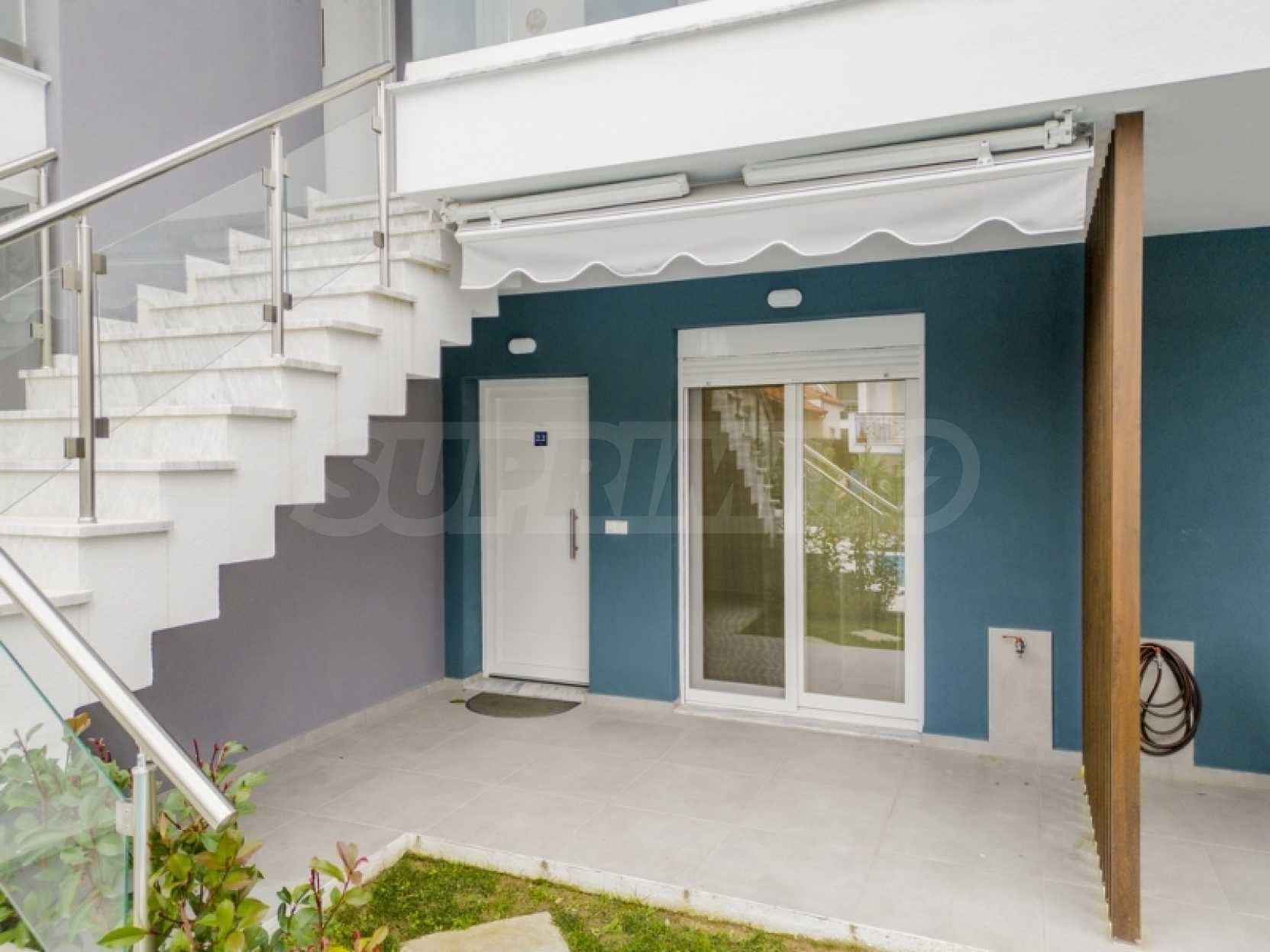 Партерен апартамент от 34,5 кв.м в комплекс "Перла" в Ofrynio Beach на Кавала. Състои се от хол с кухня, спалня и баня. Апартаментът е с директен достъп до централния басейн на комплекса, синтетична дограма с комарници, соларен бойлер и блиндирана врата. Имотът е напълно обзаведен и оборудван с всички електроуреди. Намира се само на 250 метра от главната пешеходна улица и на 350 метра от известния плаж на района. Идеален избор за ваканционен дом на морето, но и отлично инвестиционно предложение. Година на строителство: 2022 г. За оглед на имота е необходимо представяне на лична карта.
