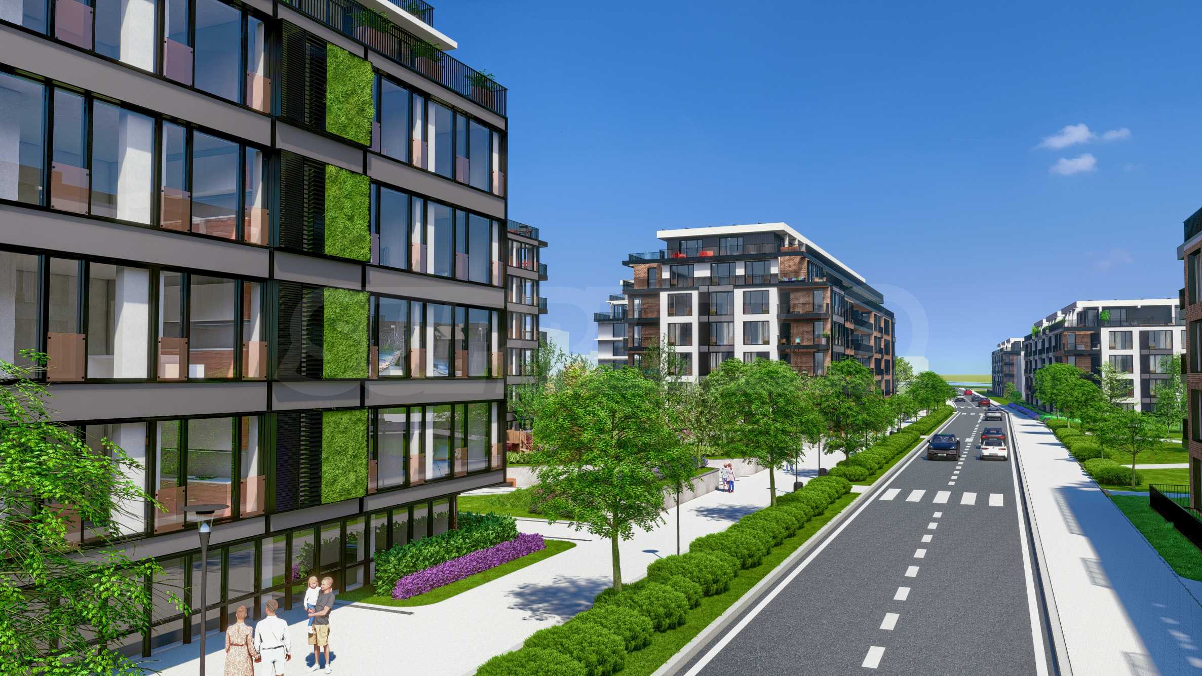 Проектът се състои от 2 сгради и четири жилищни секции. Жилищните секции са типизирани - огледални и повтаряеми. Предлага студиа, двустайни, тристайни, четиристайни апартаменти, гаражни клетки и паркоместа, реализирани изцяло в подземен гараж, паркова среда с два детски къта - 5500 кв.м, фитнес на открито и водно огледало.