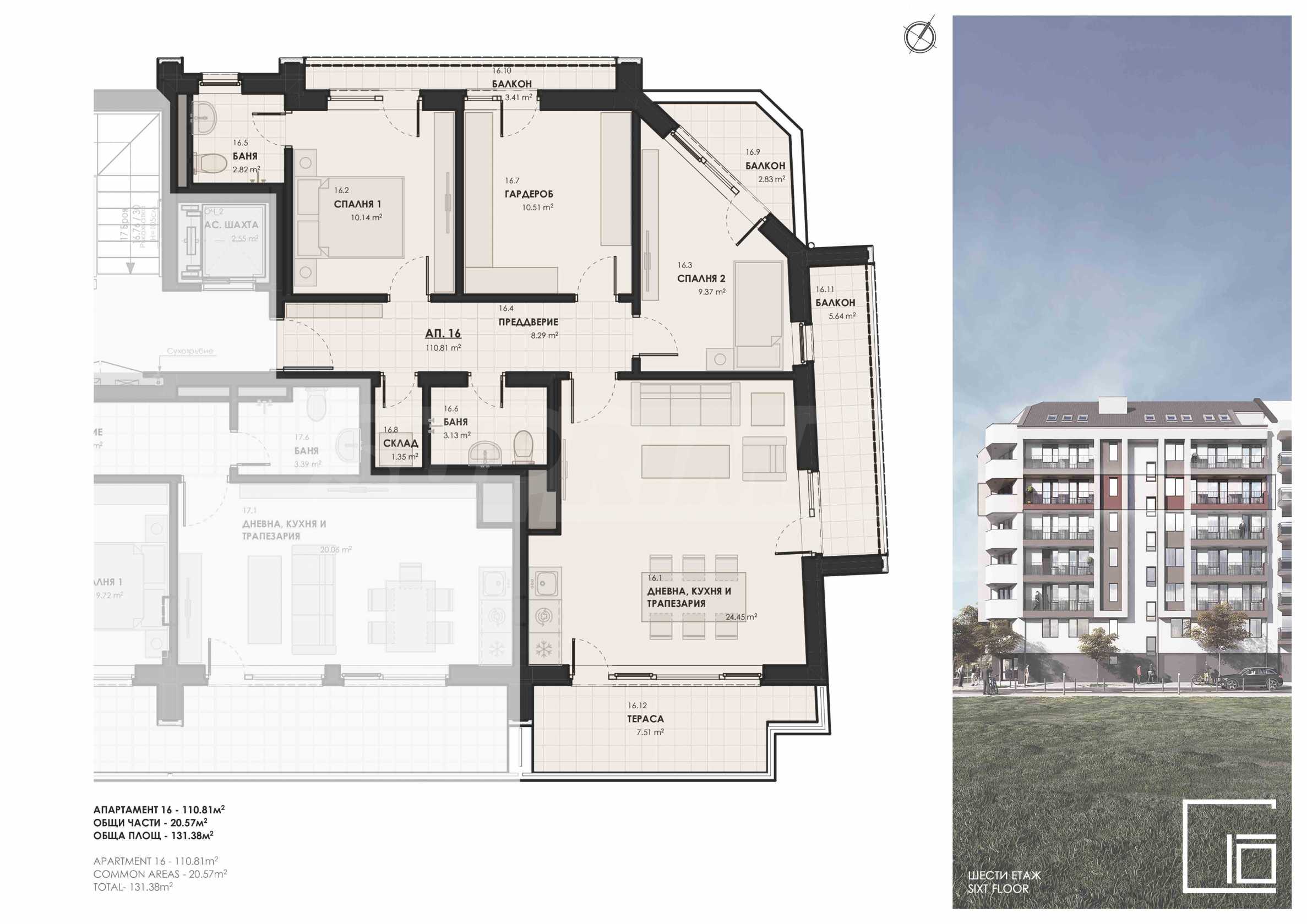 - Жилищата са от тип тристайни, четиристайни, петстайни апартаменти и един мезонет;