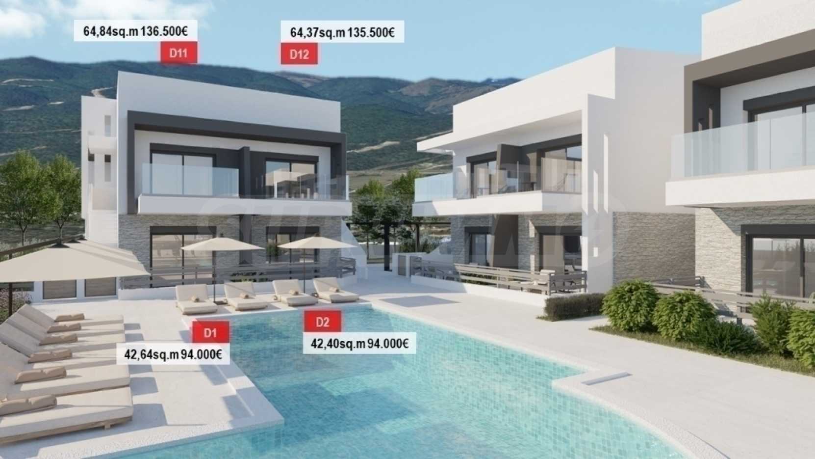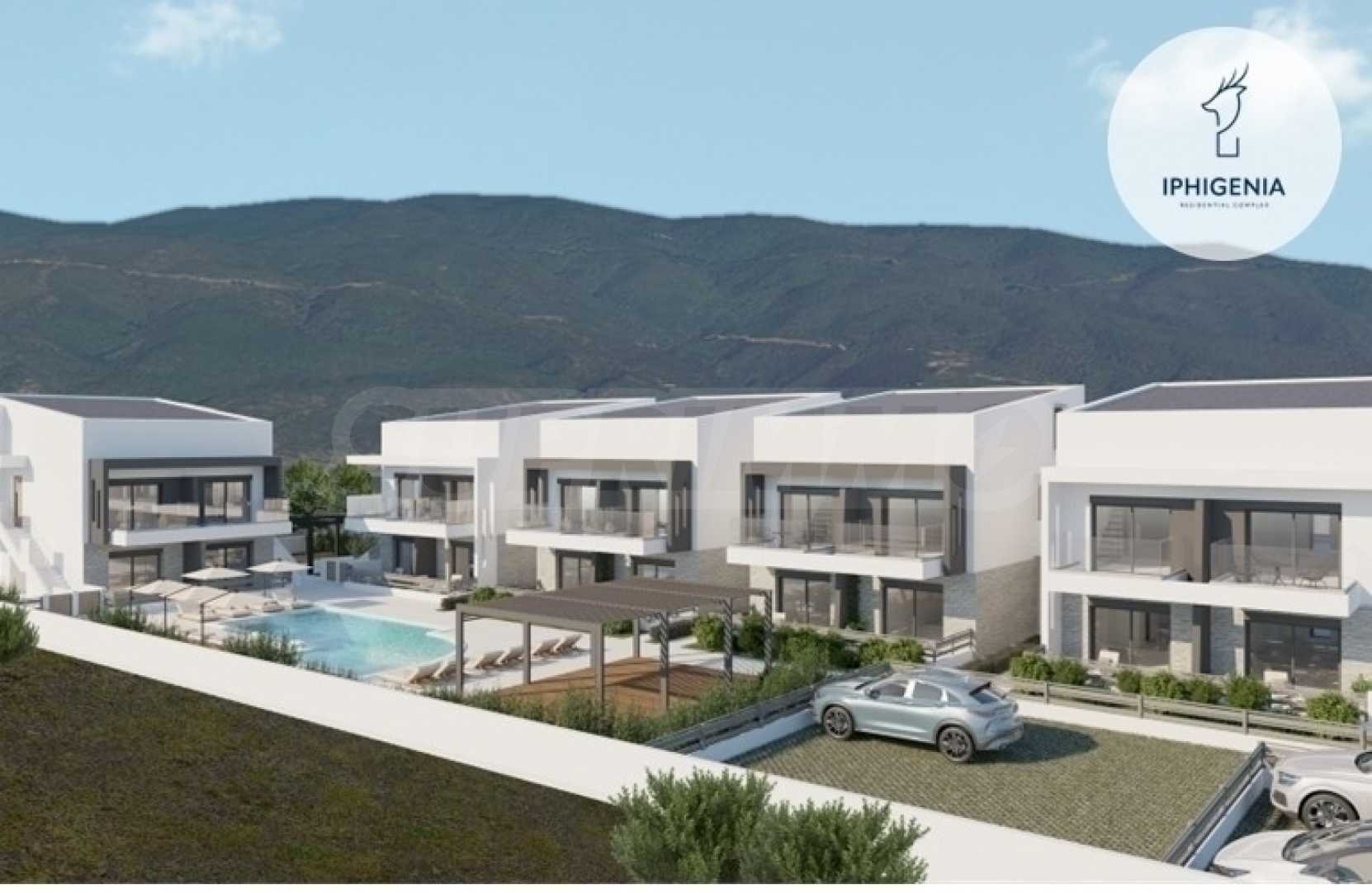 С внимателно обмисляне при избора на строителни материали и проектиран с модерна естетика и дизайн, комплекс Iphigeneia представлява проект с високи стандарти. Специалните каменни детайли и прецизното озеленяване създават атмосфера идеална за почивка. Освен това басейнът и специалният павилион обещават уникални моменти с любимите хора!