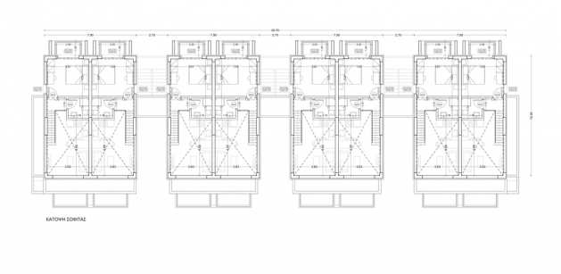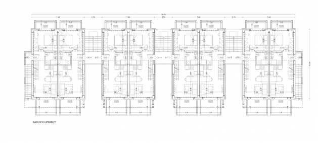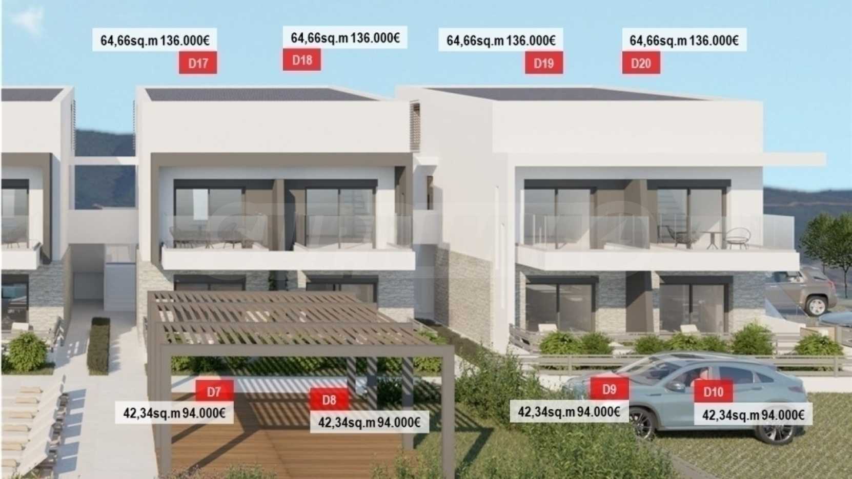 • 10 партерни апартамента от 42.34 кв.м до 42.64 кв.м, състоящ се от хол с кухня, 1 спалня и 1 баня.