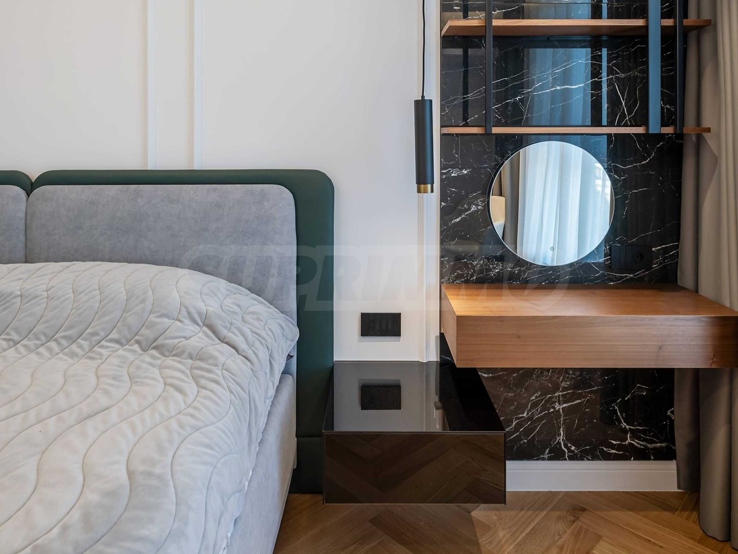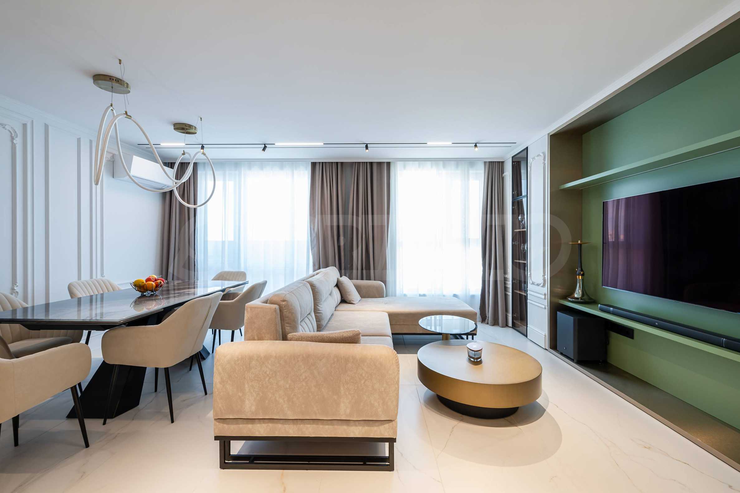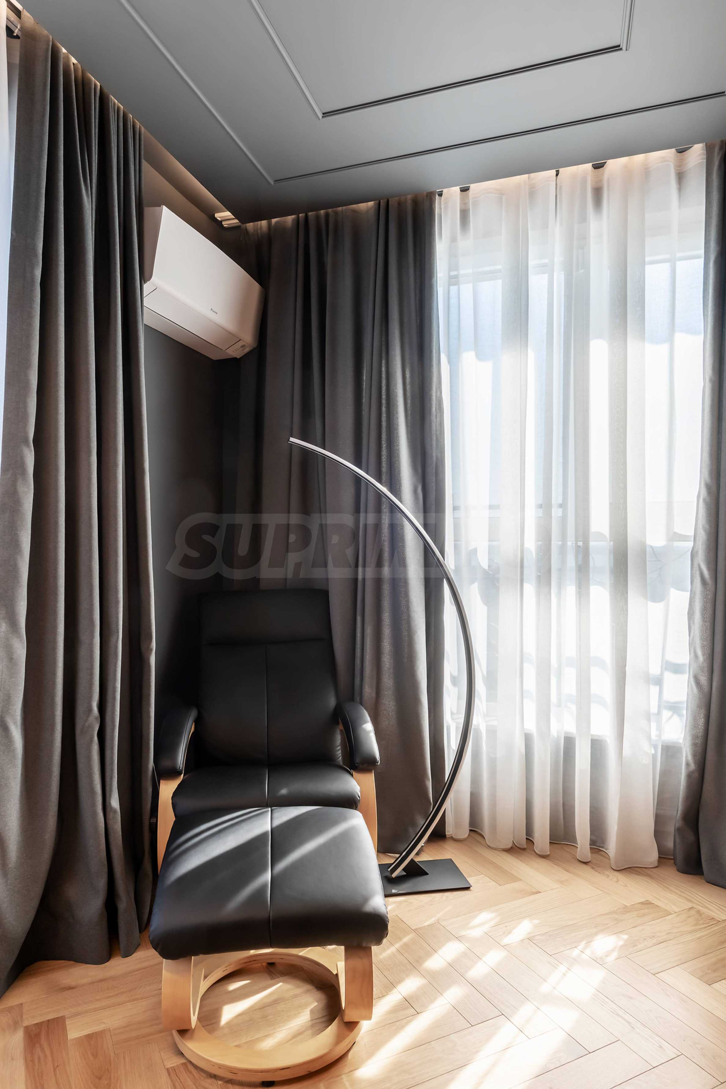 Апартаментът е с площ от 180 кв.м, разположен на 12-и етаж с красива гледка към града, градината и морето.