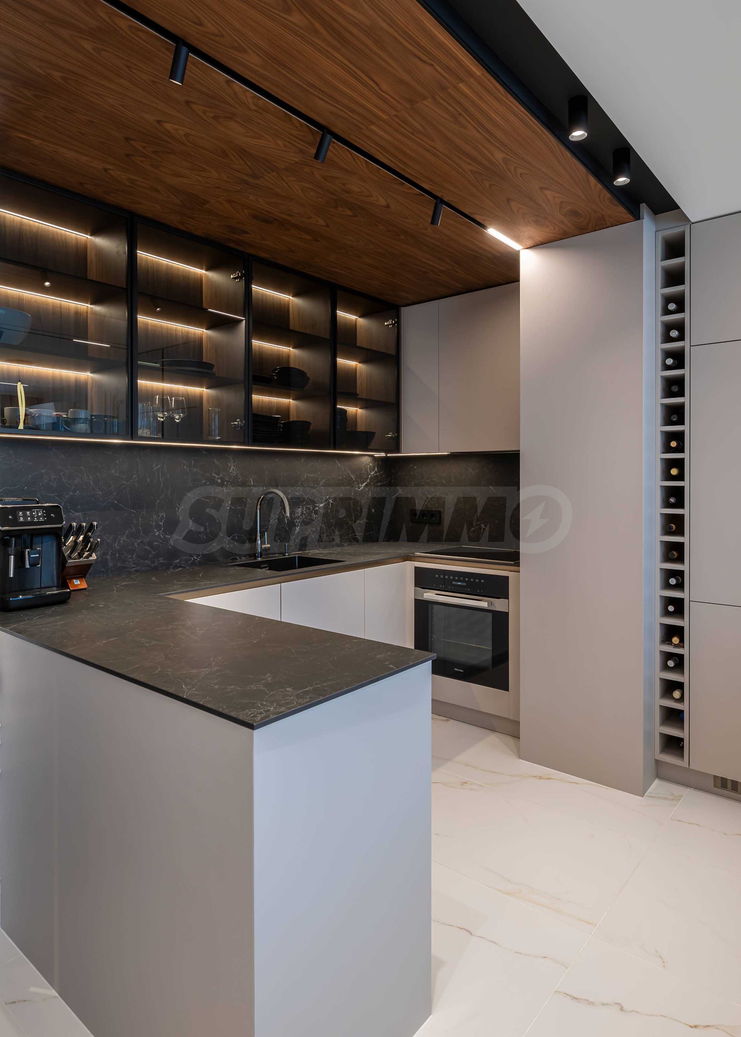 - кухненски кът с плот от камък, два вградени хладилника Liebherr и уреди на марката Miele, кът за вино;