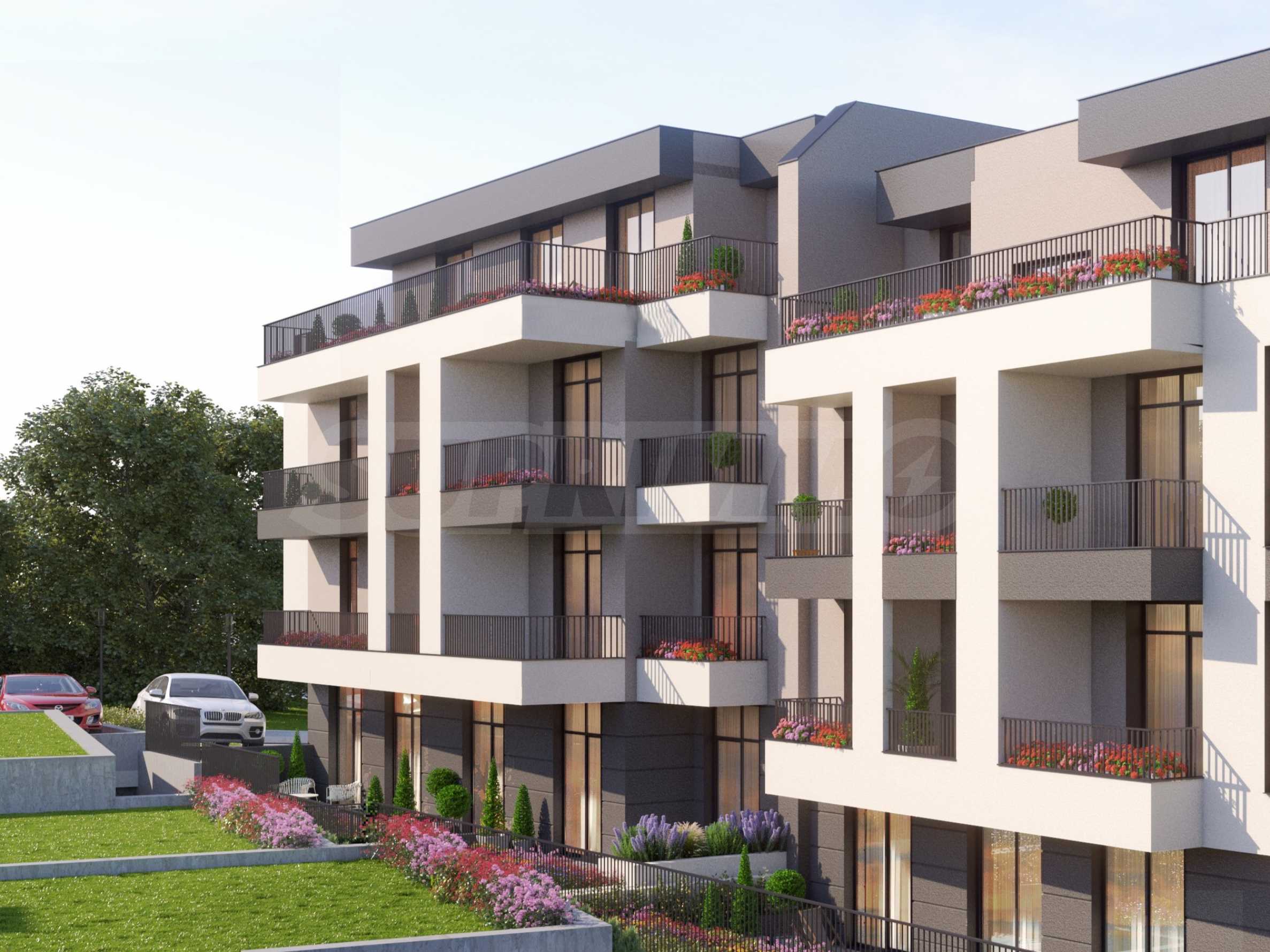 Апартаментите са разпределени на 4-ри нива в сградата, с достъп със съвременен асансьор. Имотите от по-високите етажи имат панорамна гледка към града, морето и зеленината на местността.