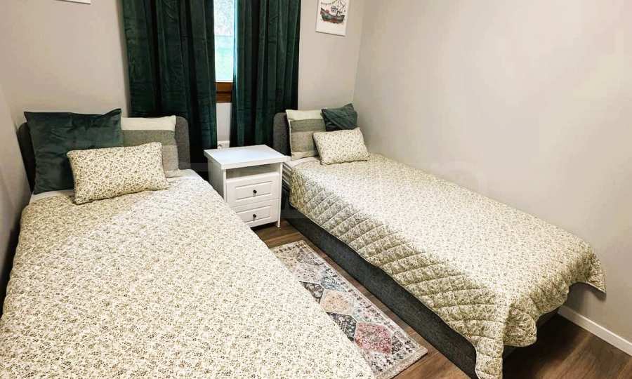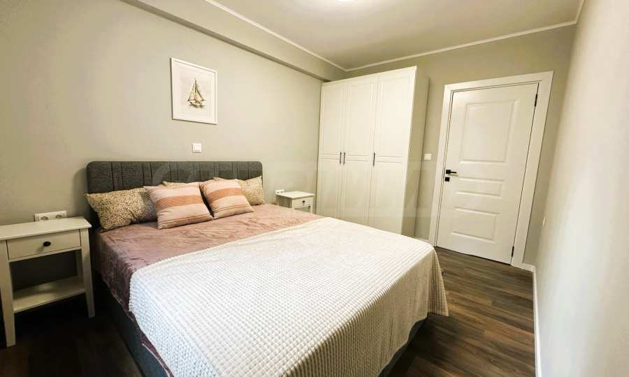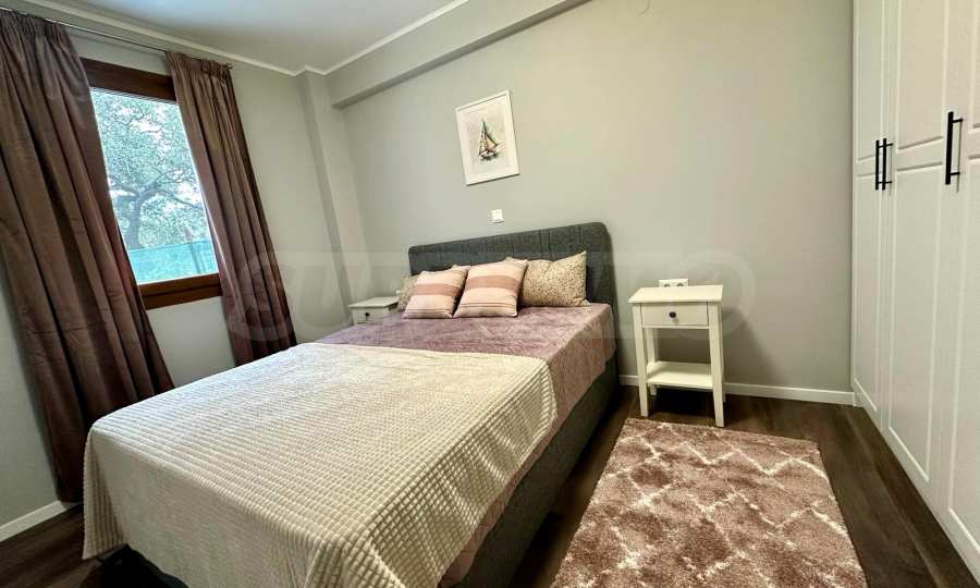 Апартаментът е напълно обзаведен и разполага с просторна тераса от 11 кв.м, от която можете да се насладите на прекрасни морски гледки – идеално място за релаксация и отпочиване. Сградата е построена върху парцел от 600 кв.м, с озеленен и добре поддържан двор. Към имота има включено паркомясто, което е голямо удобство.