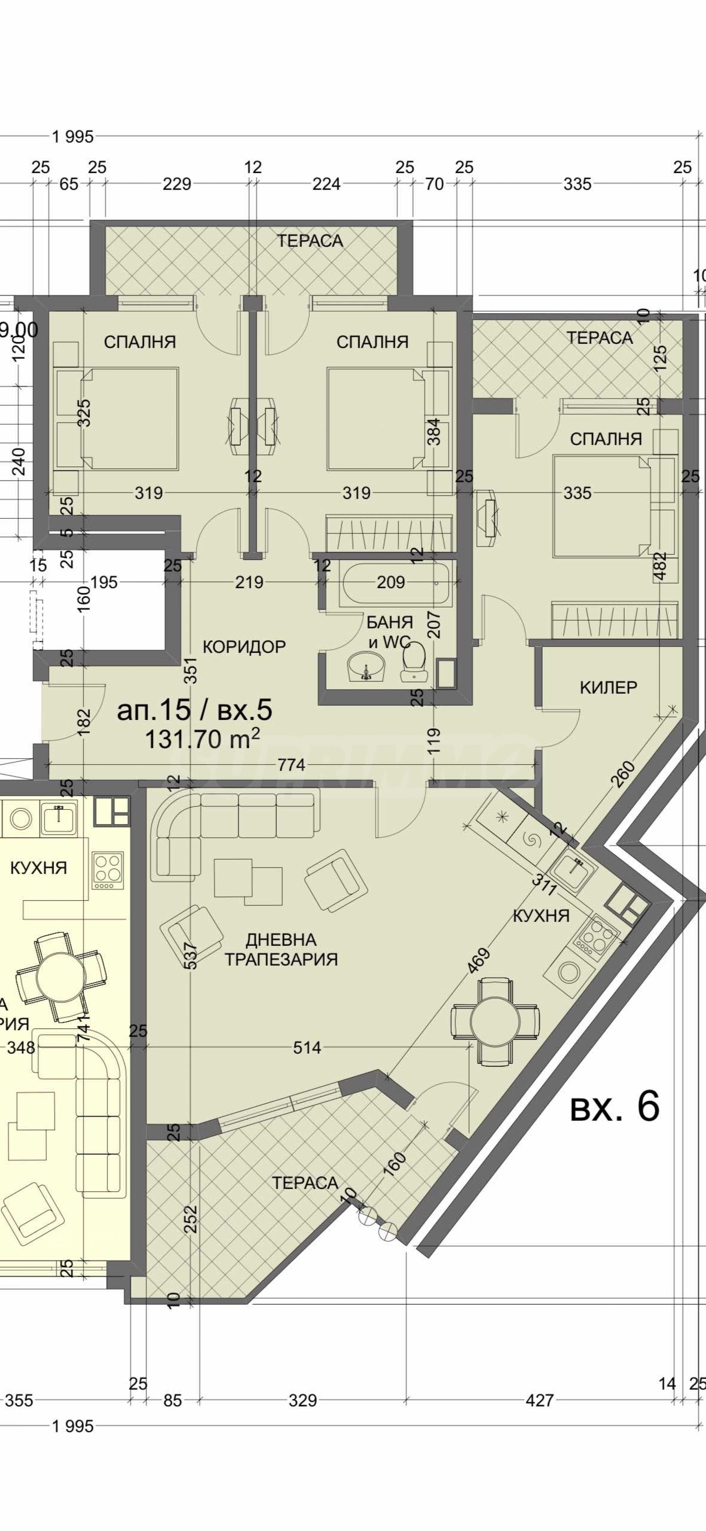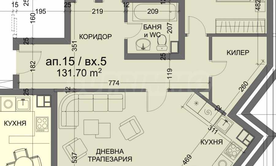 Имотът с обща площ от 154 кв.м е разположен на 7-и етаж в нова сграда, въведена в експлоатация с луксозни общи части, асансьор и контролиран достъп.