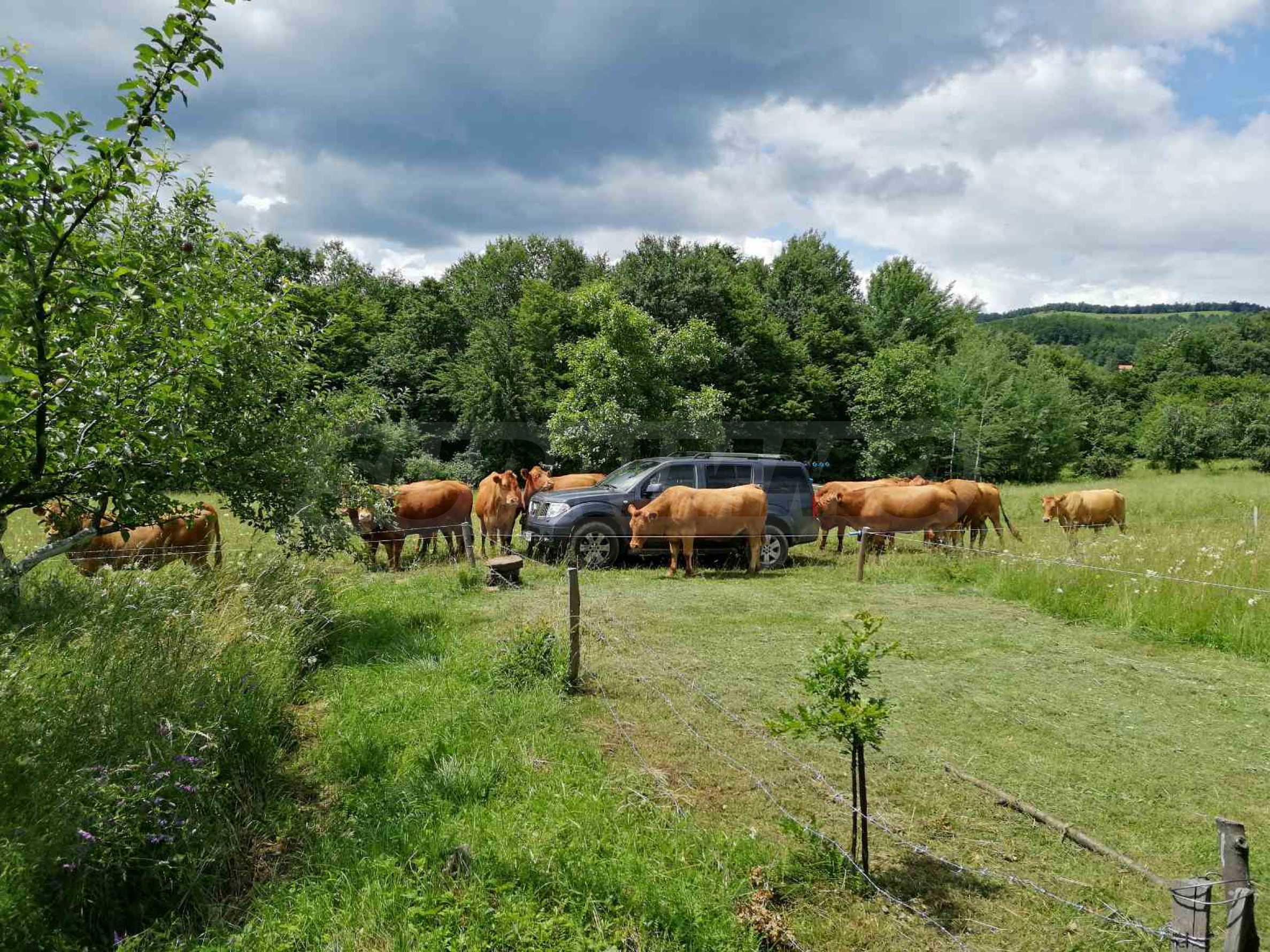 - Парцел 1: площ 11 389 кв.м. НТП За друг вид застрояване,вид територия земеделска, категория 4 заедно с голяма стара автентична двуетажна къща със застроена площ 160кв.м. Приземният етаж е от масивен каменен зид и се състои от три отделни помещения. Вторият етаж е изграден от греди и плет измазани с кал и слама, състои се от всекидневна и две стаи, отделно втора голяма стая и голяма тераса със спираща дъха гледка към Стара планина. Къщата е с уникална архитектура в автентичен за троянския балкан стил. За направата и са използвани огромни греди и камъни. На втори етаж има три стаи които са годни за обитаване, но като цяло къщата се нуждае от ремонт.