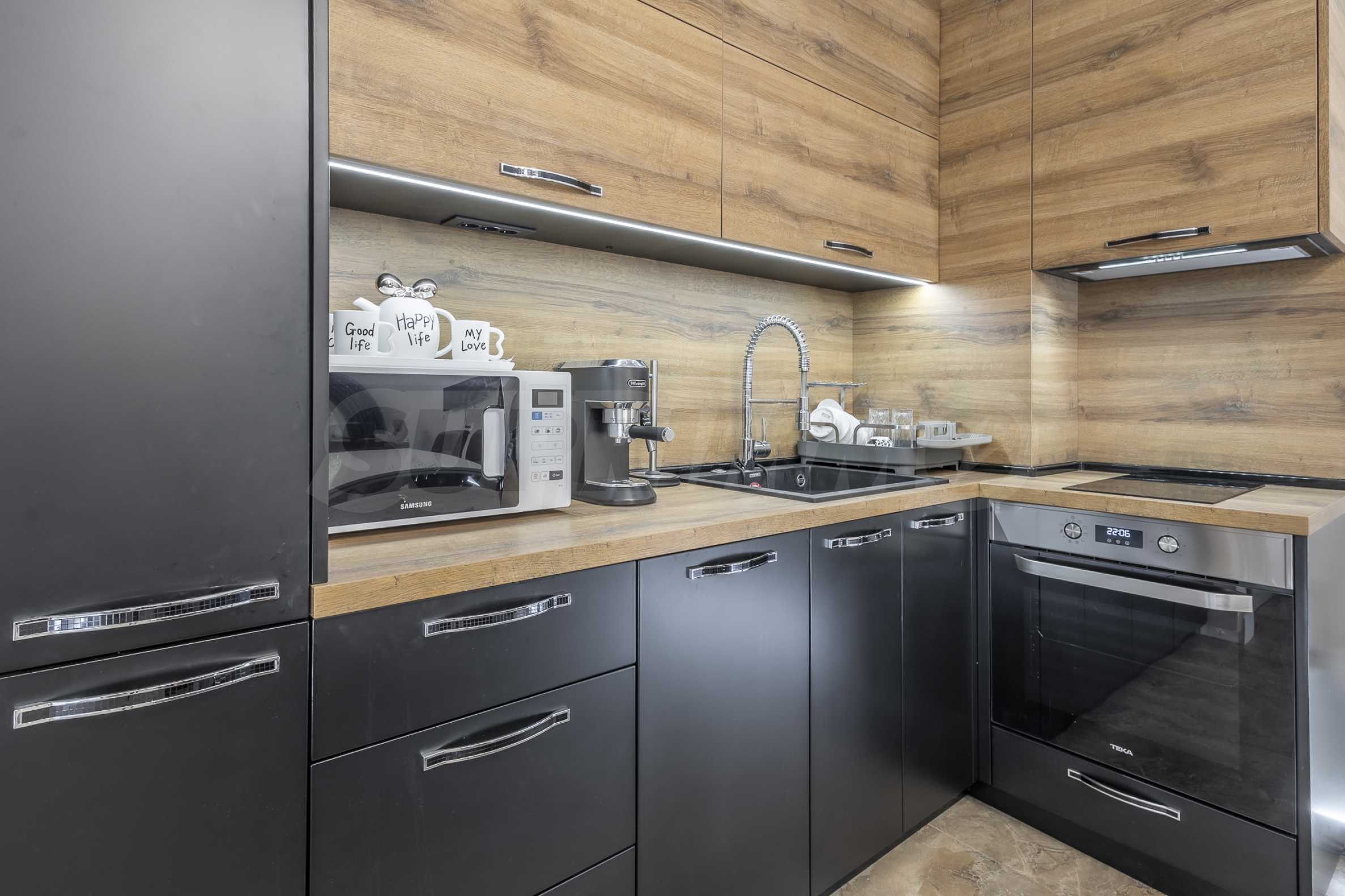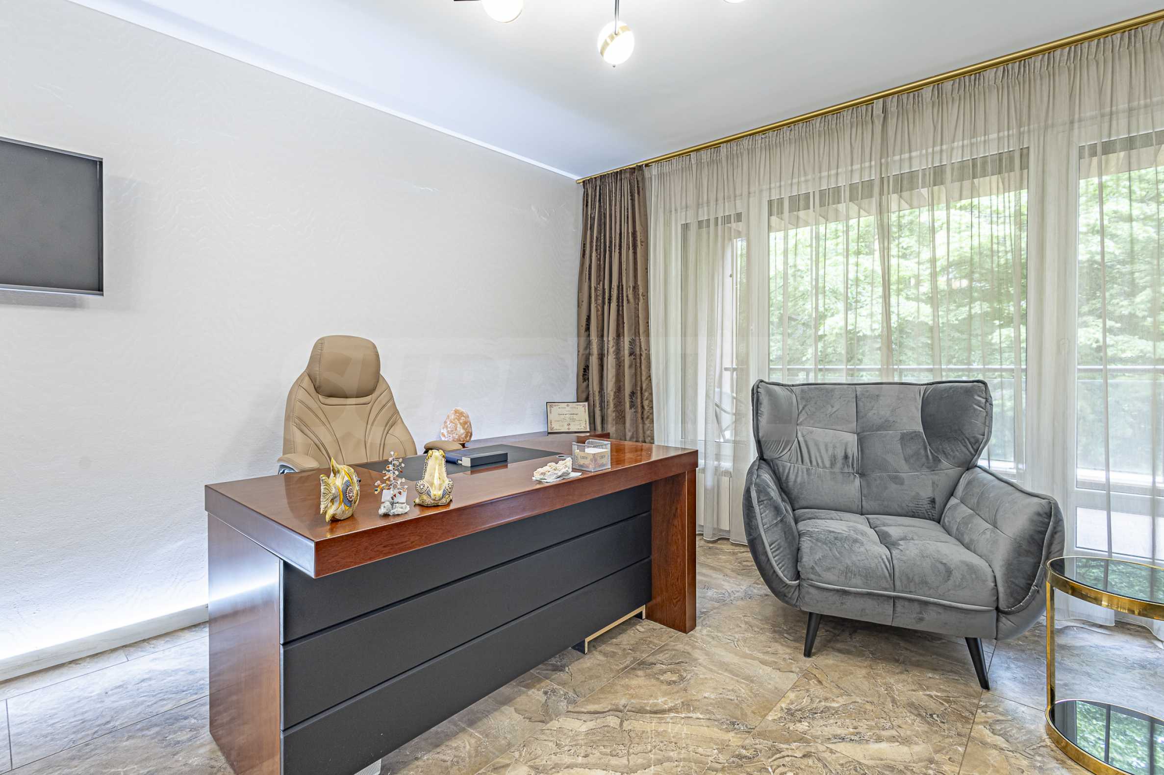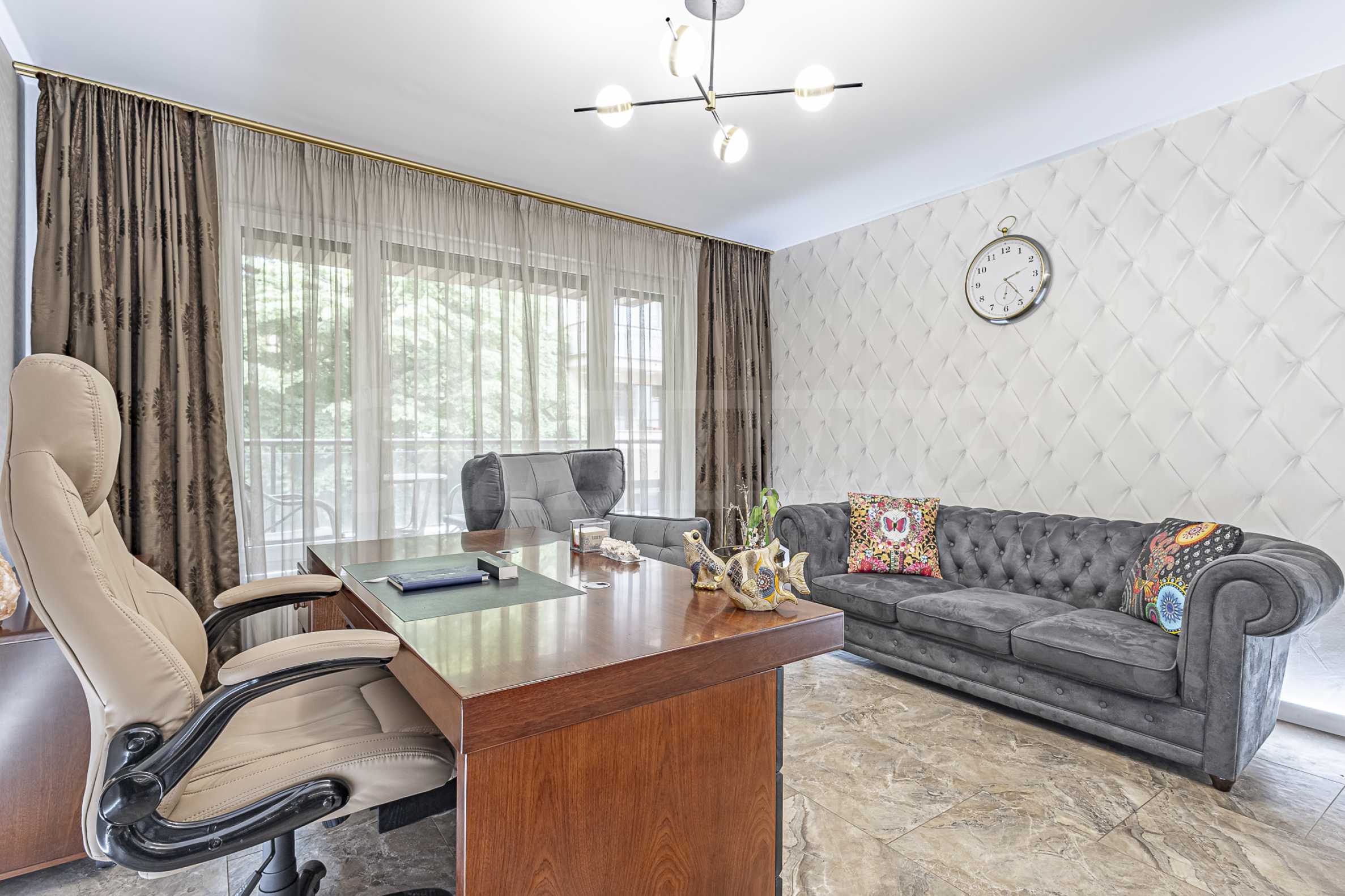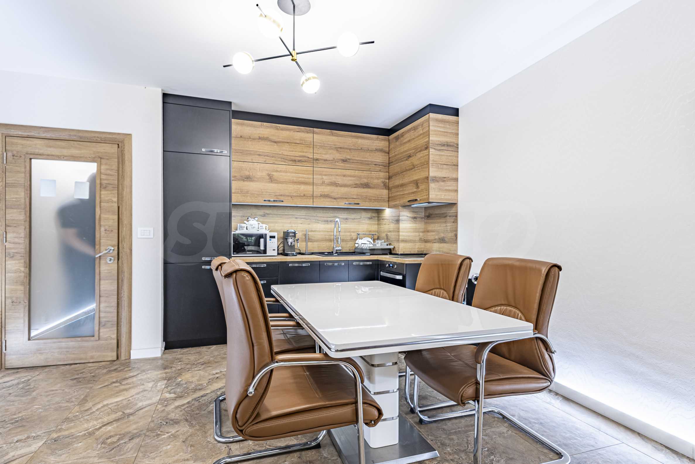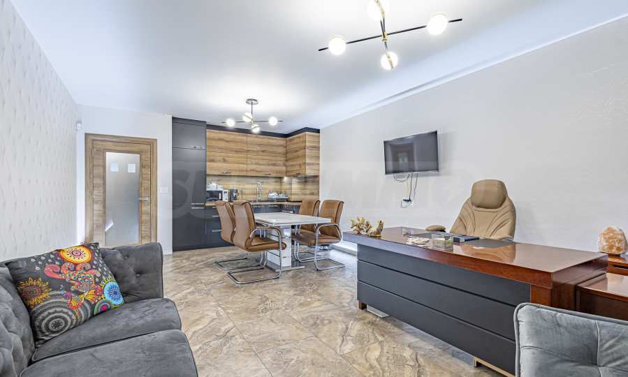 - помещение с представително бюро, маса с четири стола, диван и напълно обзаведена, модерна кухня;