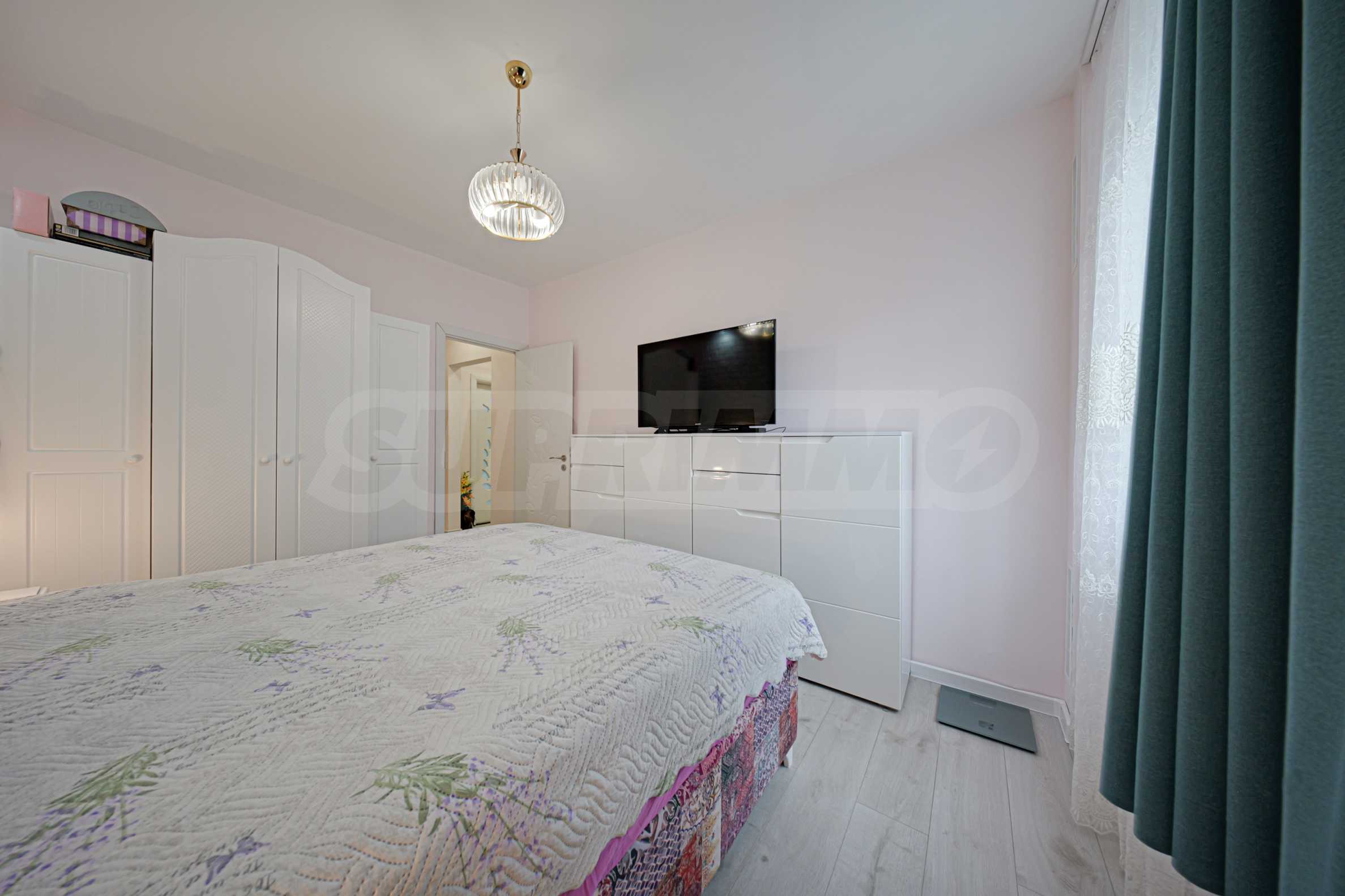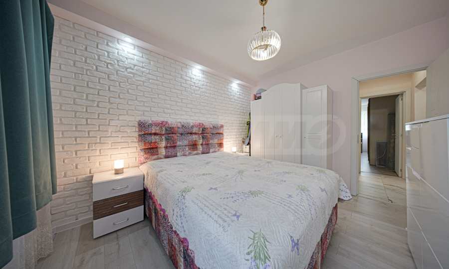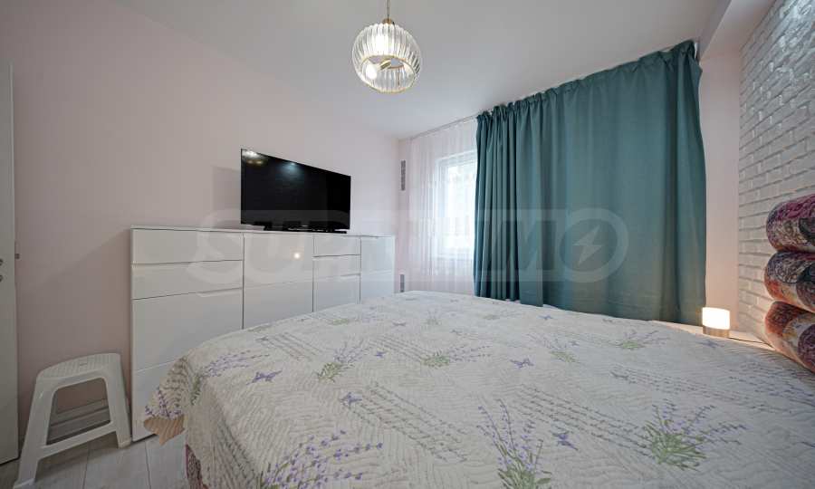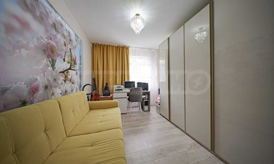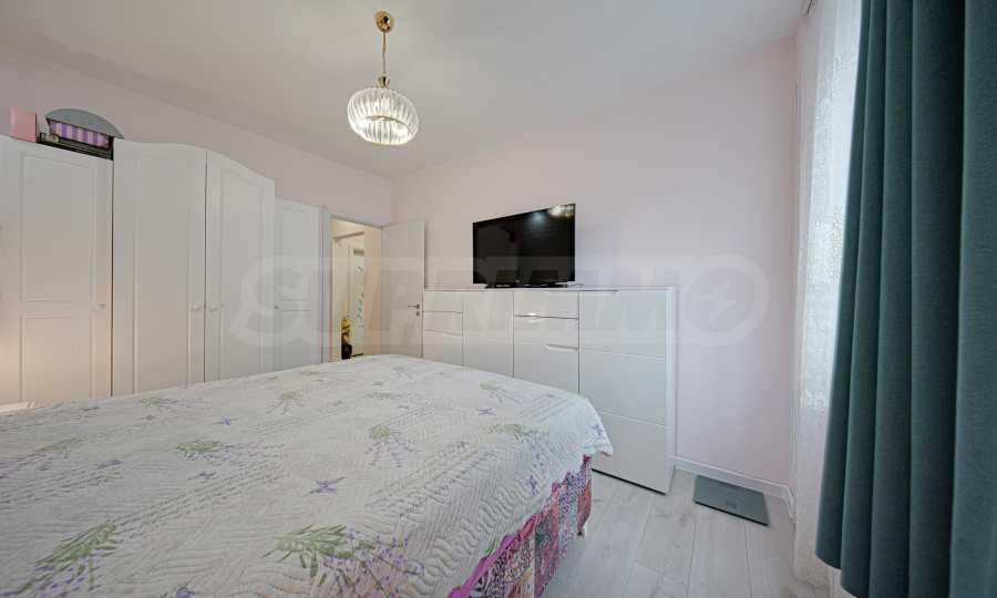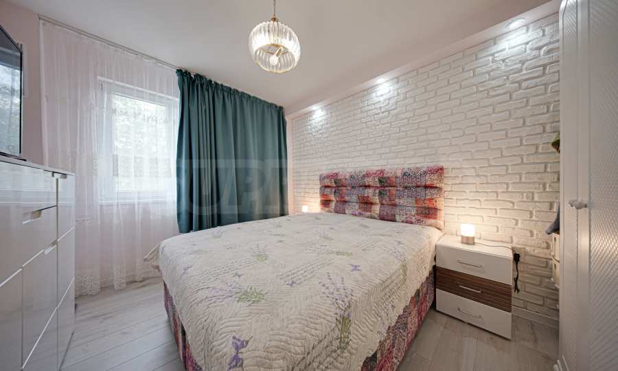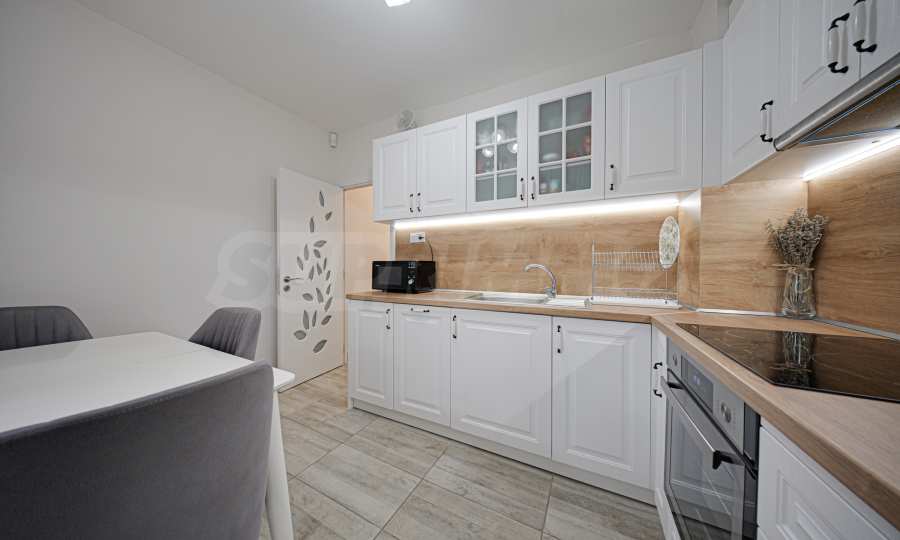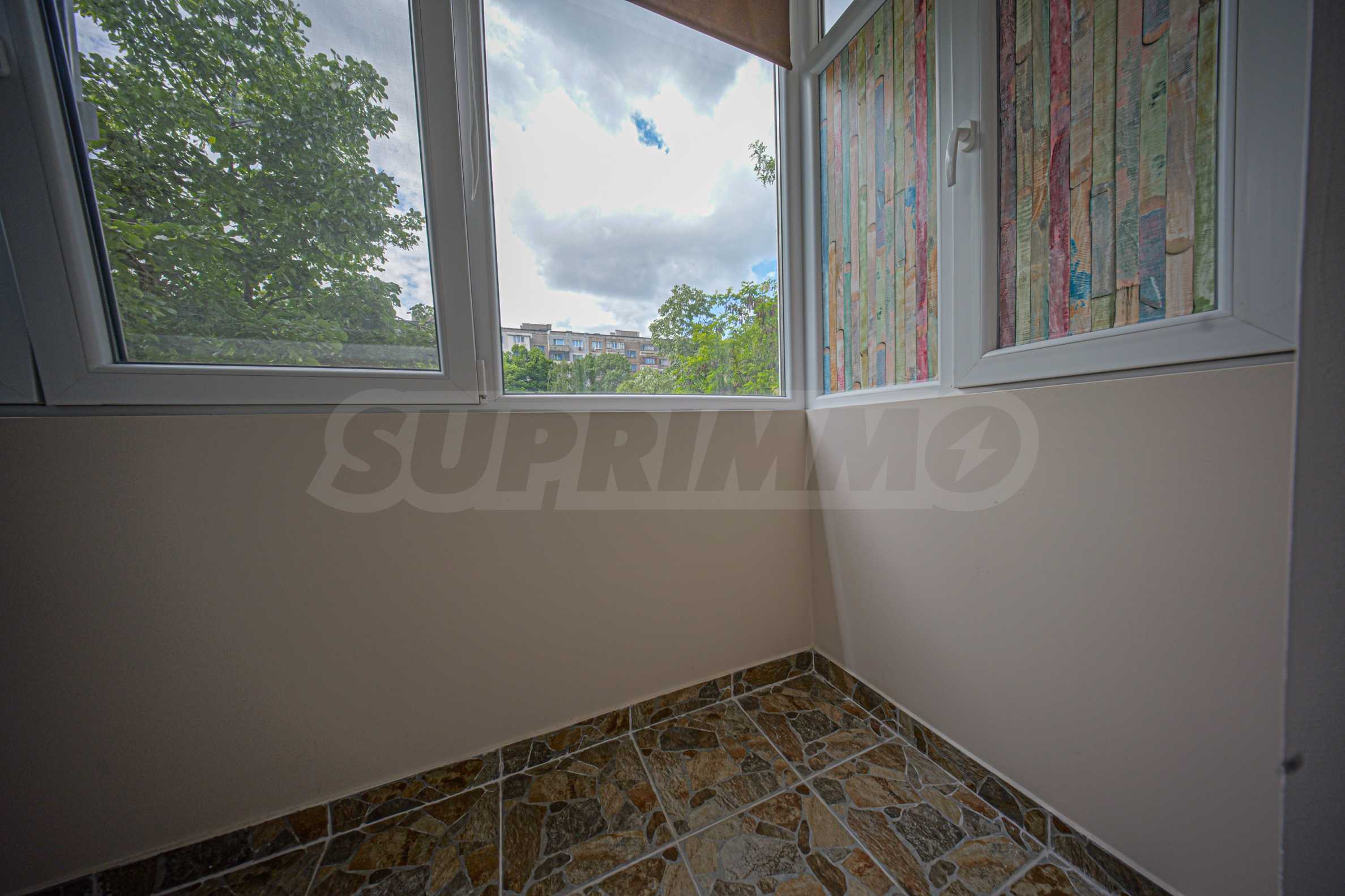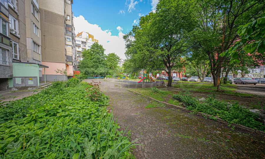 Апартаментът е основно ремонтиран с внимание към всеки детайл и е готов за нанасяне. Имотът е светъл, топъл и тих, обграден от много зеленина, с изложение юг/север.