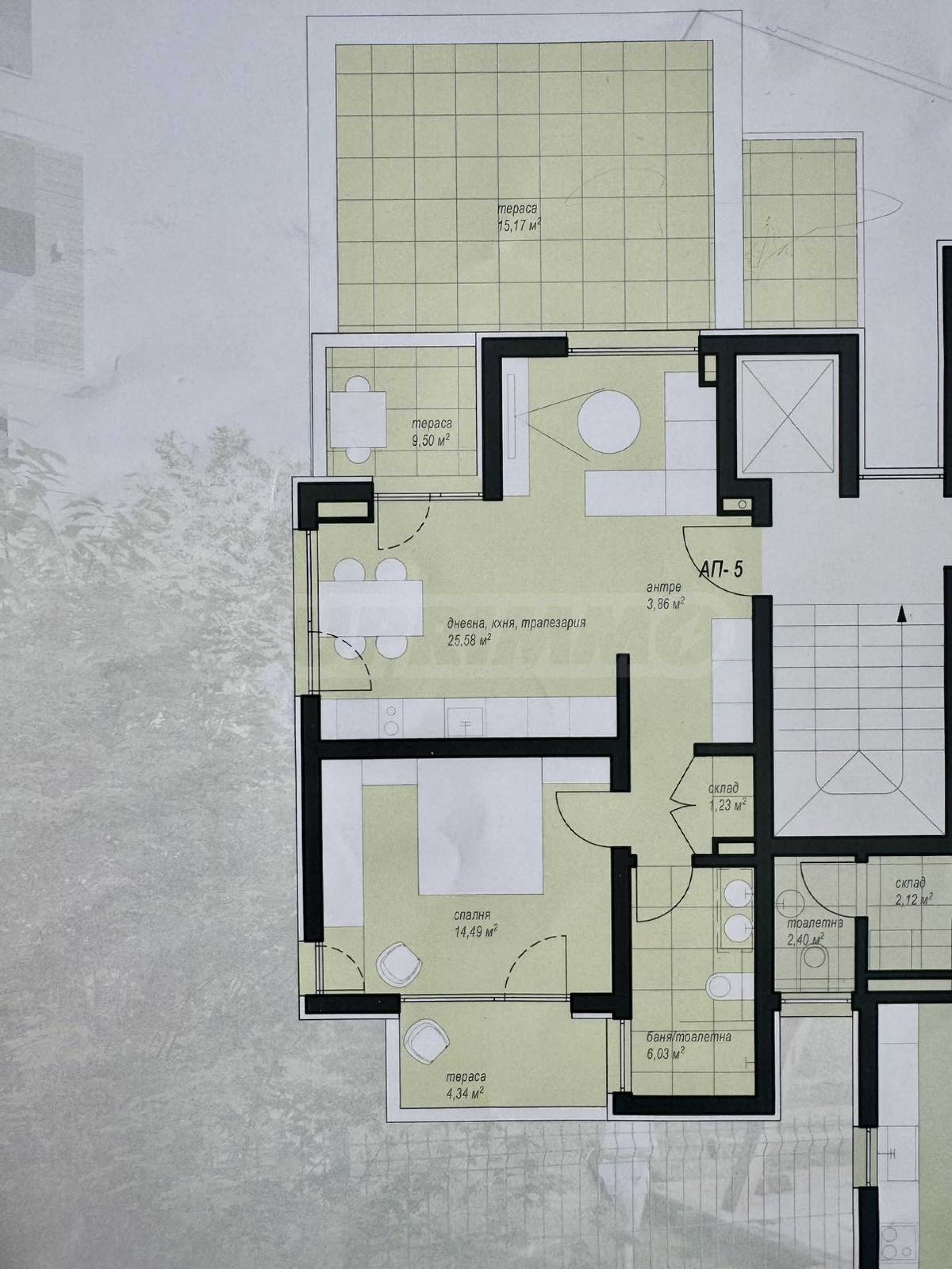 В цената на имота са включени 15 кв.м тераса и 17 кв.м мазе!