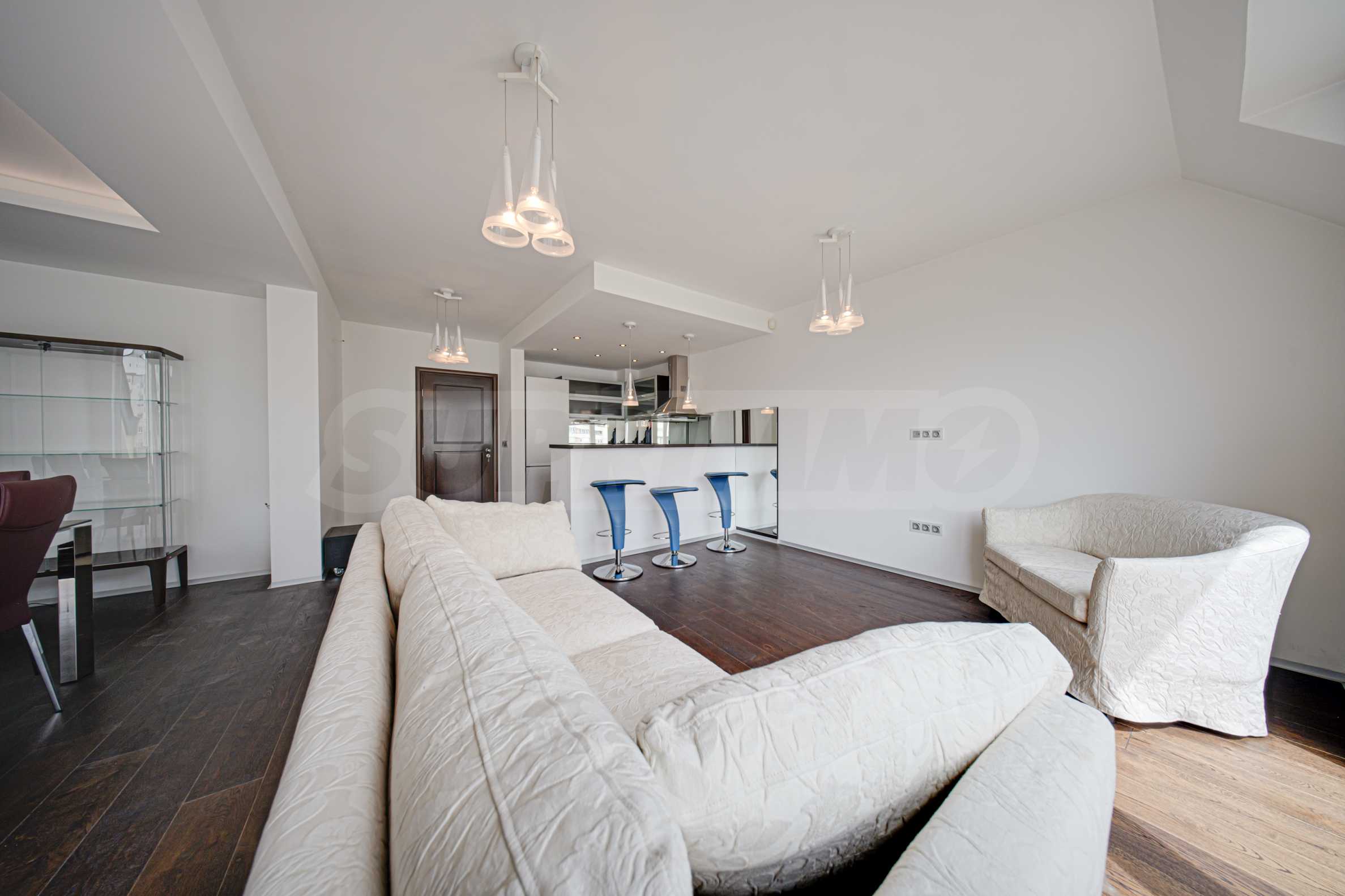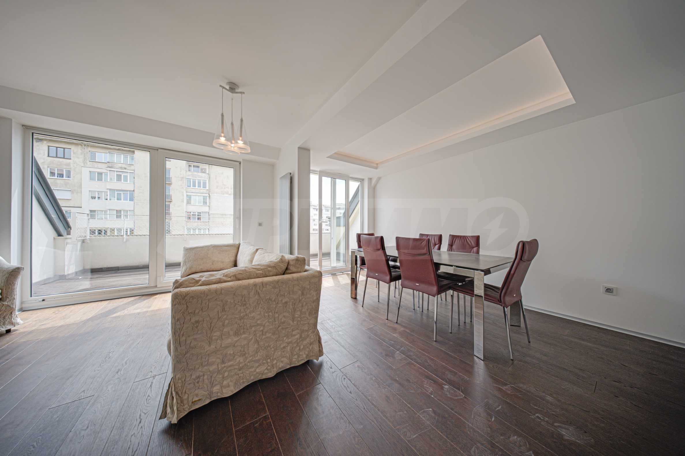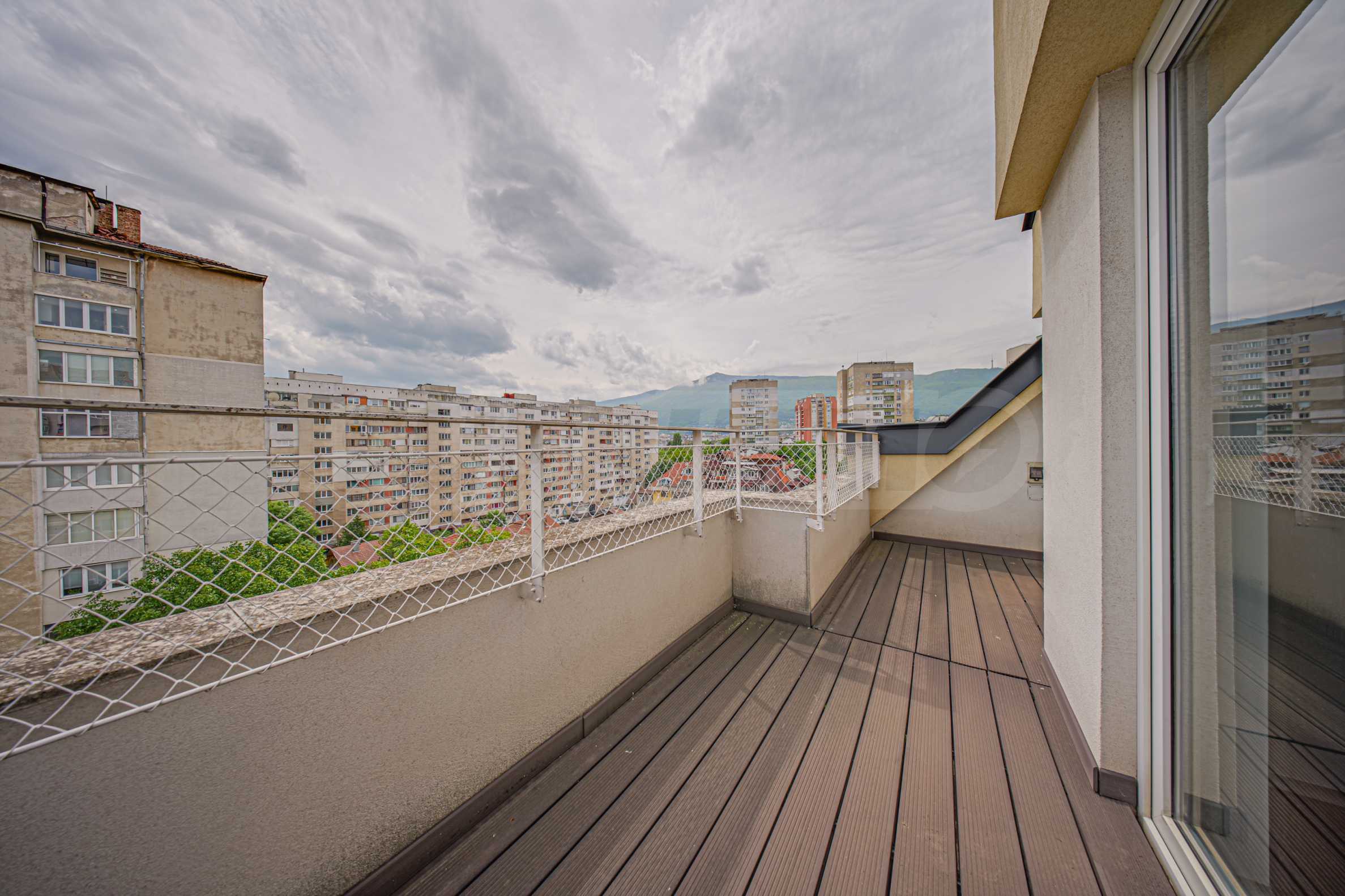 Жилището заема мансарден(седми) етаж от общо седем за сградата и е с застроена площ 86.40 кв.м. Разполага с мазе 5.47 кв.м. Изложението е изток/запад. От имота се открива гледка към Витоша и съседни сгради. Апартаментът е качествено завършен:.
