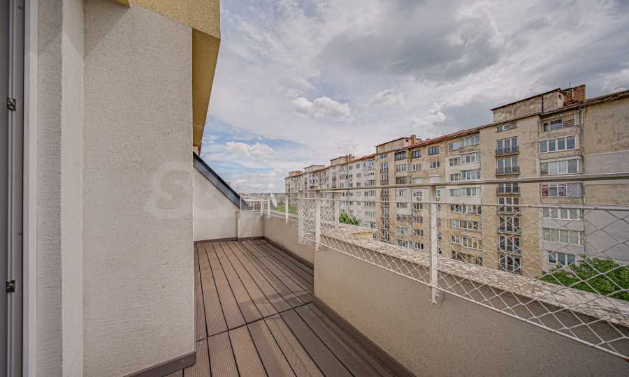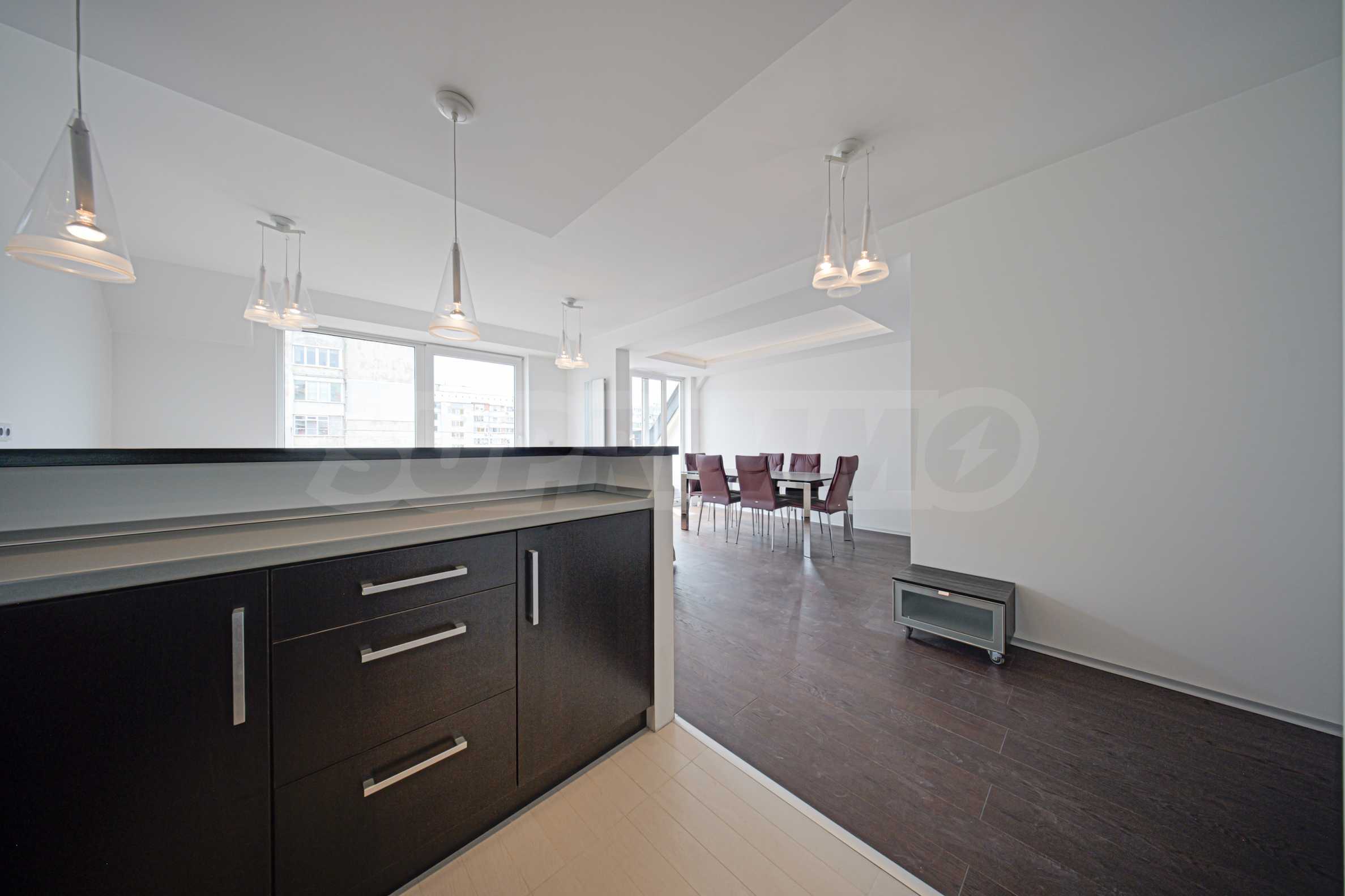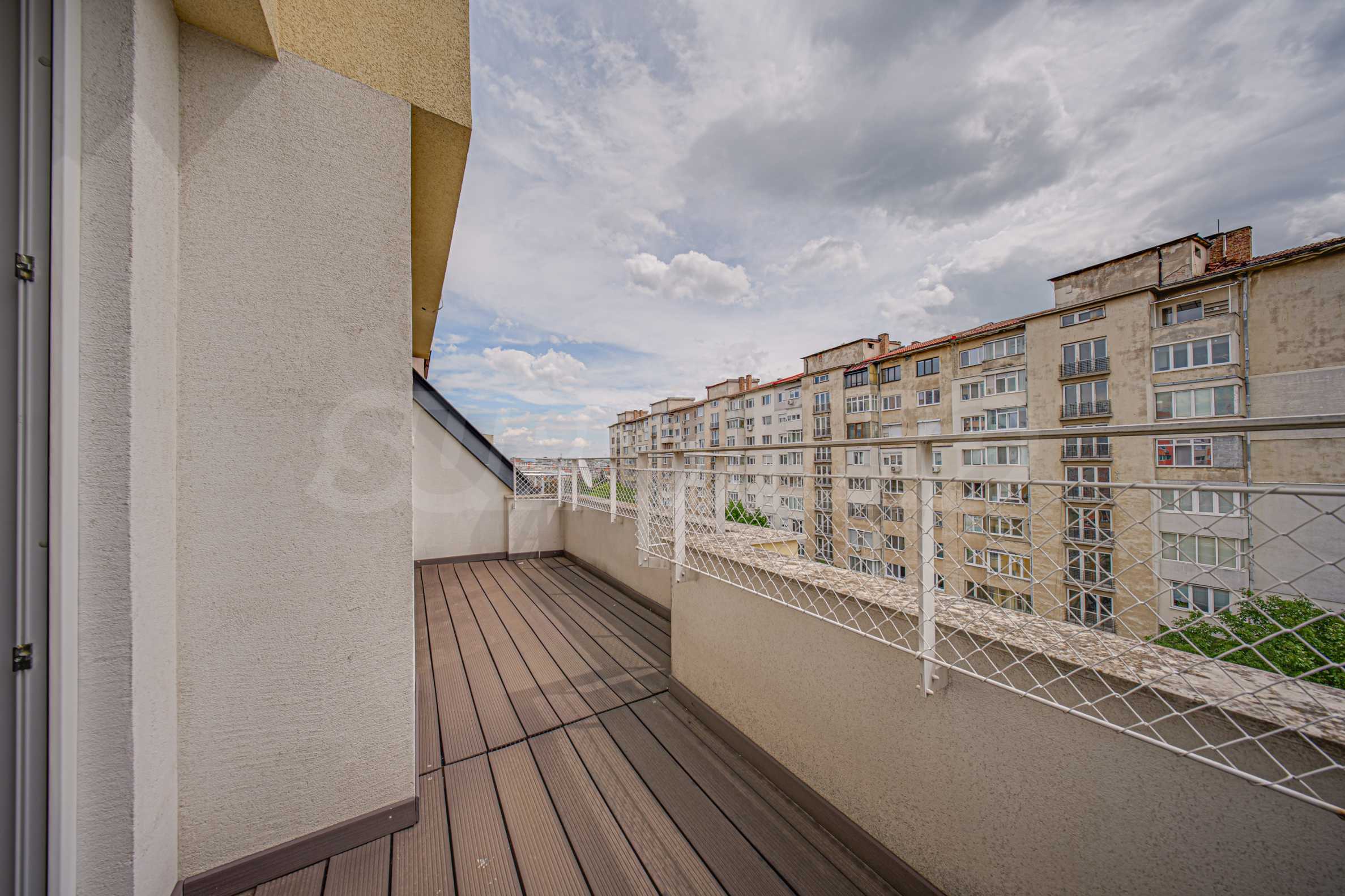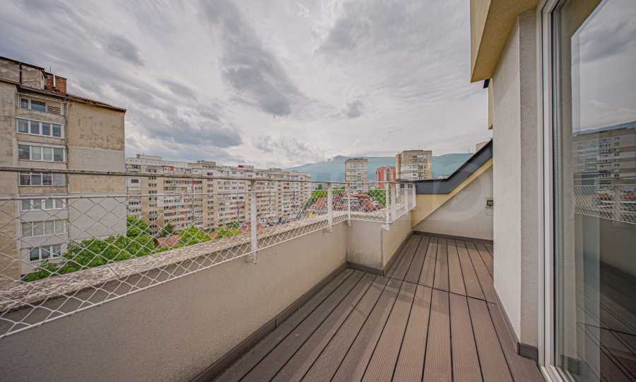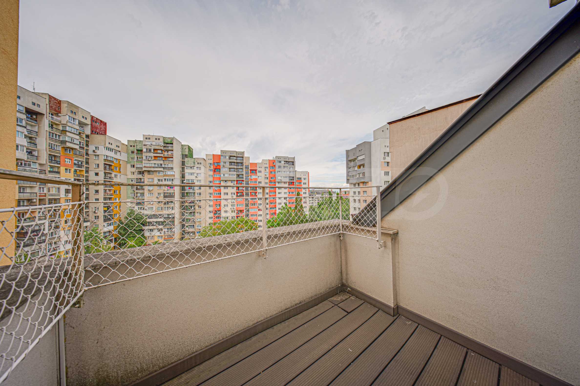 Жилището заема мансарден(седми) етаж от общо седем за сградата и е с застроена площ 86.40 кв.м. Разполага с мазе 5.47 кв.м. Изложението е изток/запад. От имота се открива гледка към Витоша и съседни сгради. Апартаментът е качествено завършен:.