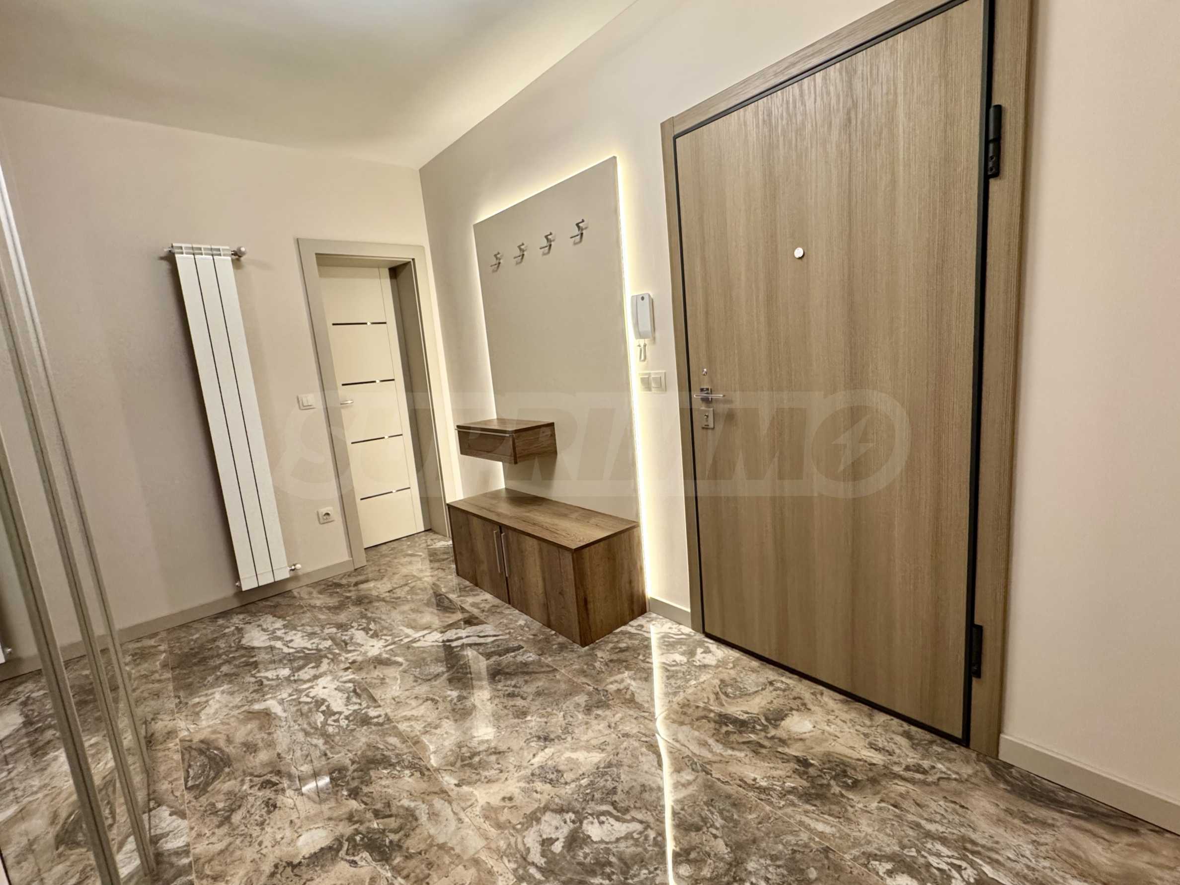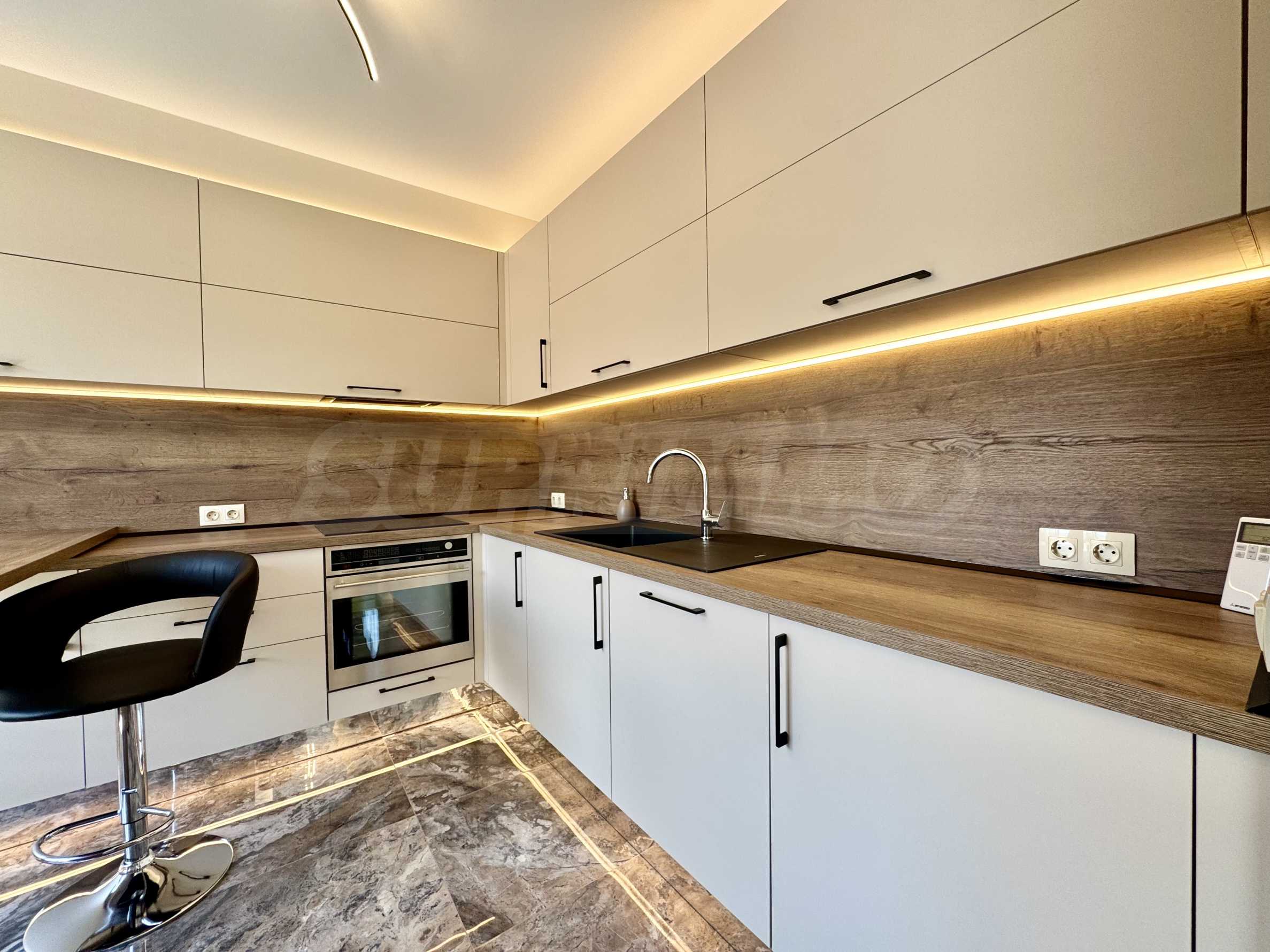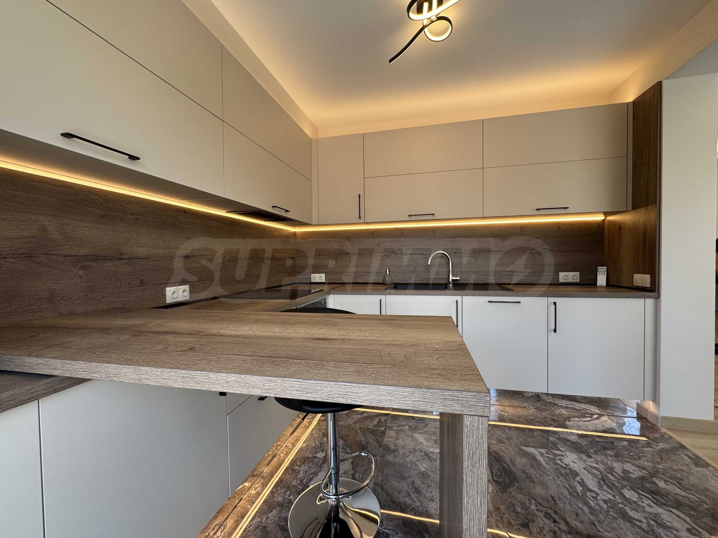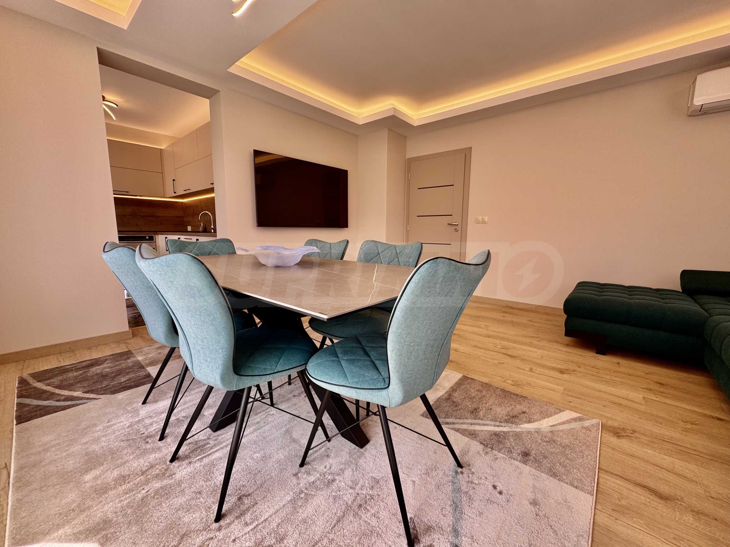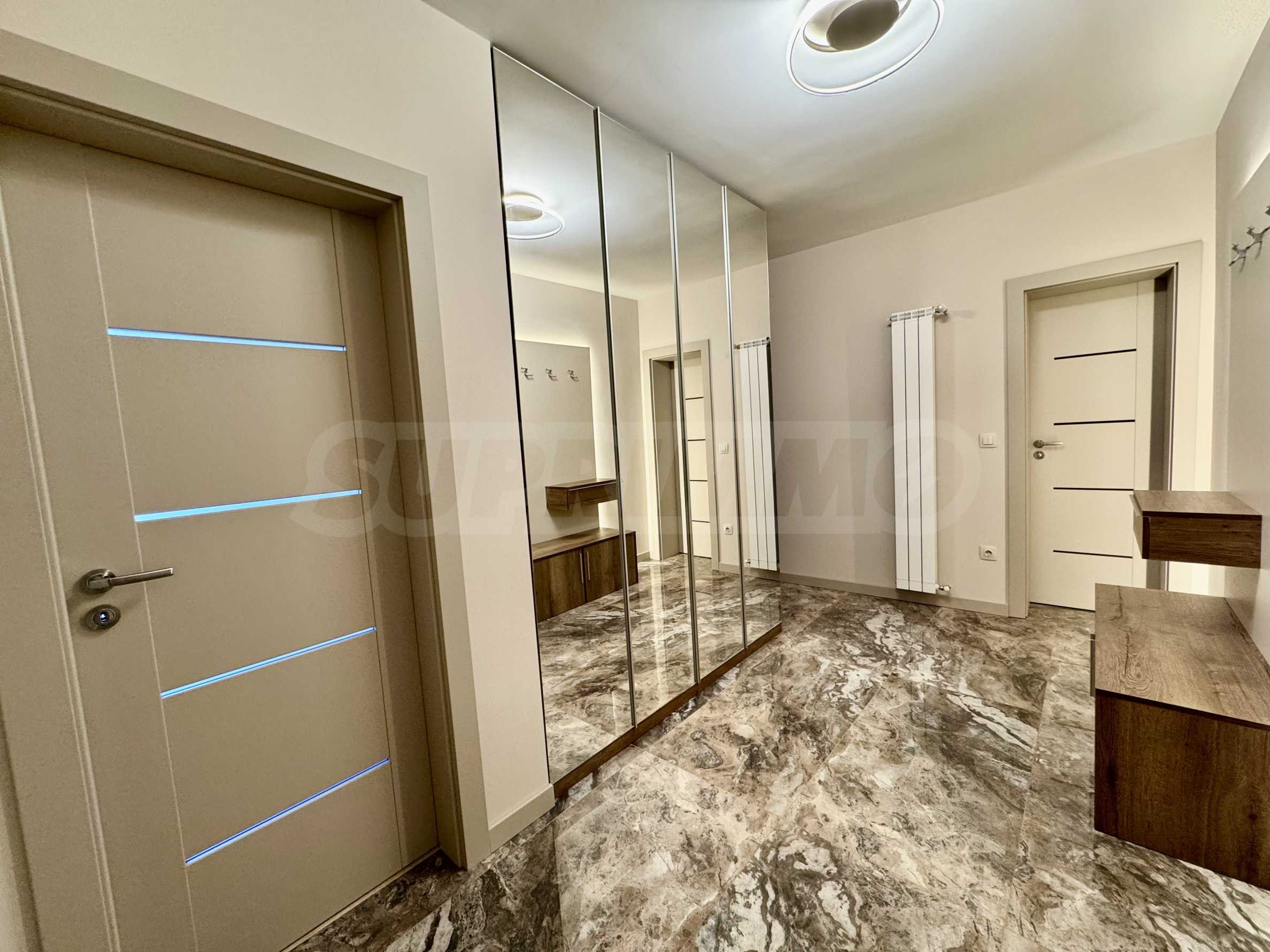 Имотът предлага елегантен и модерен интериор с висок клас материали, електроуреди и дизайнерско обзавеждане. Функционалното осветление завършва модерния облик на апартамента, като е старателно премислено във всяка една стая. Подовите настилки са от висококачествен гранитогрес и мокет. Отоплението е посредством климатици, газово котле и допълнителен електрически бойлер за топлата вода.