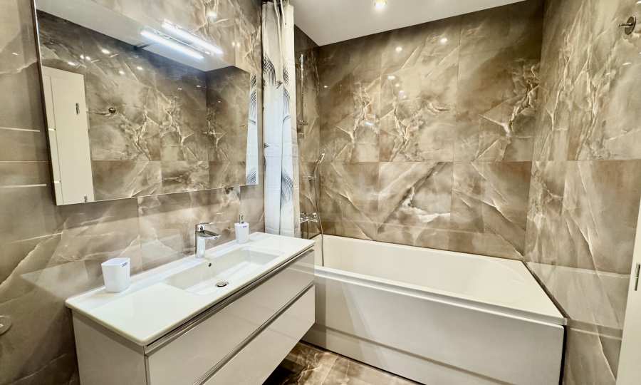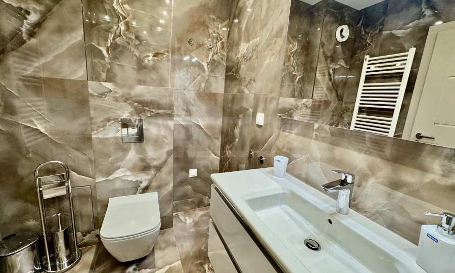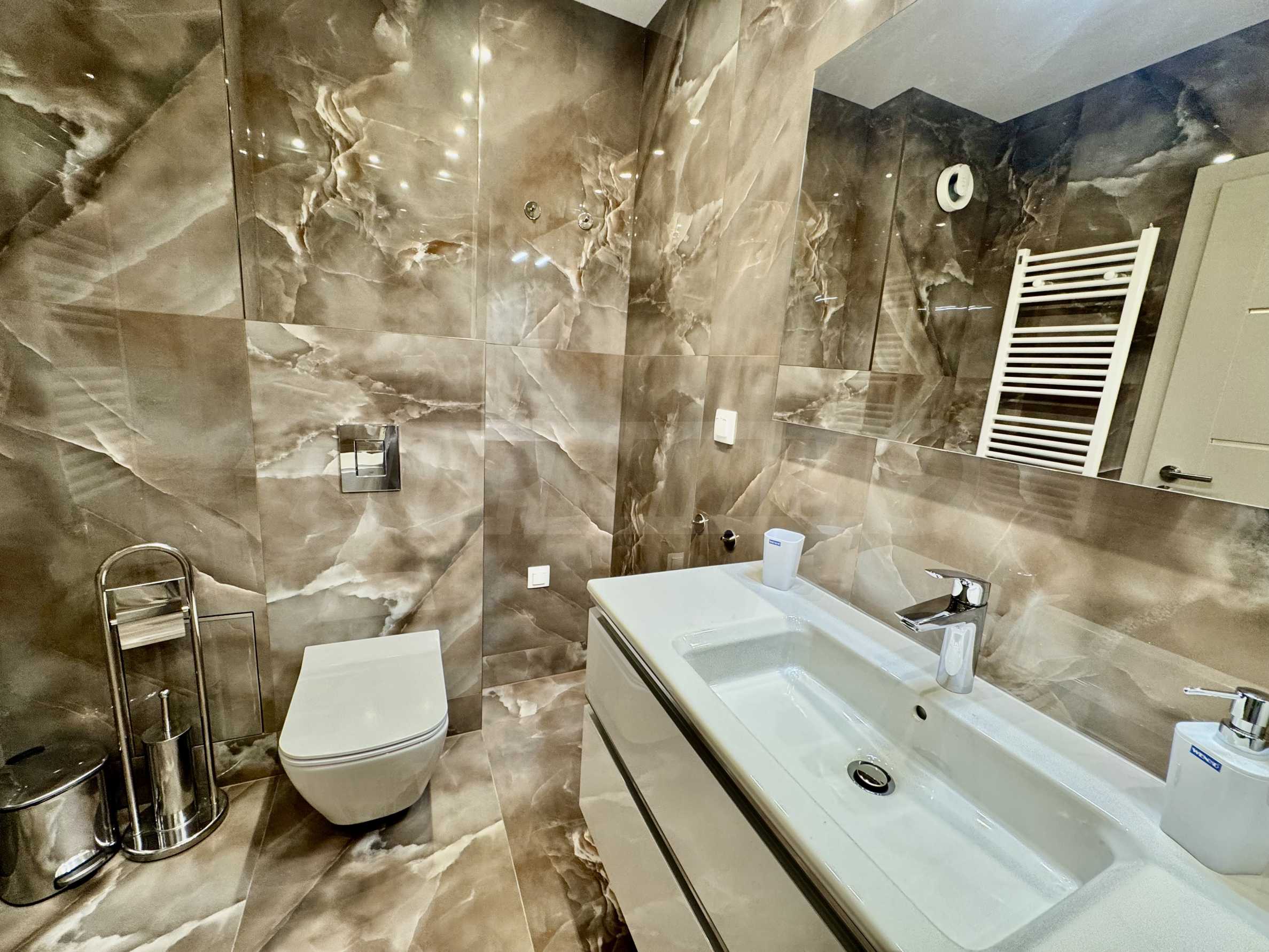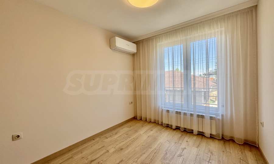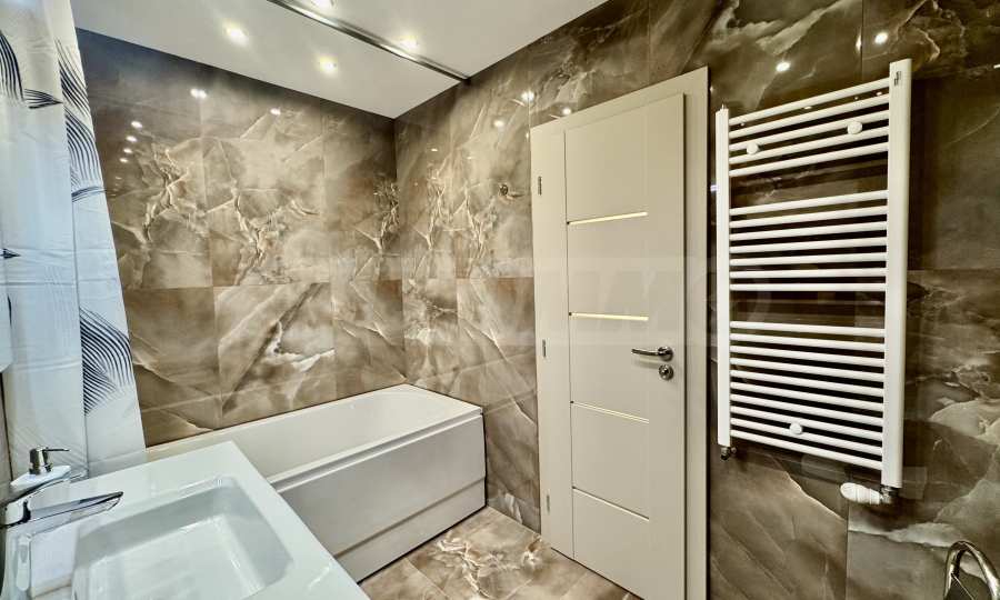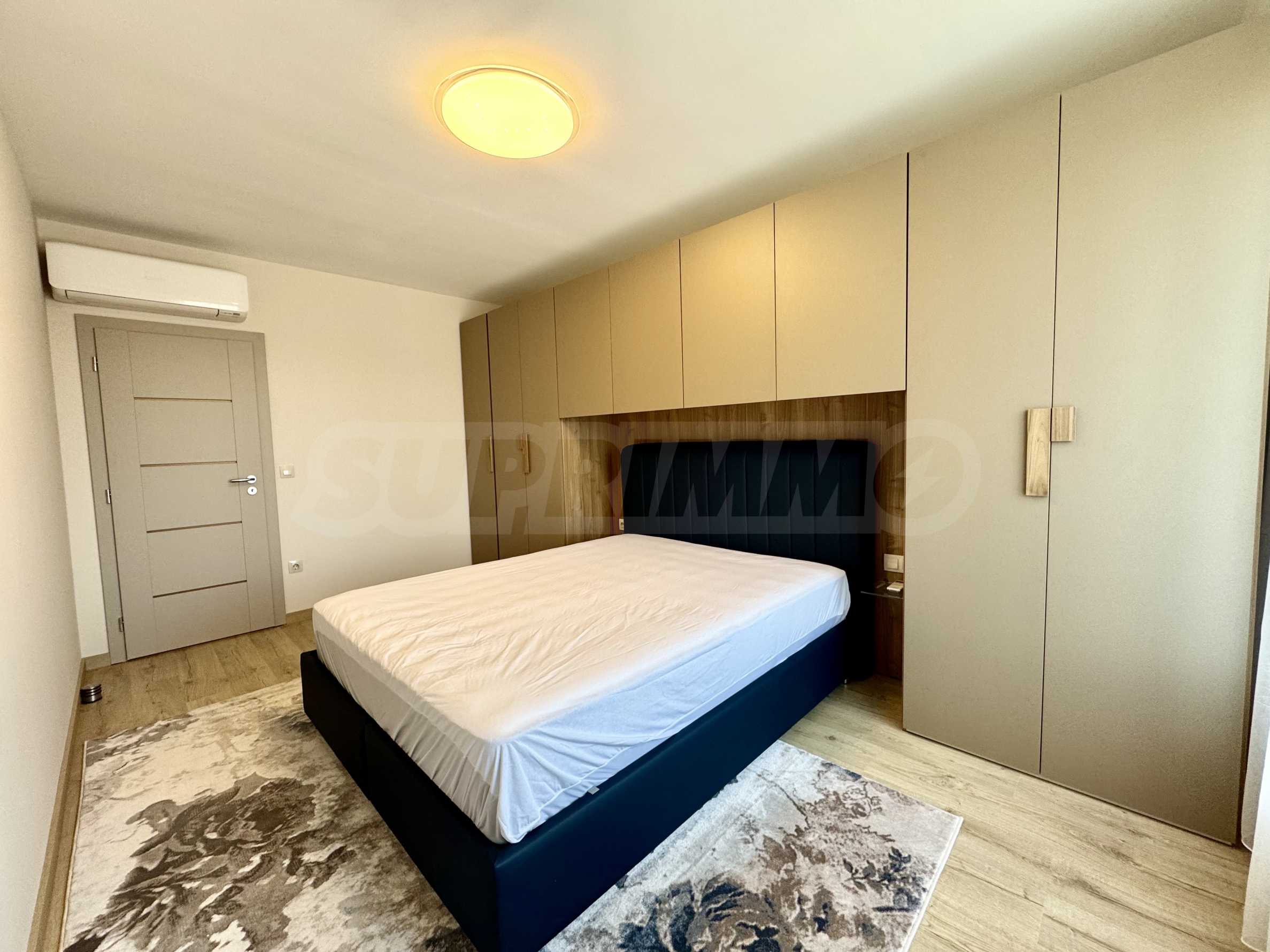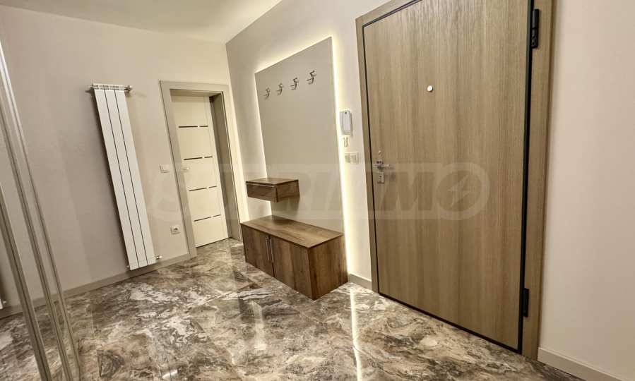 Имотът предлага елегантен и модерен интериор с висок клас материали, електроуреди и дизайнерско обзавеждане. Функционалното осветление завършва модерния облик на апартамента, като е старателно премислено във всяка една стая. Подовите настилки са от висококачествен гранитогрес и мокет. Отоплението е посредством климатици, газово котле и допълнителен електрически бойлер за топлата вода.