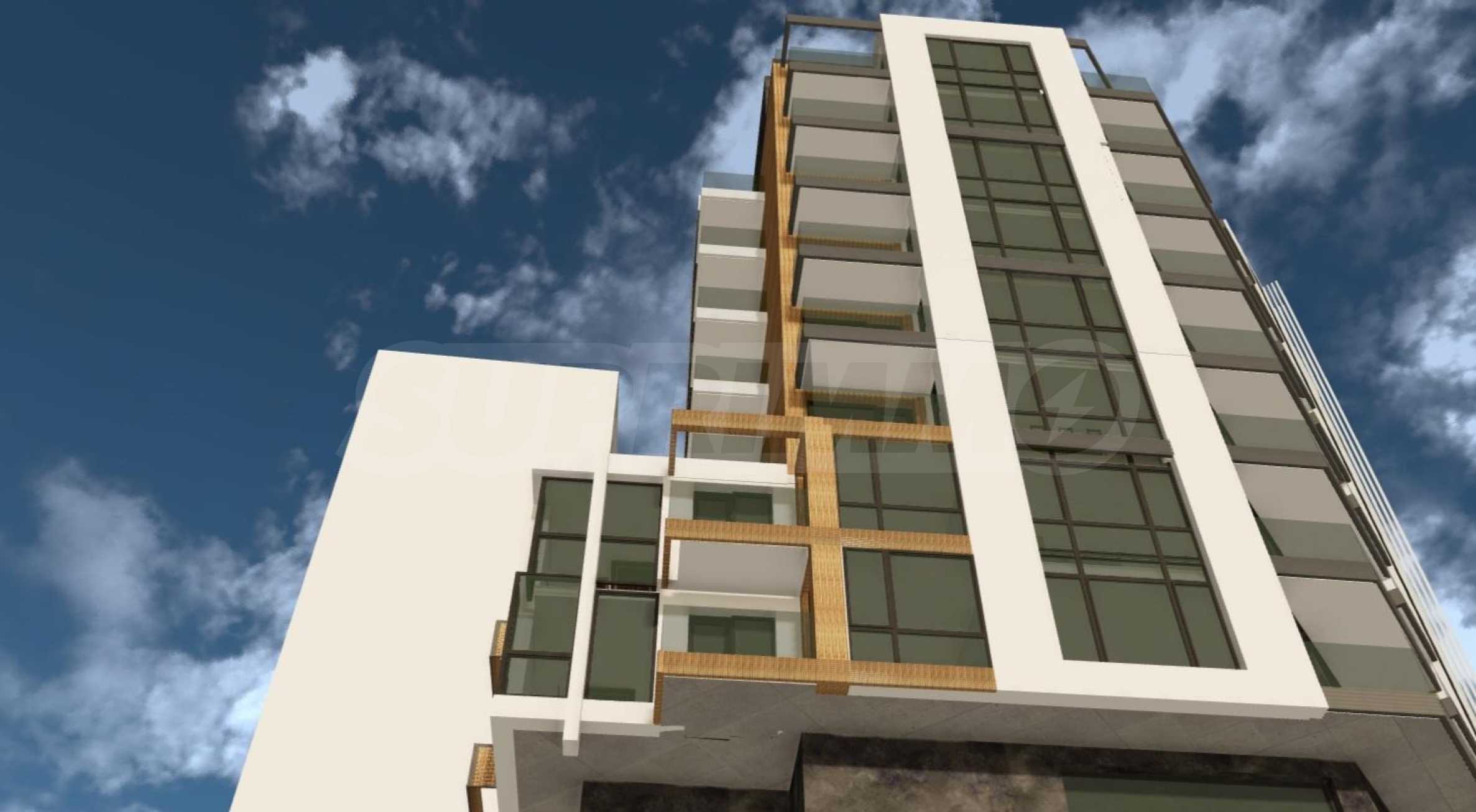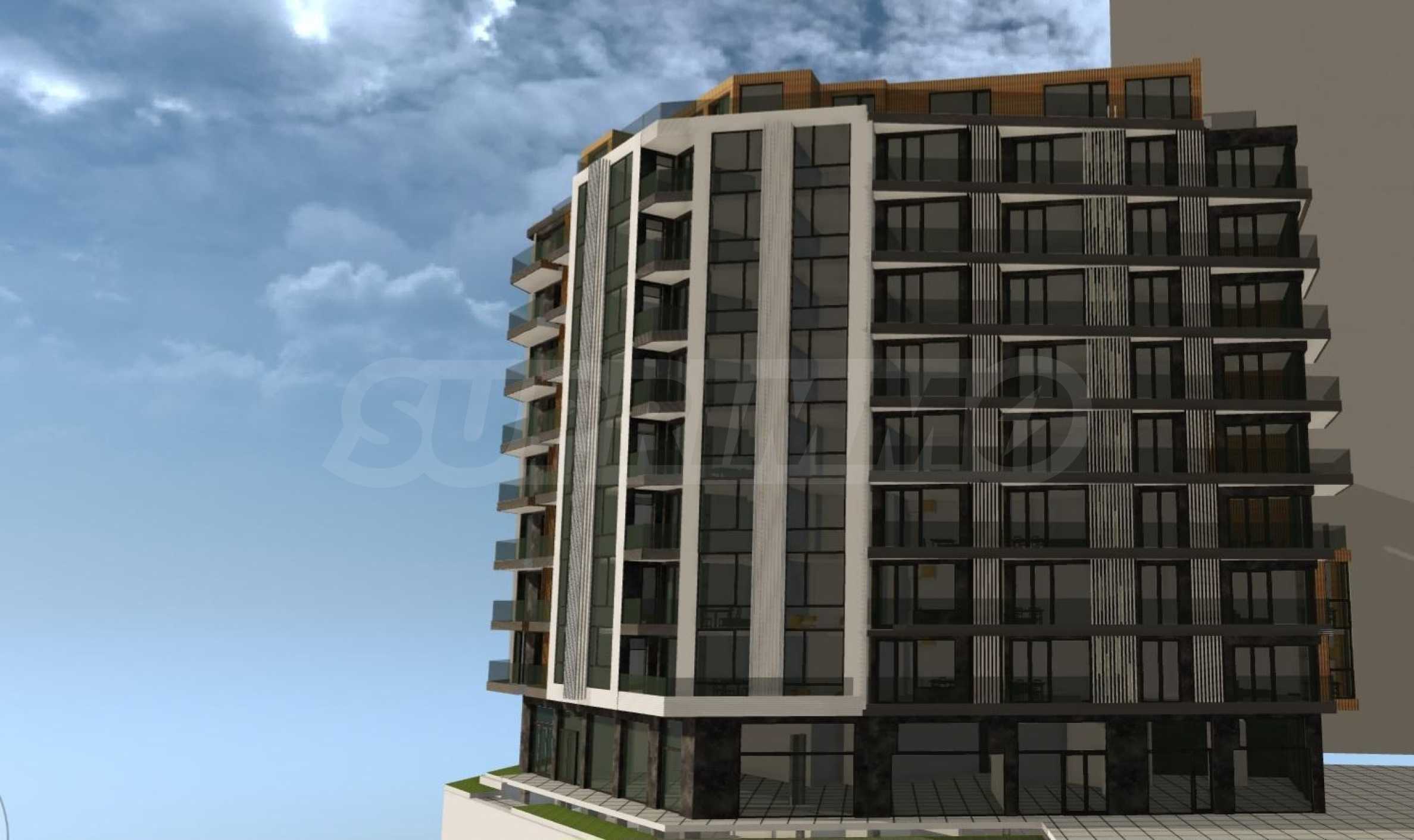 Сградата е с модерна архитектура, проектирана на 10 етажа с два асансьора, двустайни и тристайни жилища с площ от 69,34 кв.м, до 136,39 кв.м, както и търговски площи - офиси и магазини, две нива с подземни гаражи с рампа и хидравлична платформа.