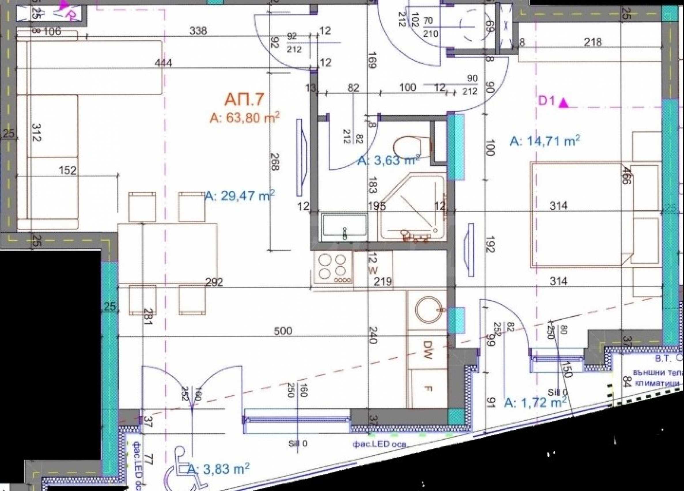 Представяме за продажба двустаен апартамент в нова, многофункционална сграда с жилищни и търговски обекти, в кв. "Братя Миладинови", Бургас.