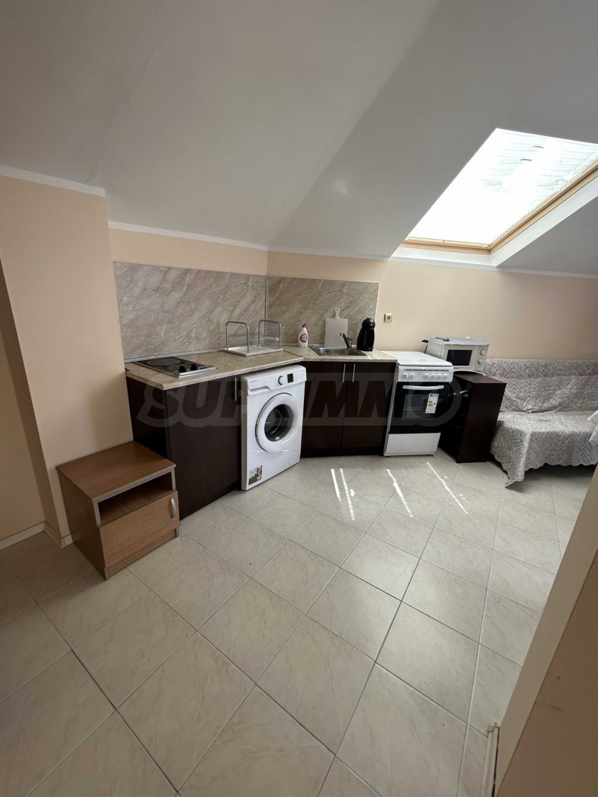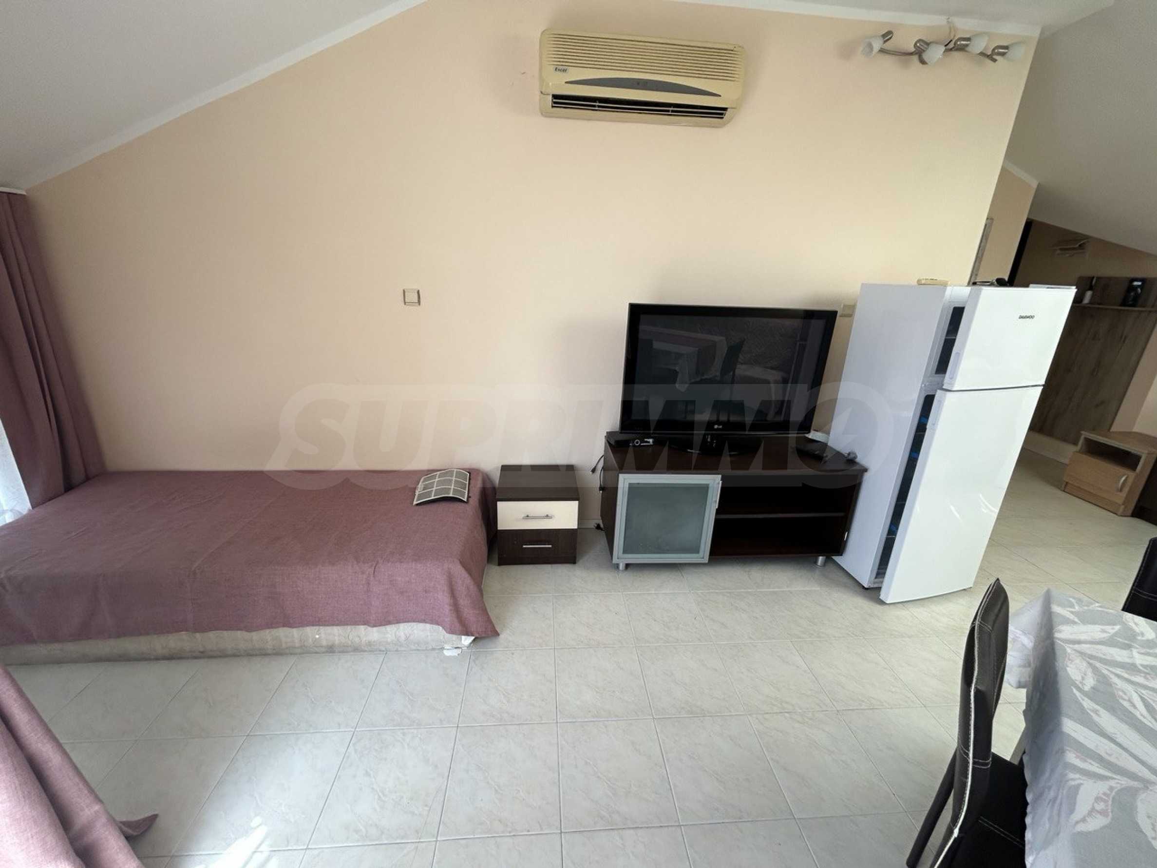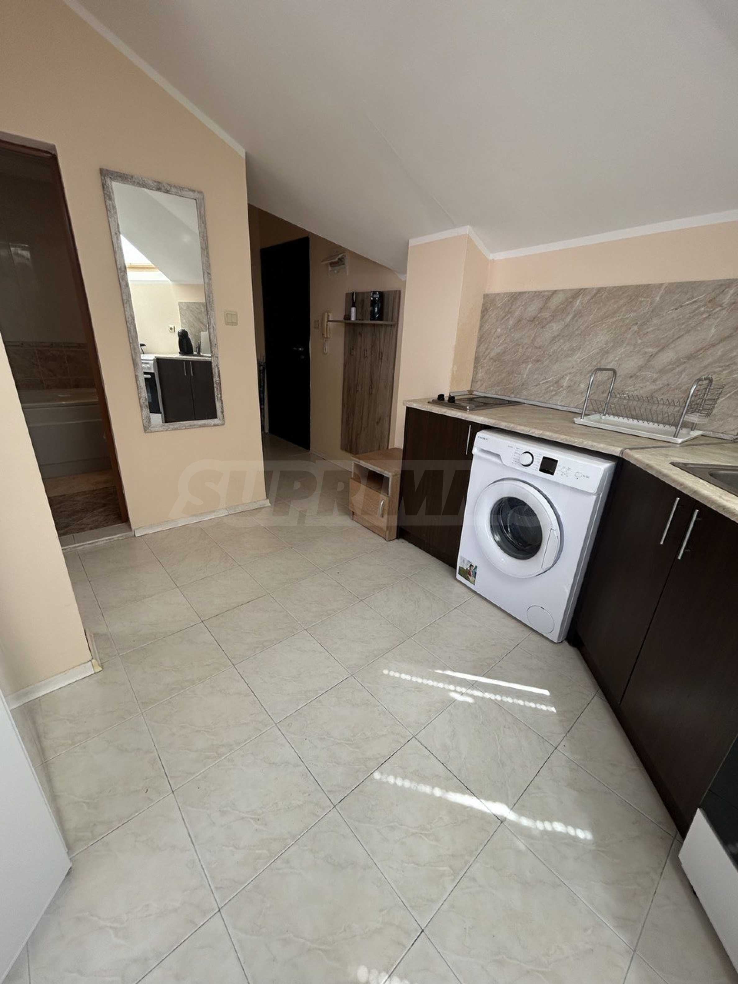 Жилището се предлага напълно обзаведено и оборудвано с пералня, хладилник, телевизор, два климатика, микровълнова, баня с вана. Подходящо е както за лично ползване, така и за отдаване под наем.