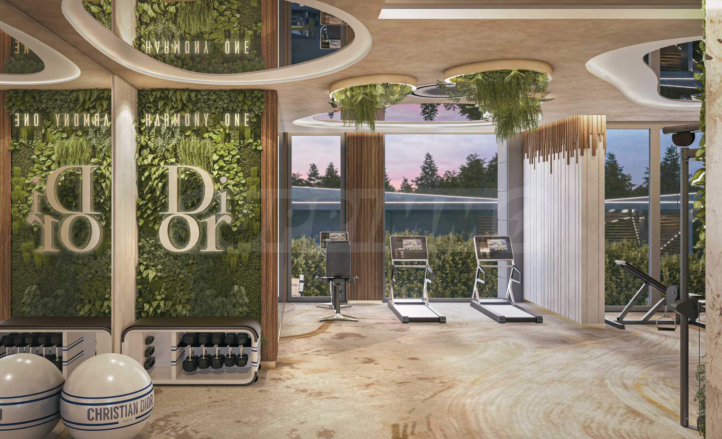 • Фитнес център с дизайн на Christian Dior и оборудване от последно поколение Technogym, достъпен безплатно за всички обитатели;