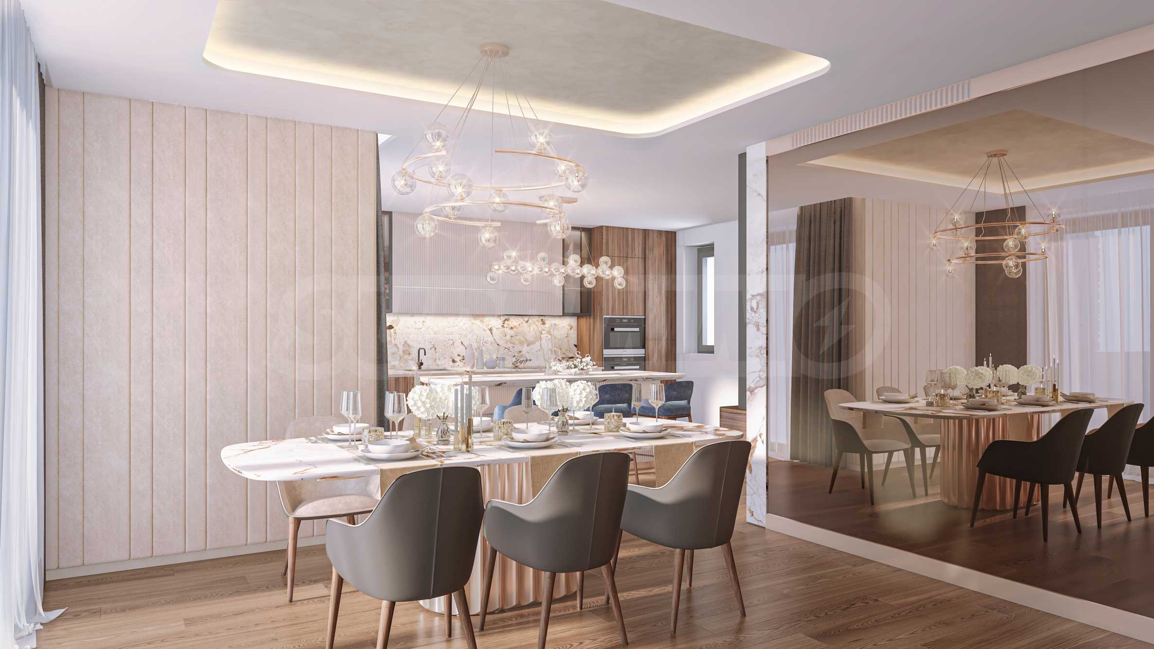 Сградата е изпълнена с най-висок клас строителни материали и дизайнерски решения: