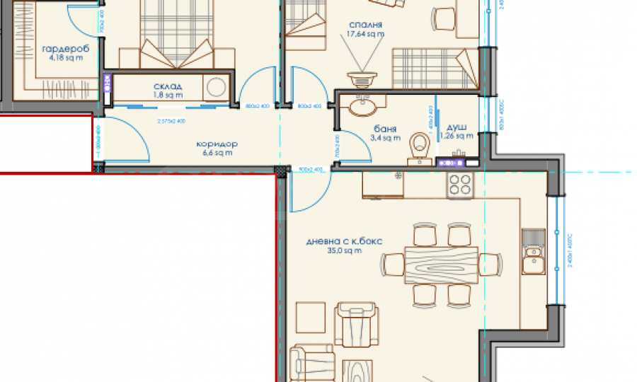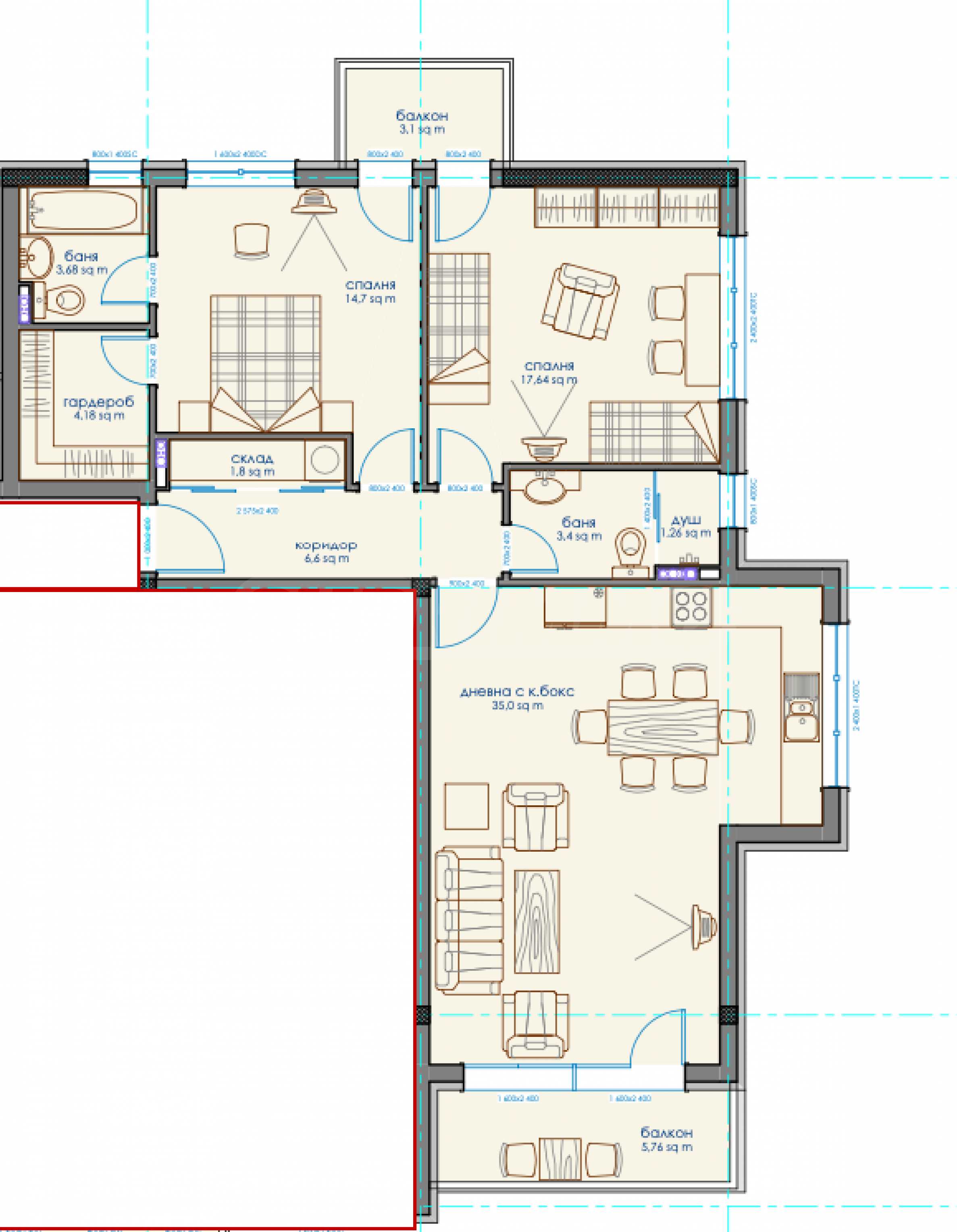 • просторна дневна с кухня и собствен балкон.