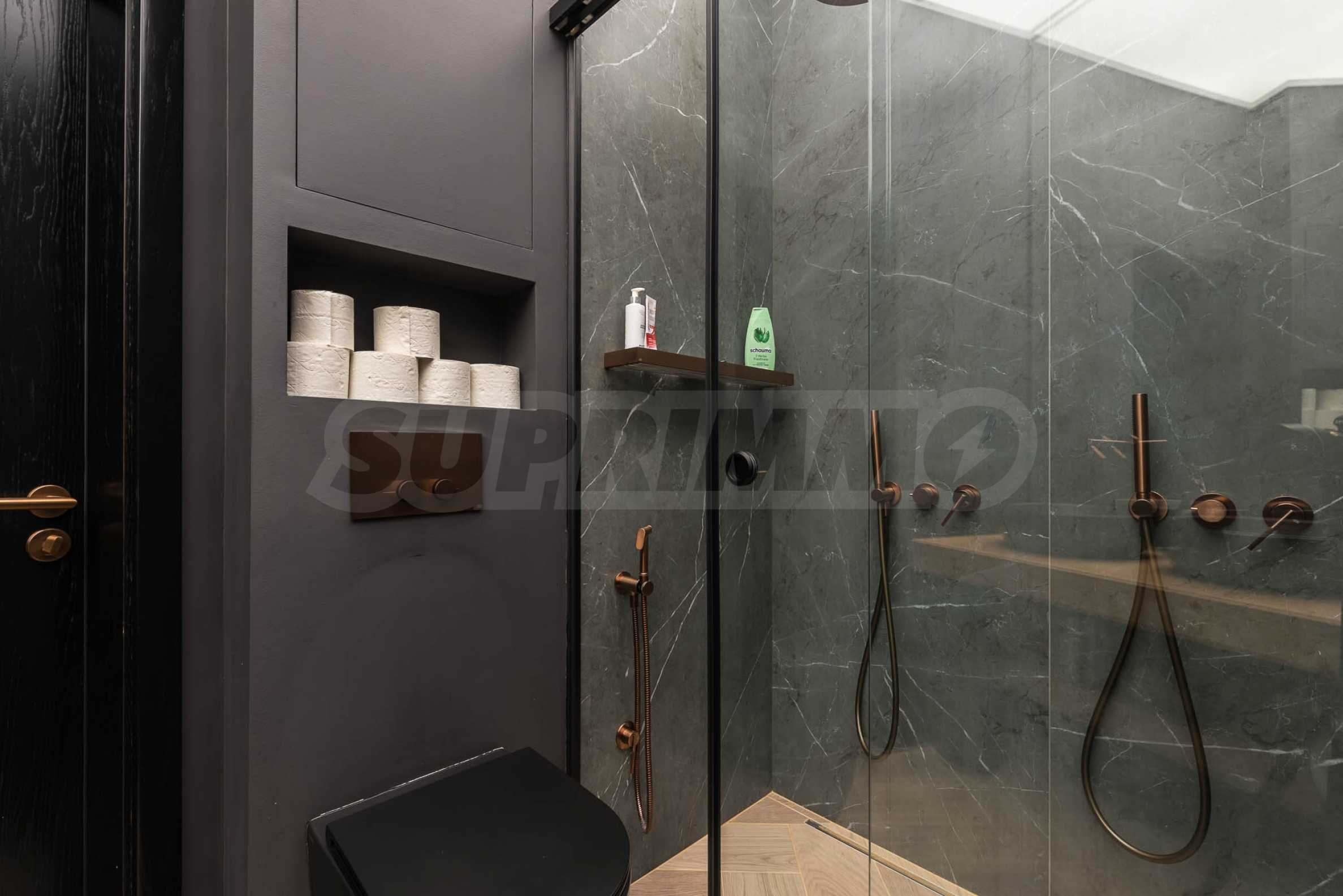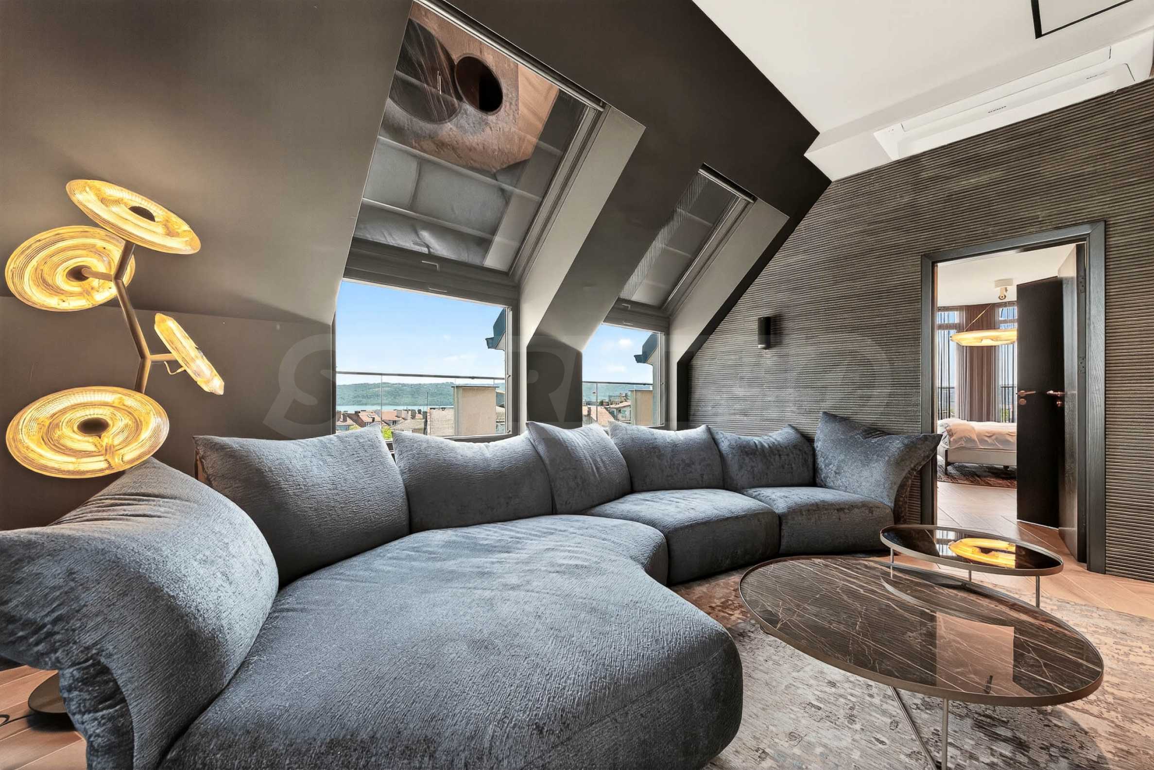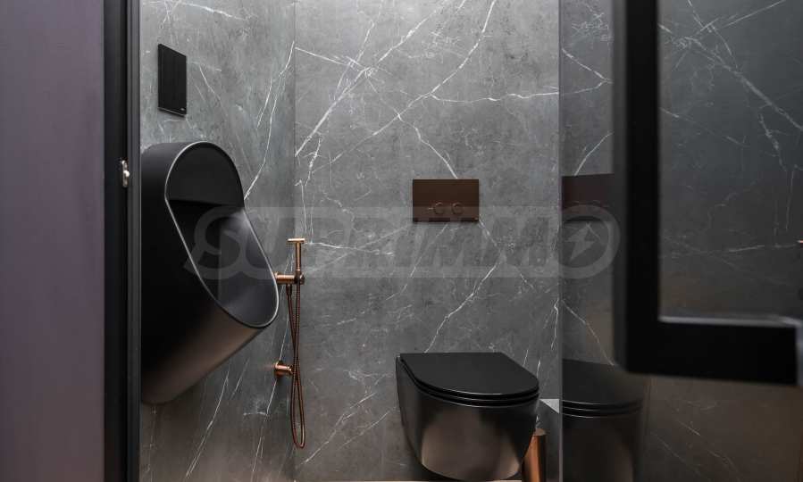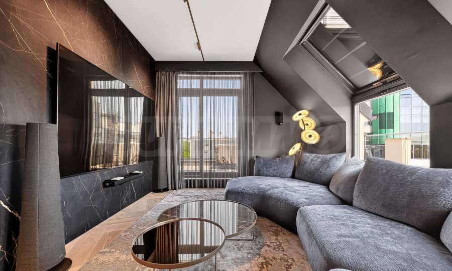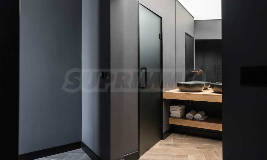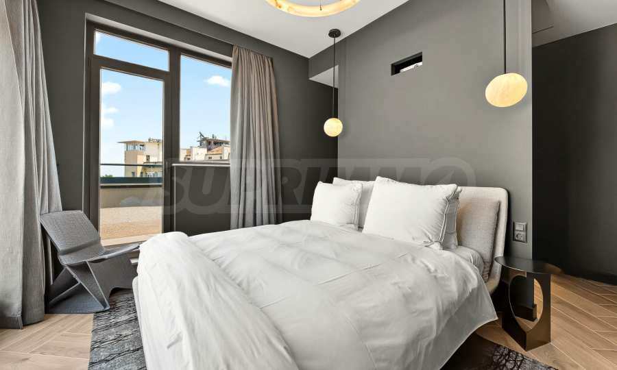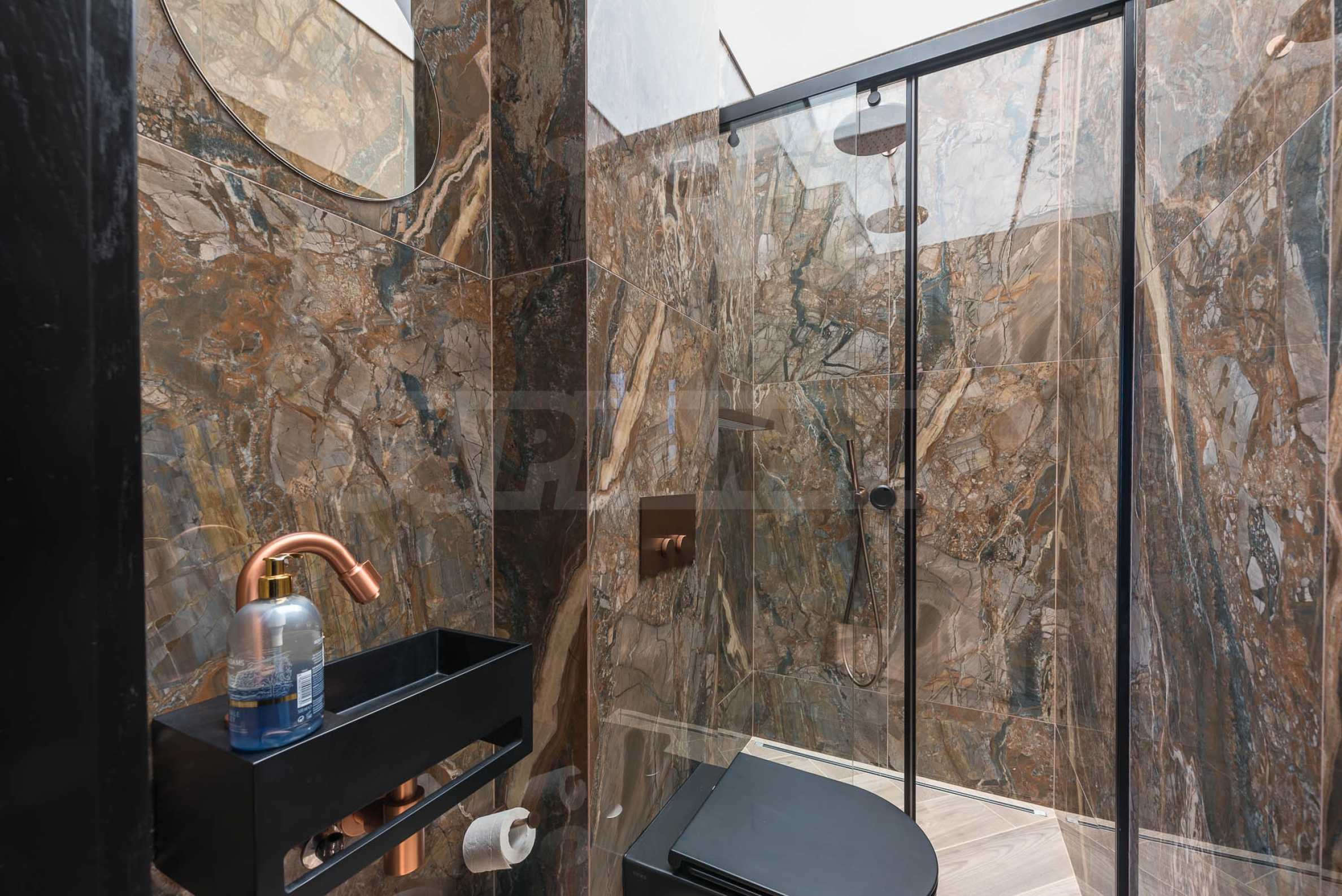 Всеки детайл е подбран с вкус, изработен от висок клас материали и изпипан с внимание към усещането за дом. Имотът впечатлява с изискана атмосфера, постигната чрез палитра от тъмни, дълбоки тонове, които създават усещане за лукс, интимност и съвършен баланс между комфорт и стил. Тук луксът не е показност, а внимателно подбрано усещане – висококачествени материали, дизайнерско обзавеждане и стилна тъмна визия, която носи уют и характер. Всяко пространство в пентхауса излъчва класа и индивидуалност – цветова концепция в тъмни тонове, съчетана с прецизно подбрани текстури и безкомпромисно качество на изпълнение.