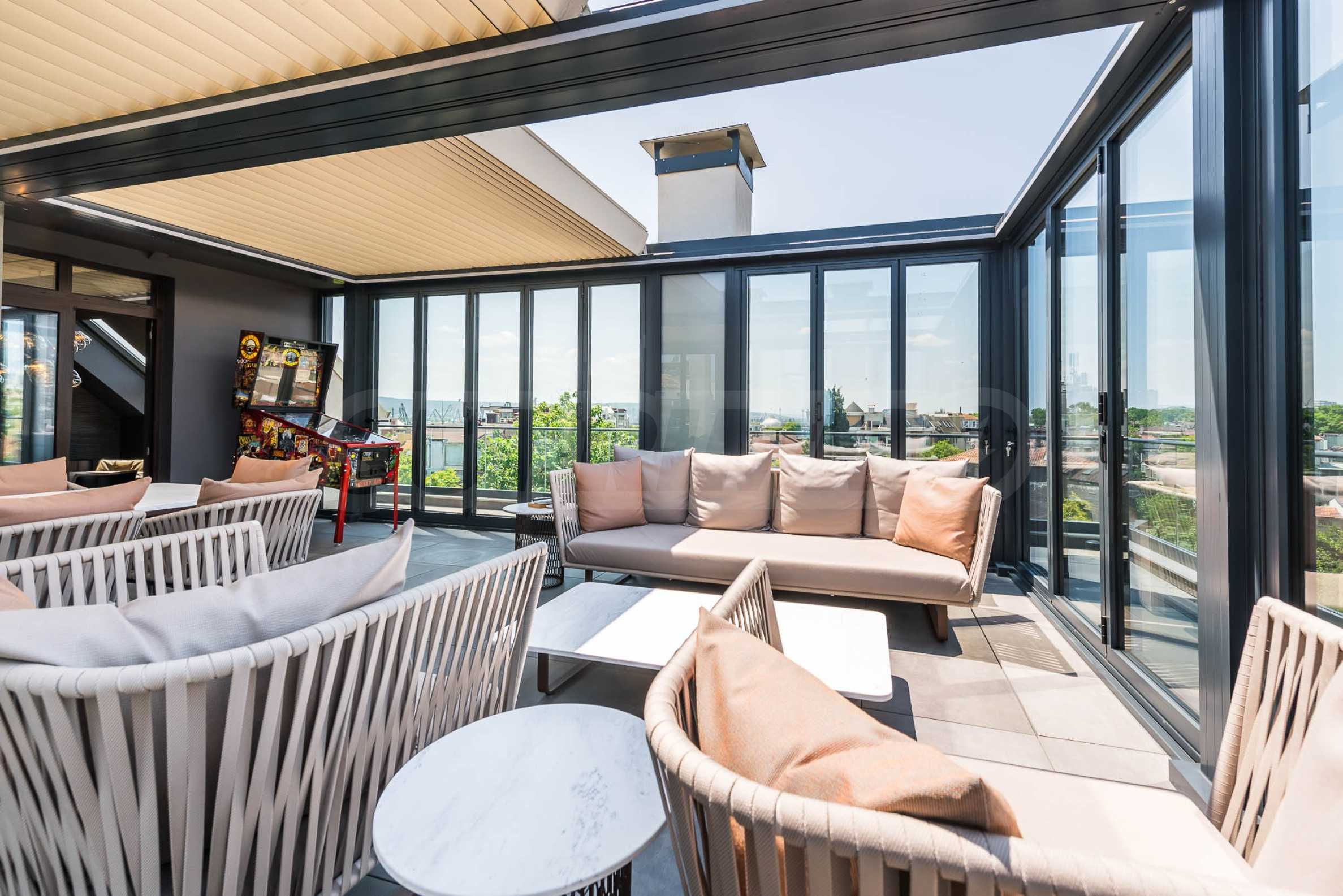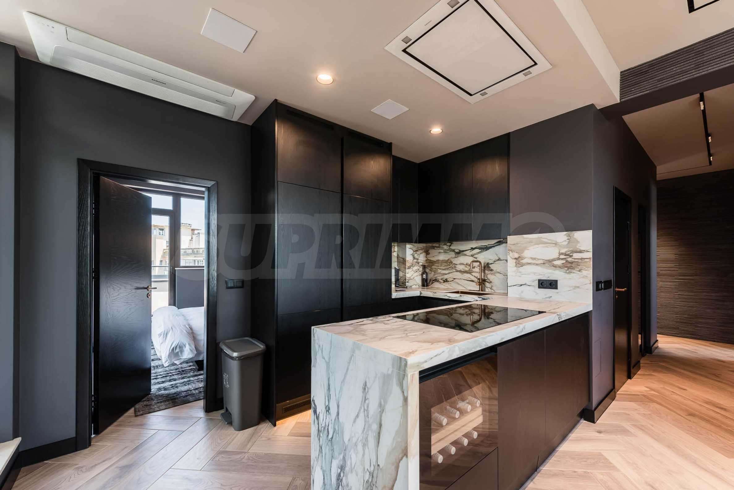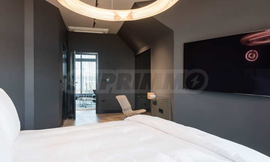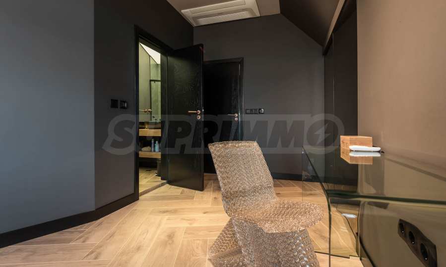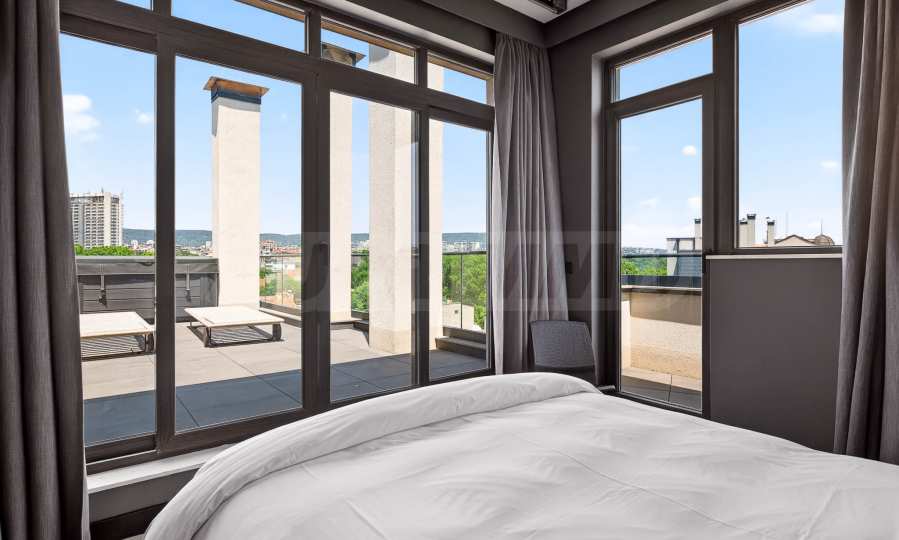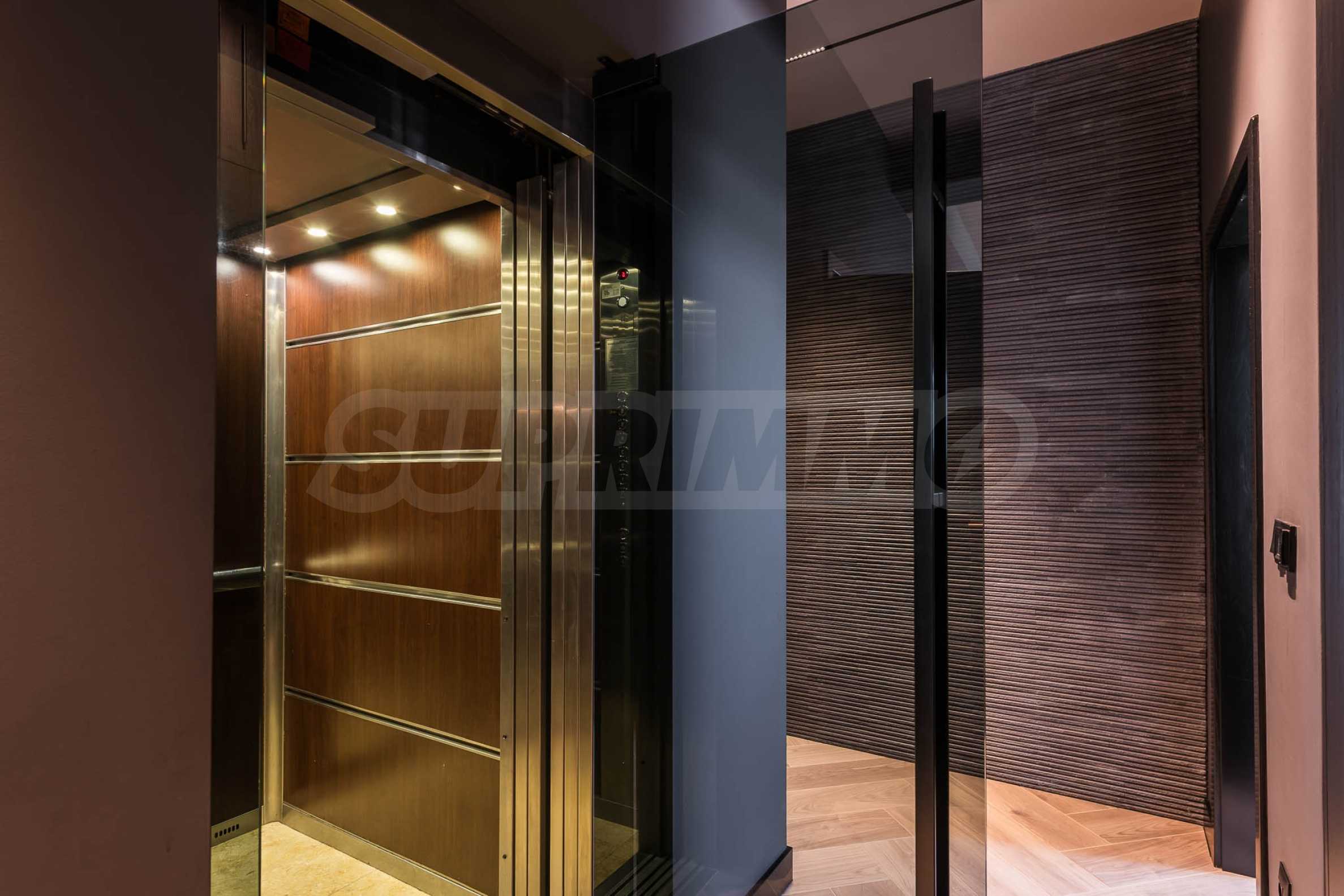 Всеки детайл е подбран с вкус, изработен от висок клас материали и изпипан с внимание към усещането за дом. Имотът впечатлява с изискана атмосфера, постигната чрез палитра от тъмни, дълбоки тонове, които създават усещане за лукс, интимност и съвършен баланс между комфорт и стил. Тук луксът не е показност, а внимателно подбрано усещане – висококачествени материали, дизайнерско обзавеждане и стилна тъмна визия, която носи уют и характер. Всяко пространство в пентхауса излъчва класа и индивидуалност – цветова концепция в тъмни тонове, съчетана с прецизно подбрани текстури и безкомпромисно качество на изпълнение.