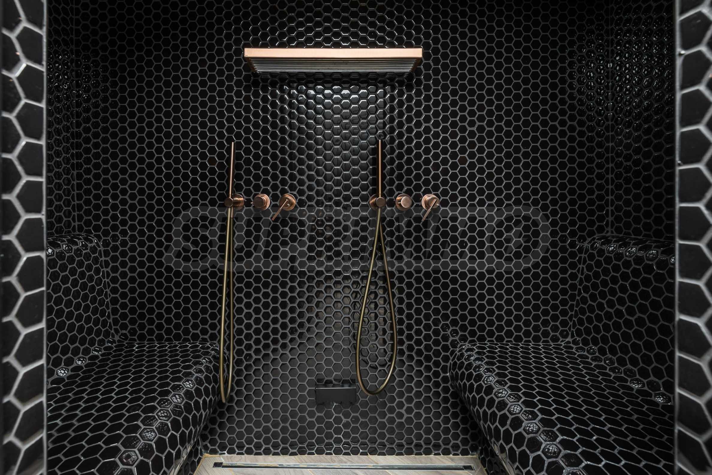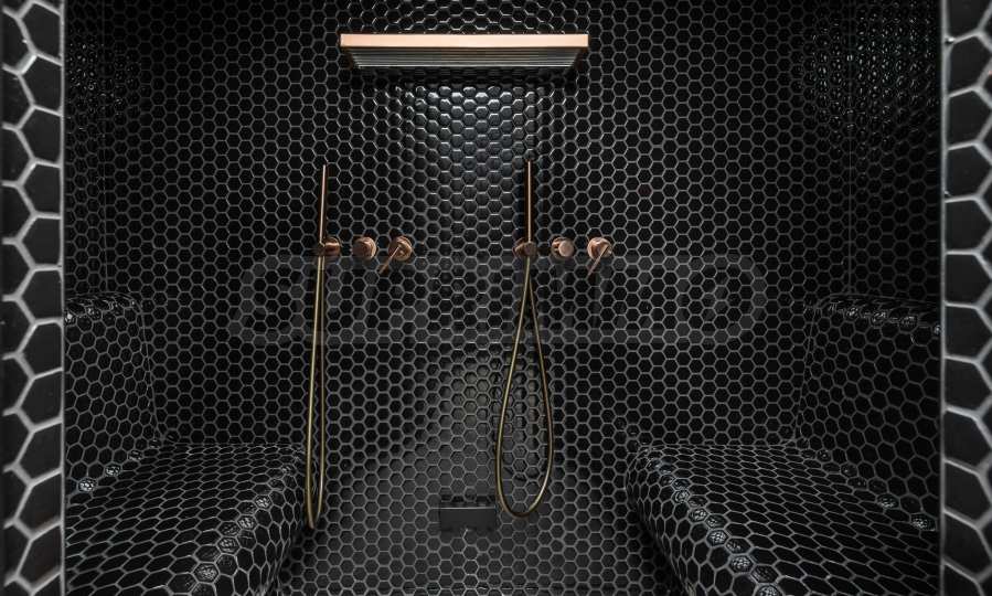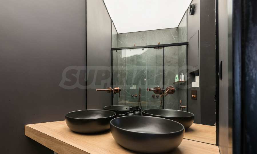 • Три стилни бани, като едната е със самостоятелен санитарен възел към мастър спалнята, а другата със сауна и парна баня;