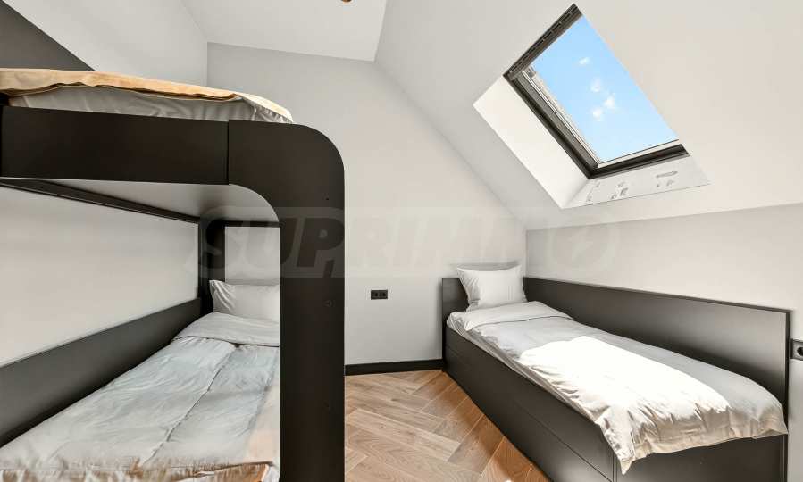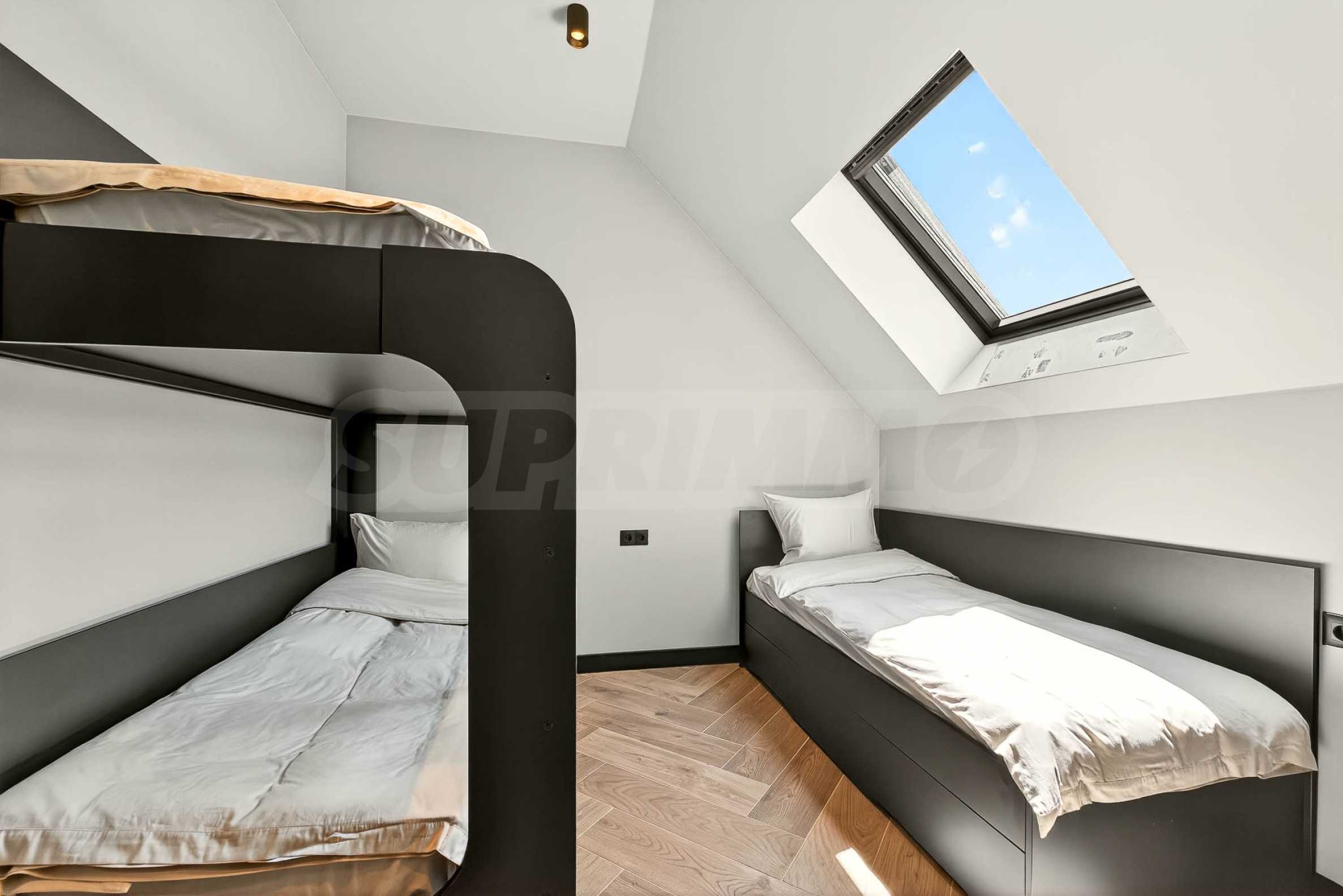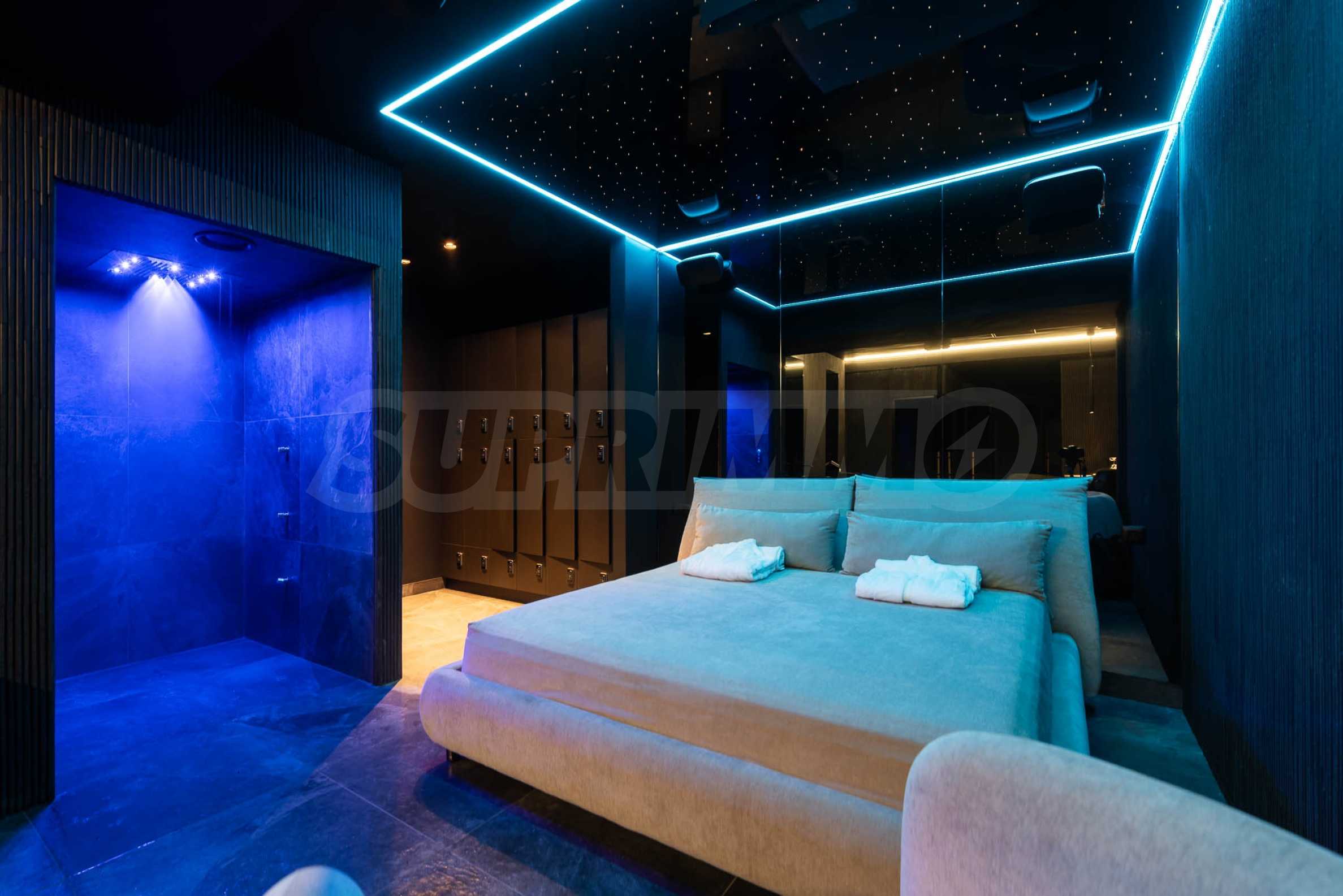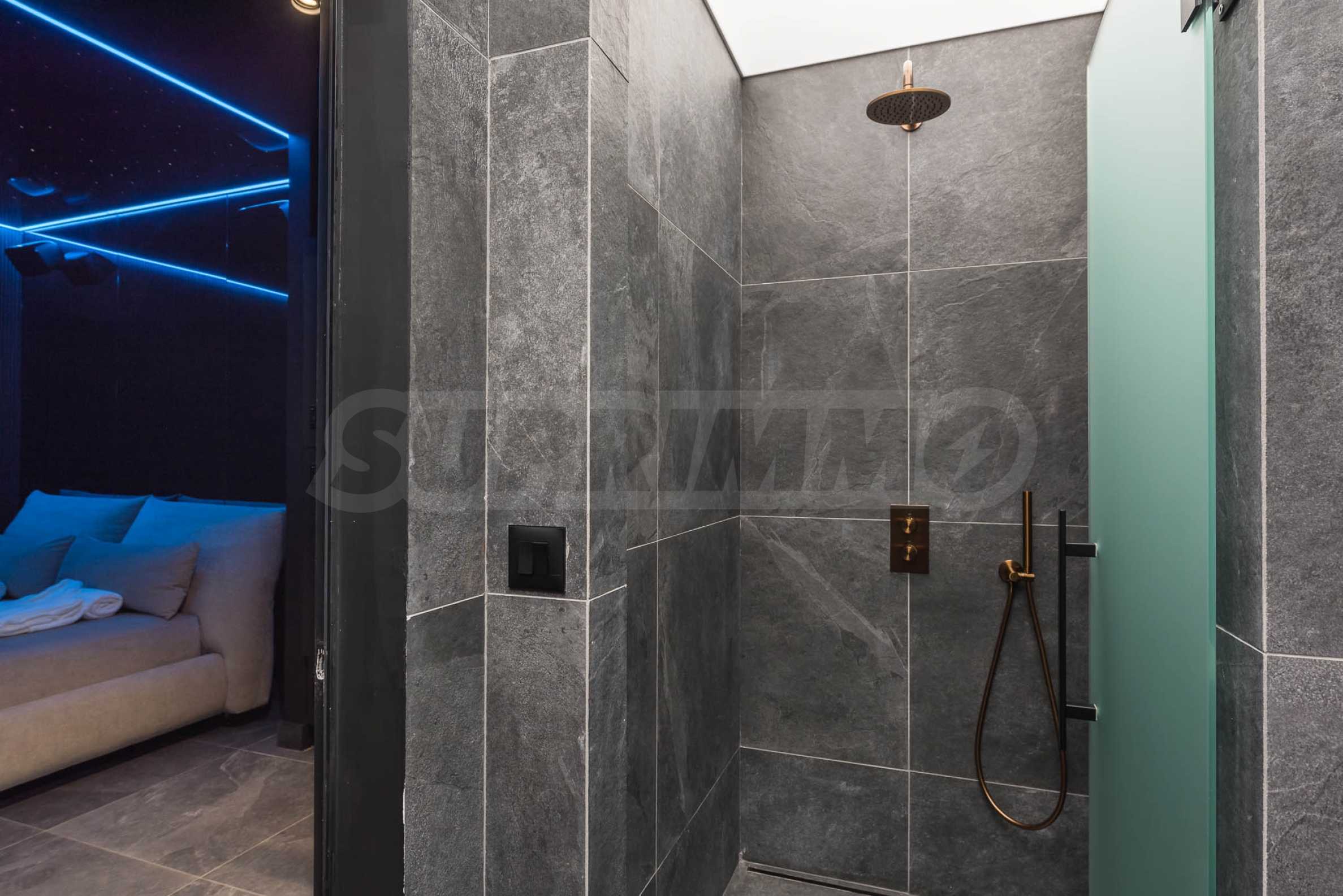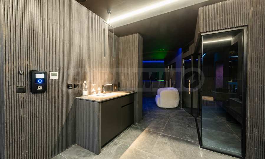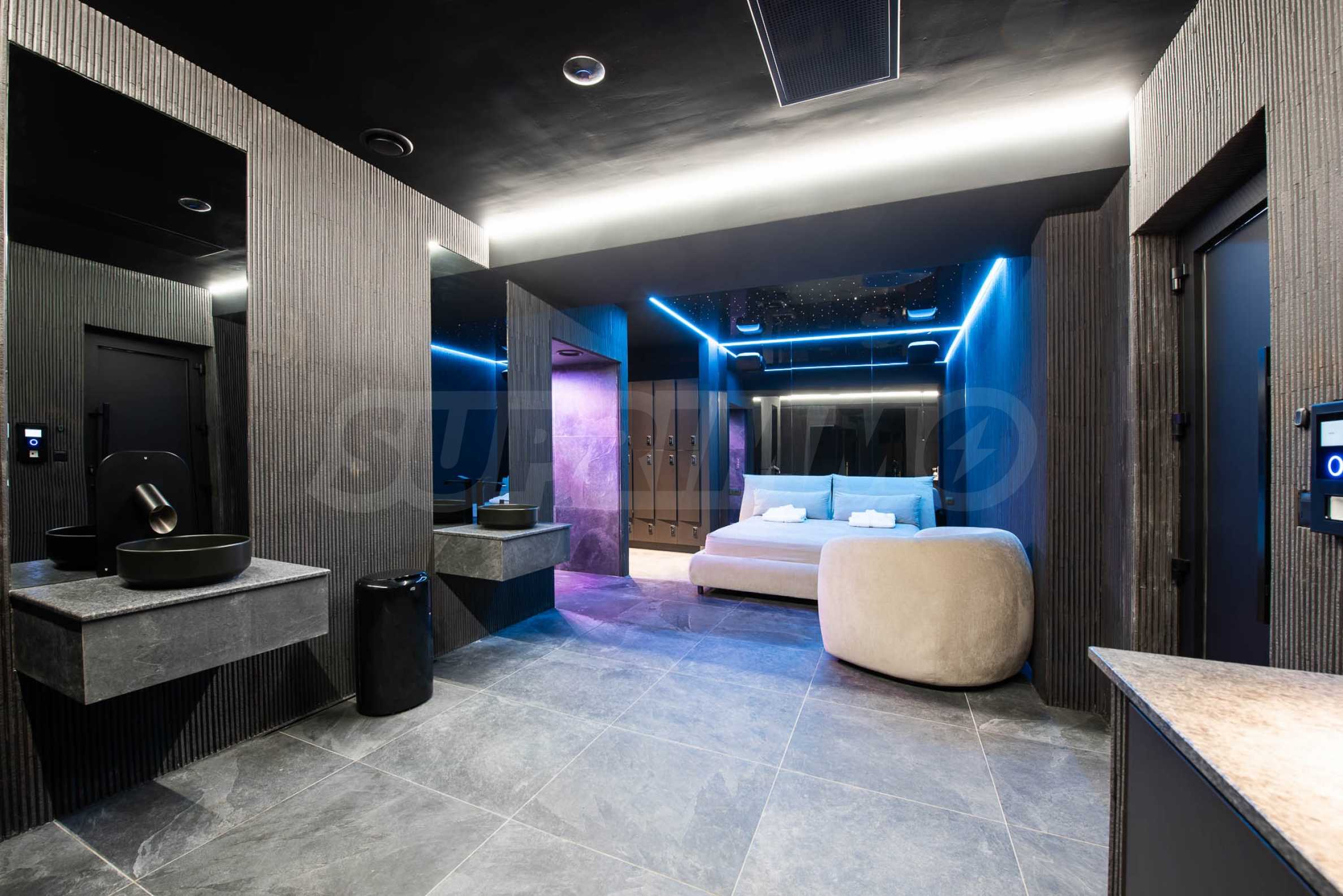 Премиум оборудване - хидромасажна вана, капсулна кафе машина, съдомиялна, микровълнова фурна, два хладилника (вкл. за вино), сейф, пералня, сушилня, smart TV със стрийминг платформи, озвучителна система Harman Kardon, подово отопление и охлаждане в целия апартамент, климатична система Samsung, соларни панели с батерия на покрива и други.