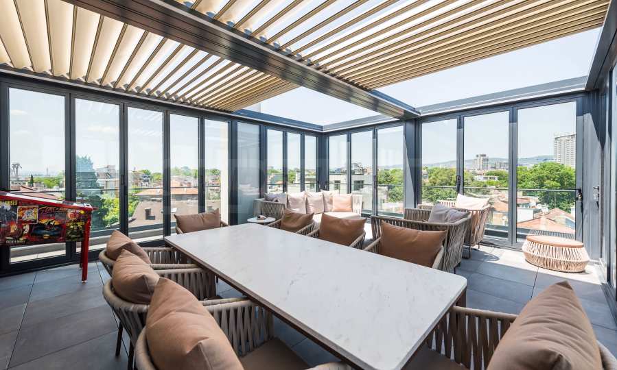 • Две тераси, от които едната е с трапезария, шезлонги и джакузи 4 seasons outdoor под звездите, а другата – интимно кътче с гледка към историческата част на Варна.