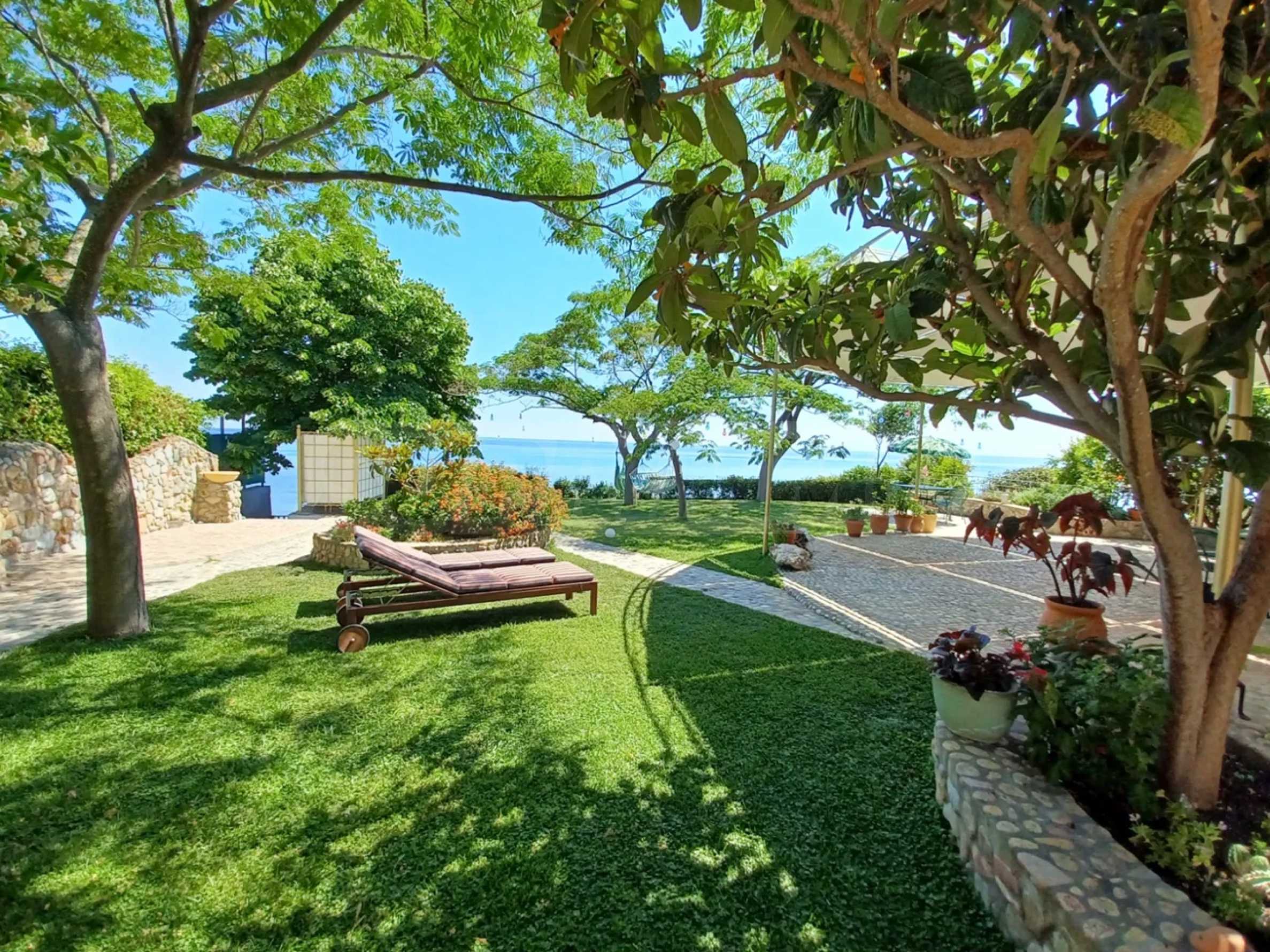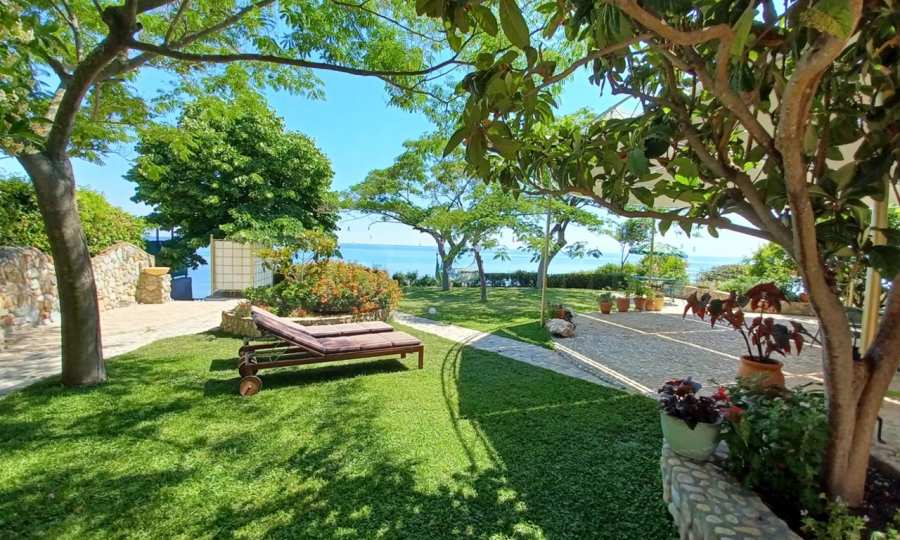 Градината е майсторски павирана с морски камъчета и е богато декорирана с дървета, цветя и ръчно изработени произведения на изкуството от плажни камъчета, които придават на имота неповторим и наистина уникален характер.