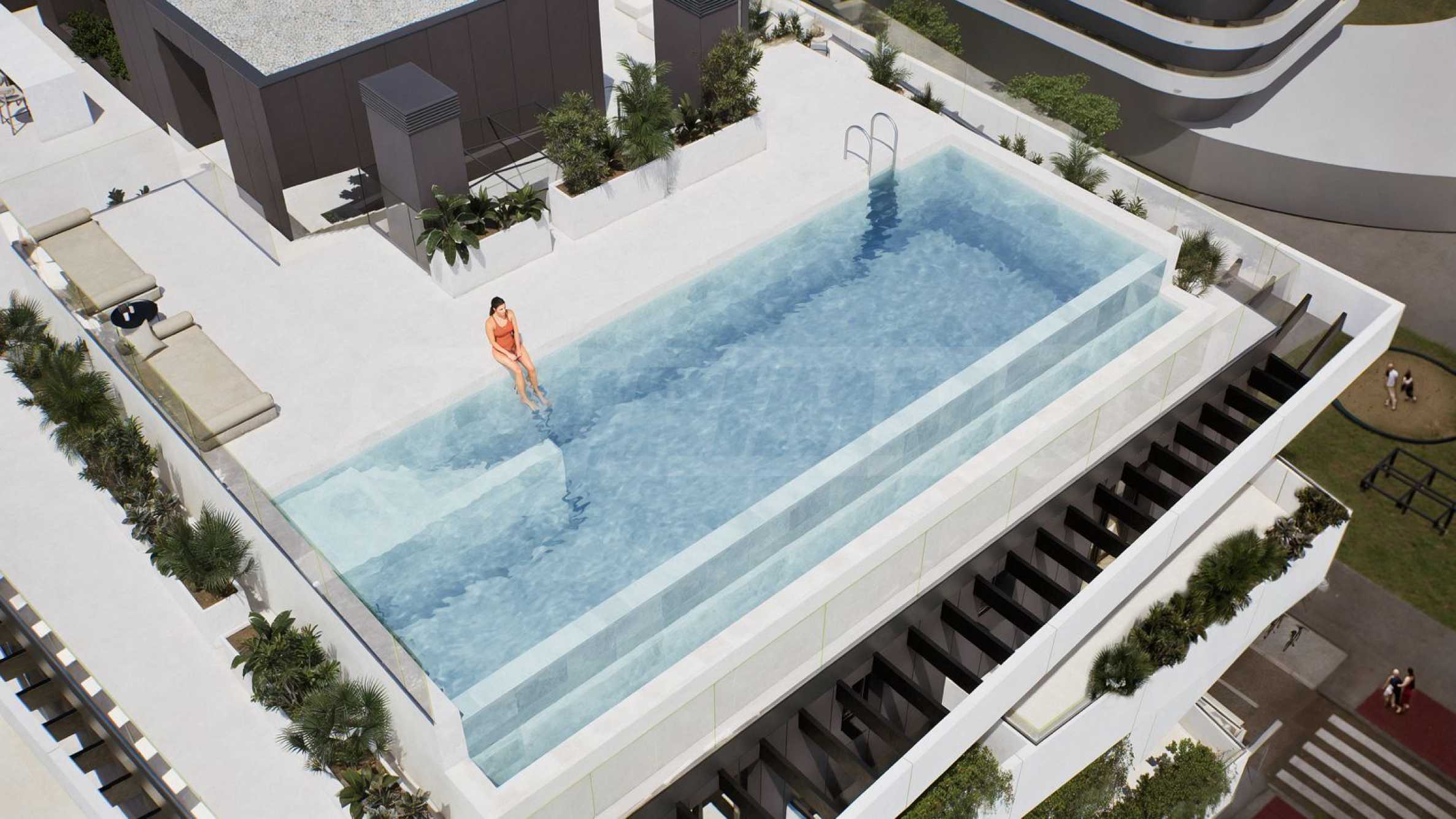 • Инфинити басейн на покрива, разположен на 40 метра над земята, с гледка към морето;